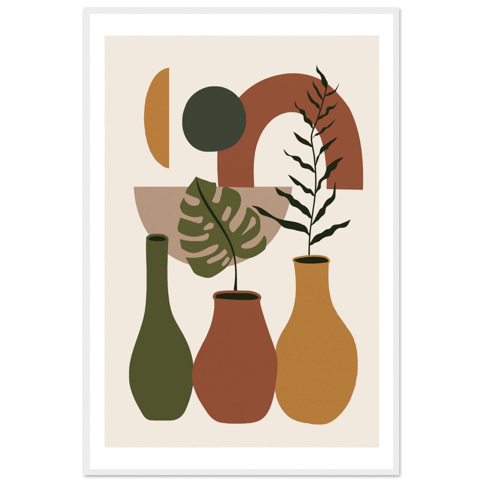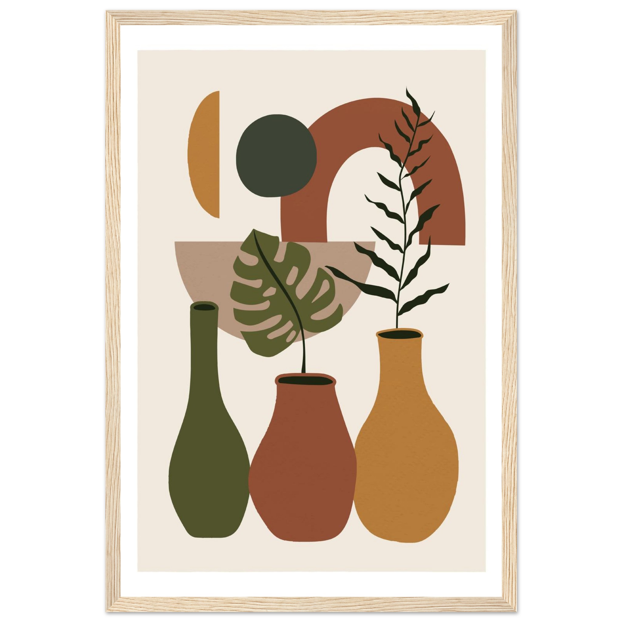 Abstract Botanical Art Framed Poster – Earthy Tones & Mid-Century Modern Vibes