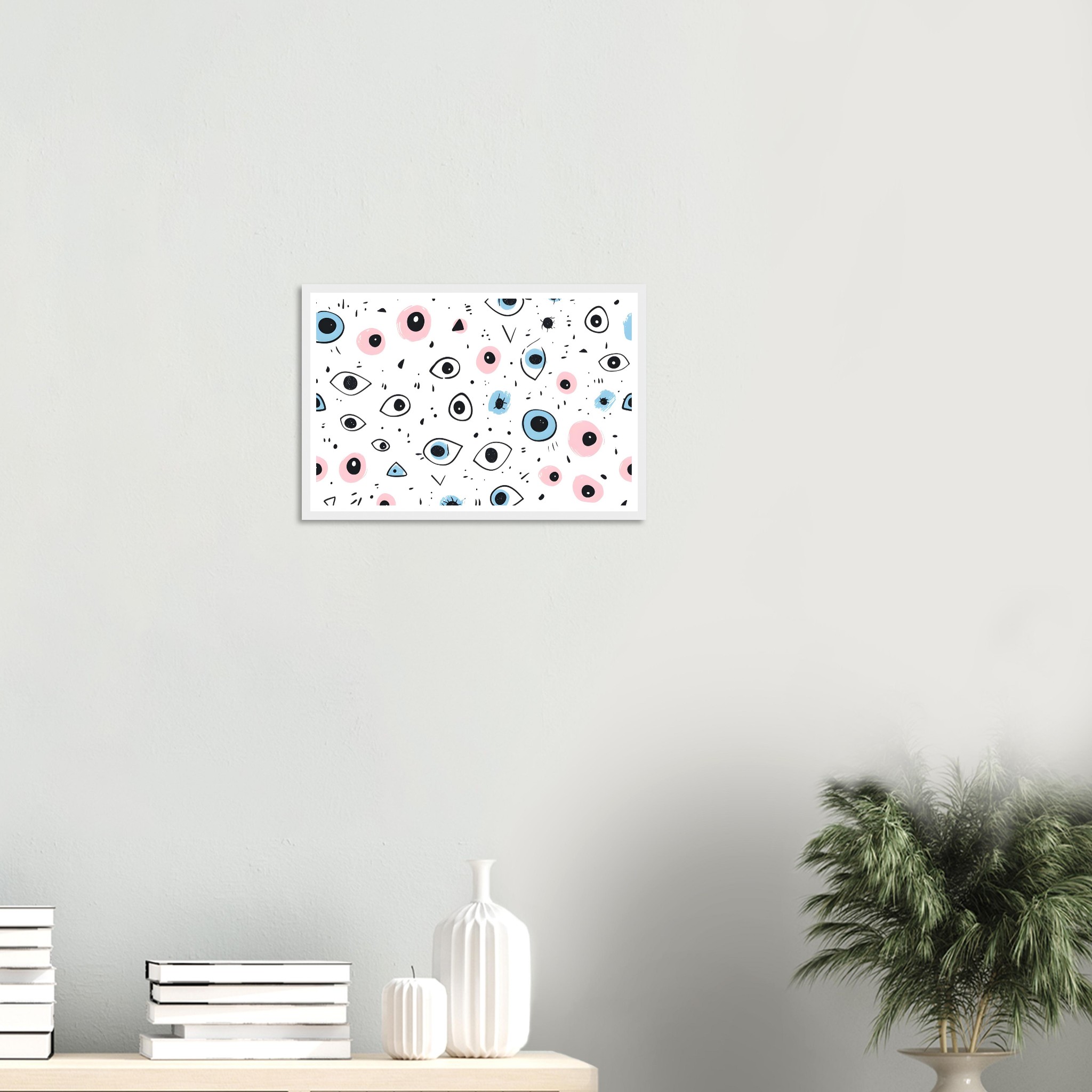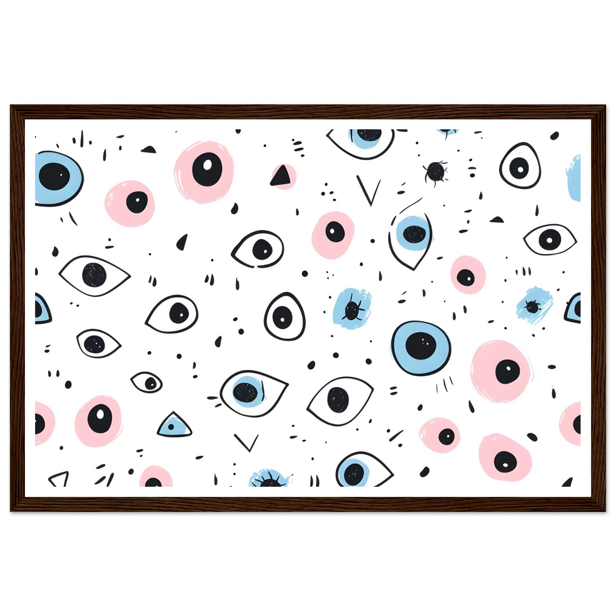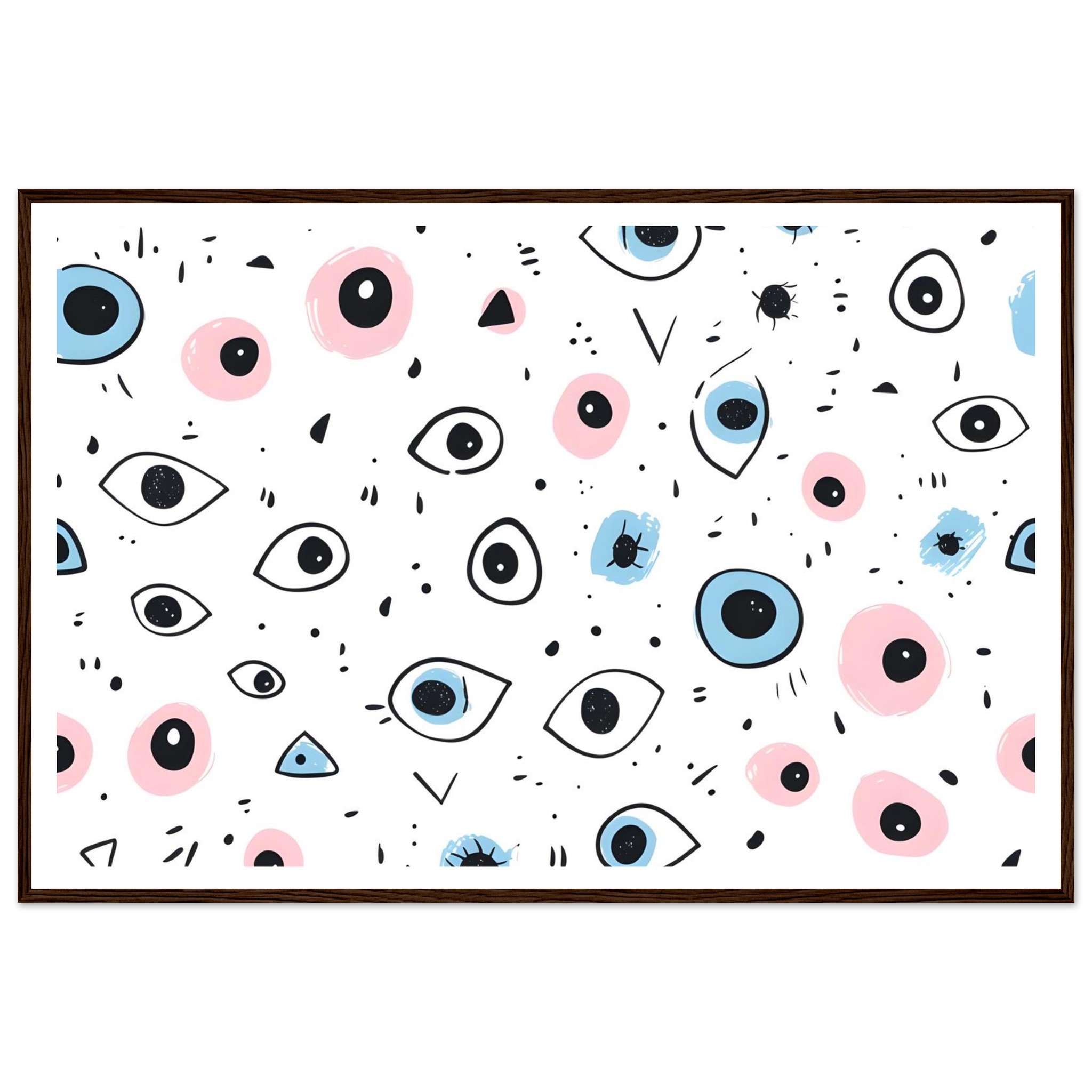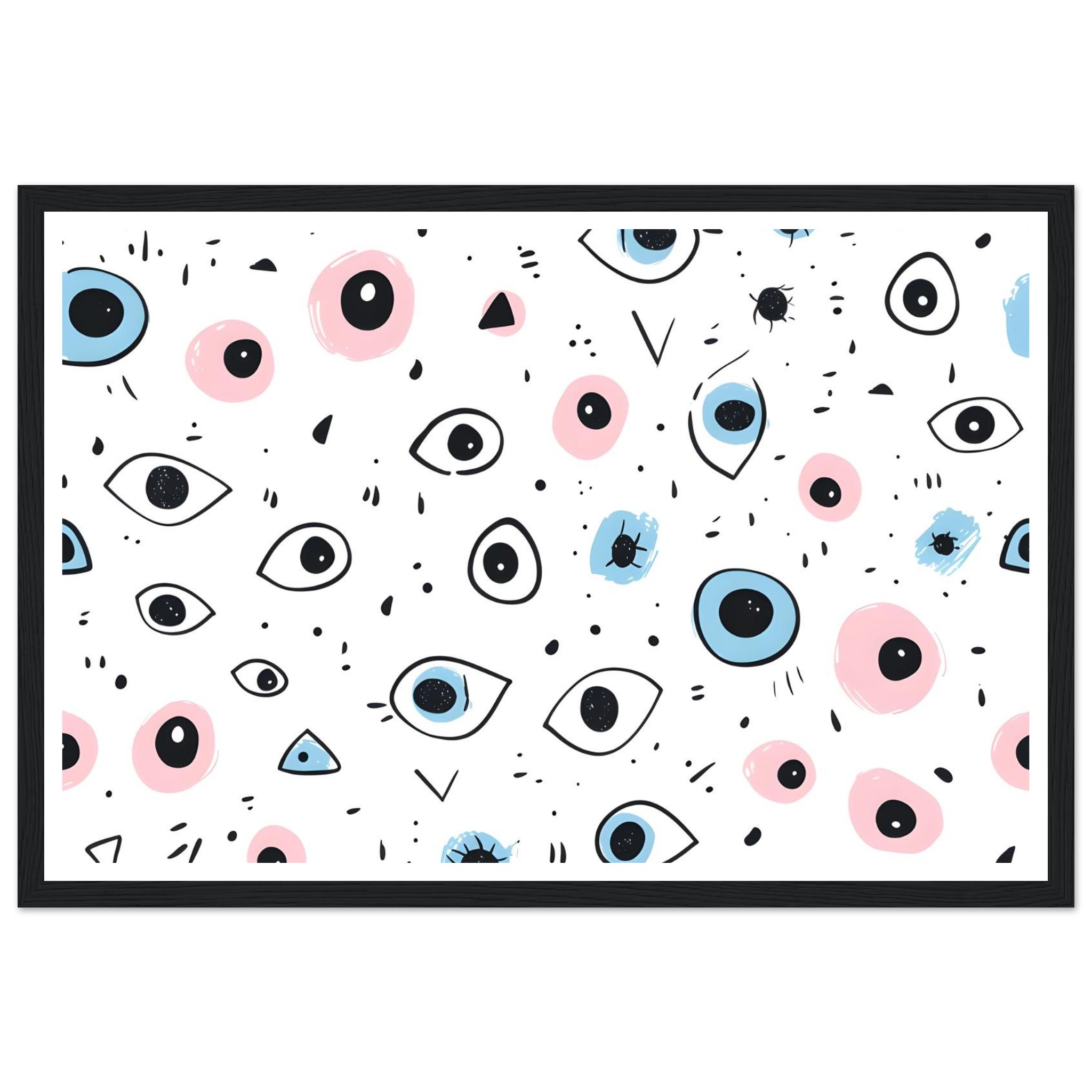 Bring a touch of whimsical wonder and contemporary charm to your space with our ‘Eyes Wide Open’ art print. Featuring an enchanting pattern of stylized eyes and playful abstract shapes in a delightful palette of soft pink and serene blue, this piece invites intrigue and personality into any room. Each detail is rendered with a hand-drawn feel, adding an artisanal touch that speaks to your unique aesthetic.