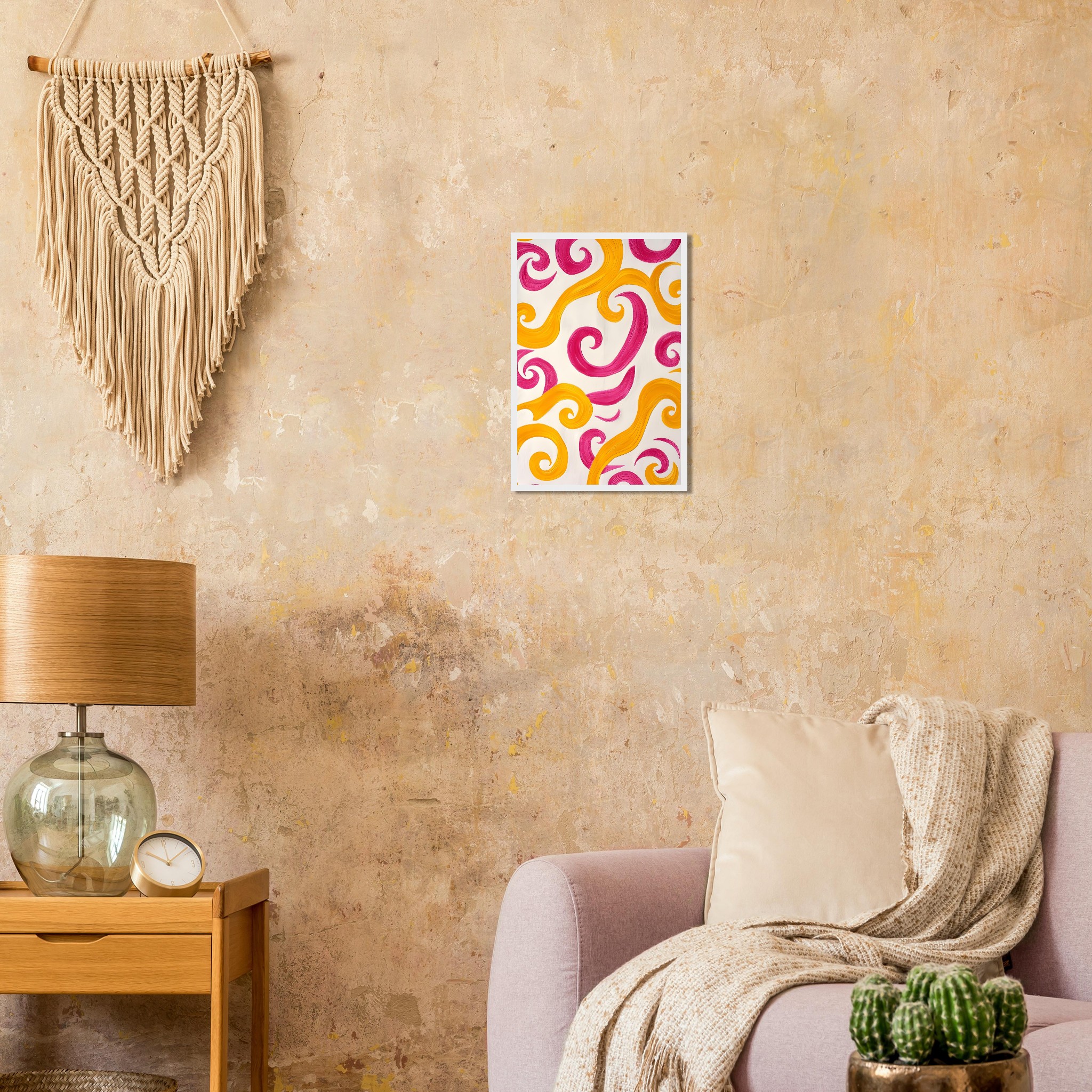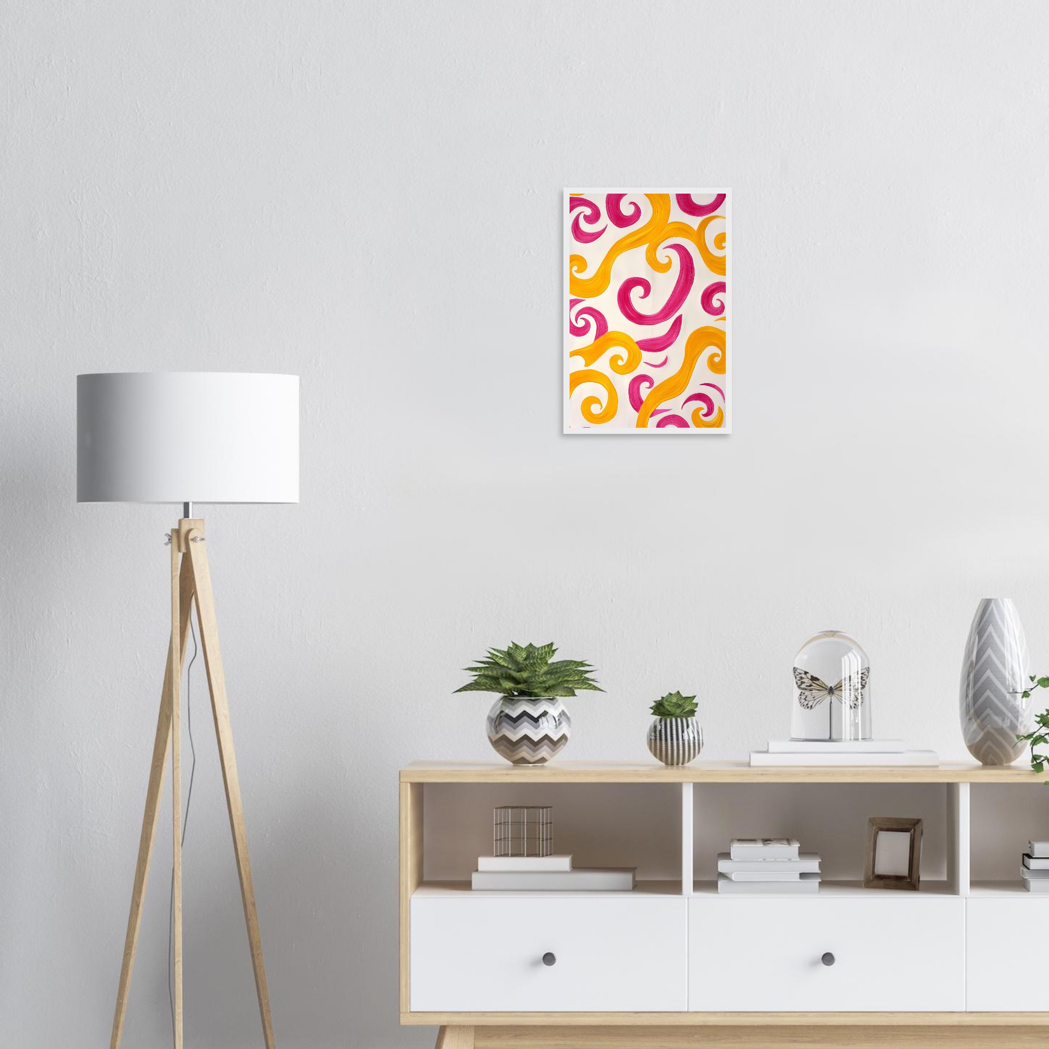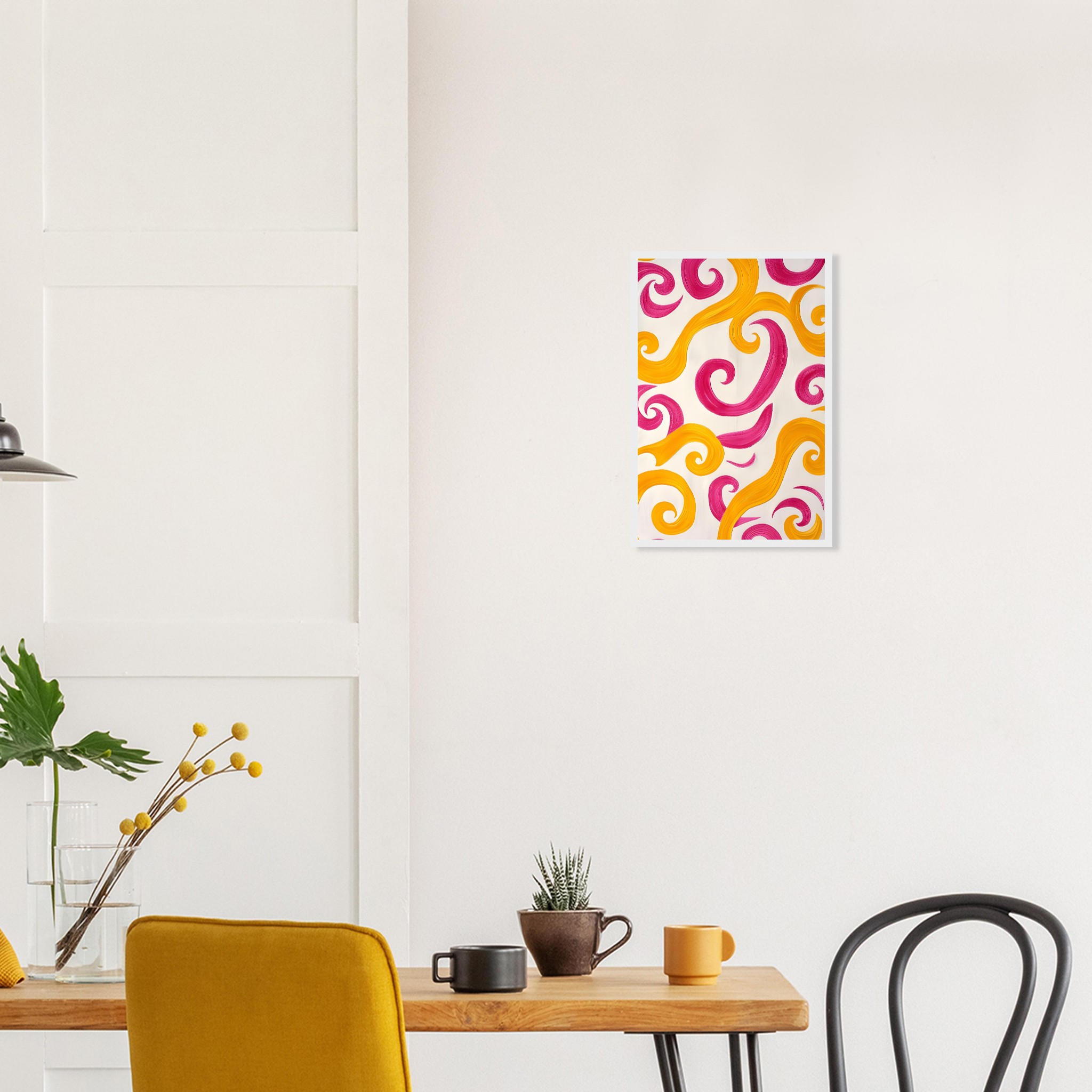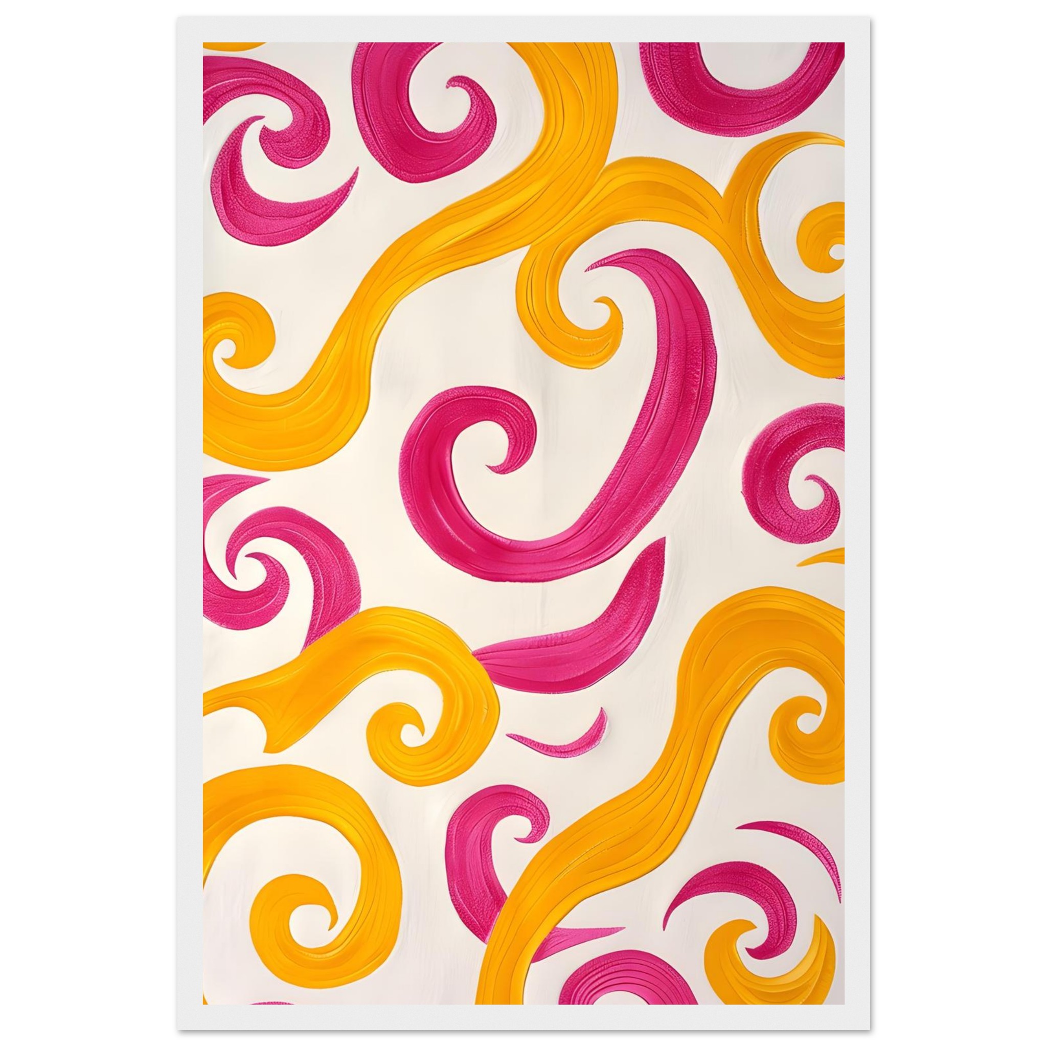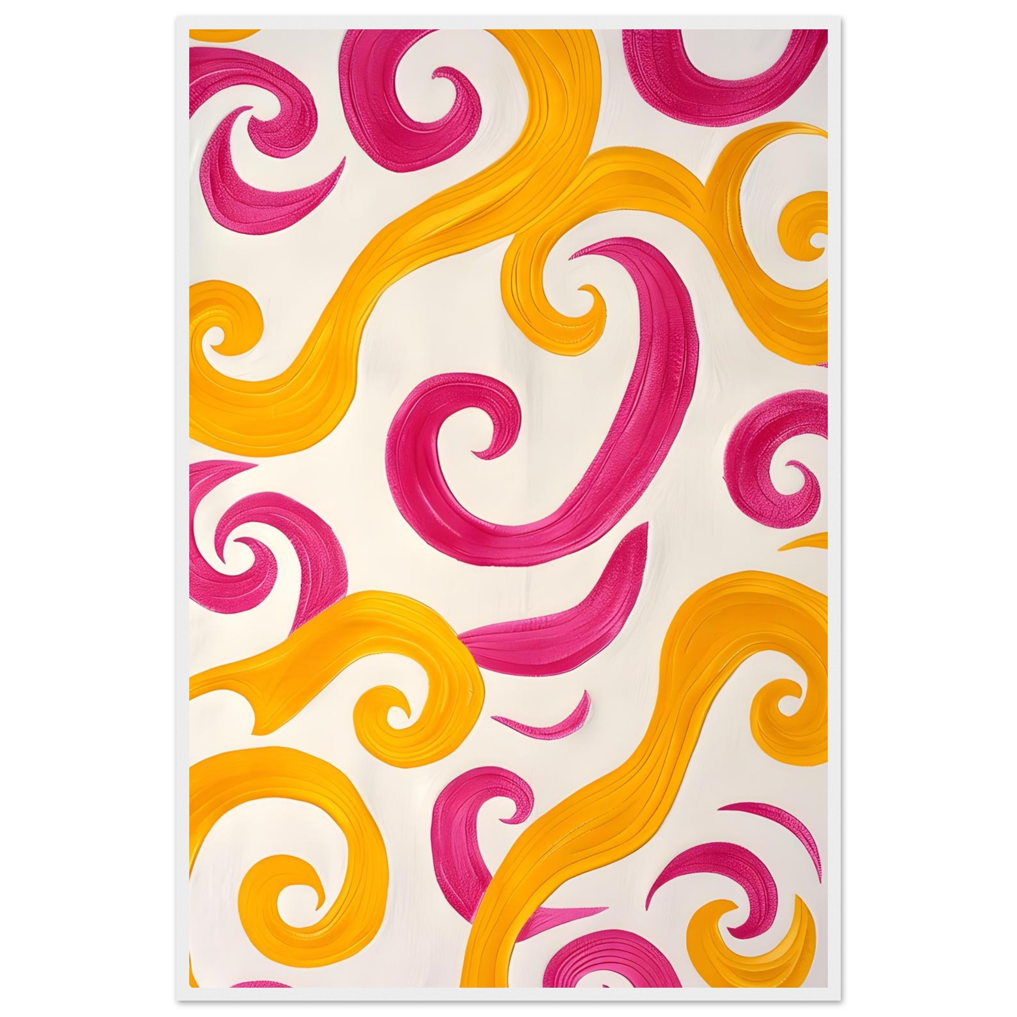Infuse your living space with a burst of dynamic energy and playful sophistication. This stunning abstract swirl poster, featuring a vibrant interplay of rich fuchsia and radiant gold, captures a mood of joyful movement and modern artistry. Each piece is designed to be a focal point, bringing a contemporary flair and a pop of color that brightens any room.