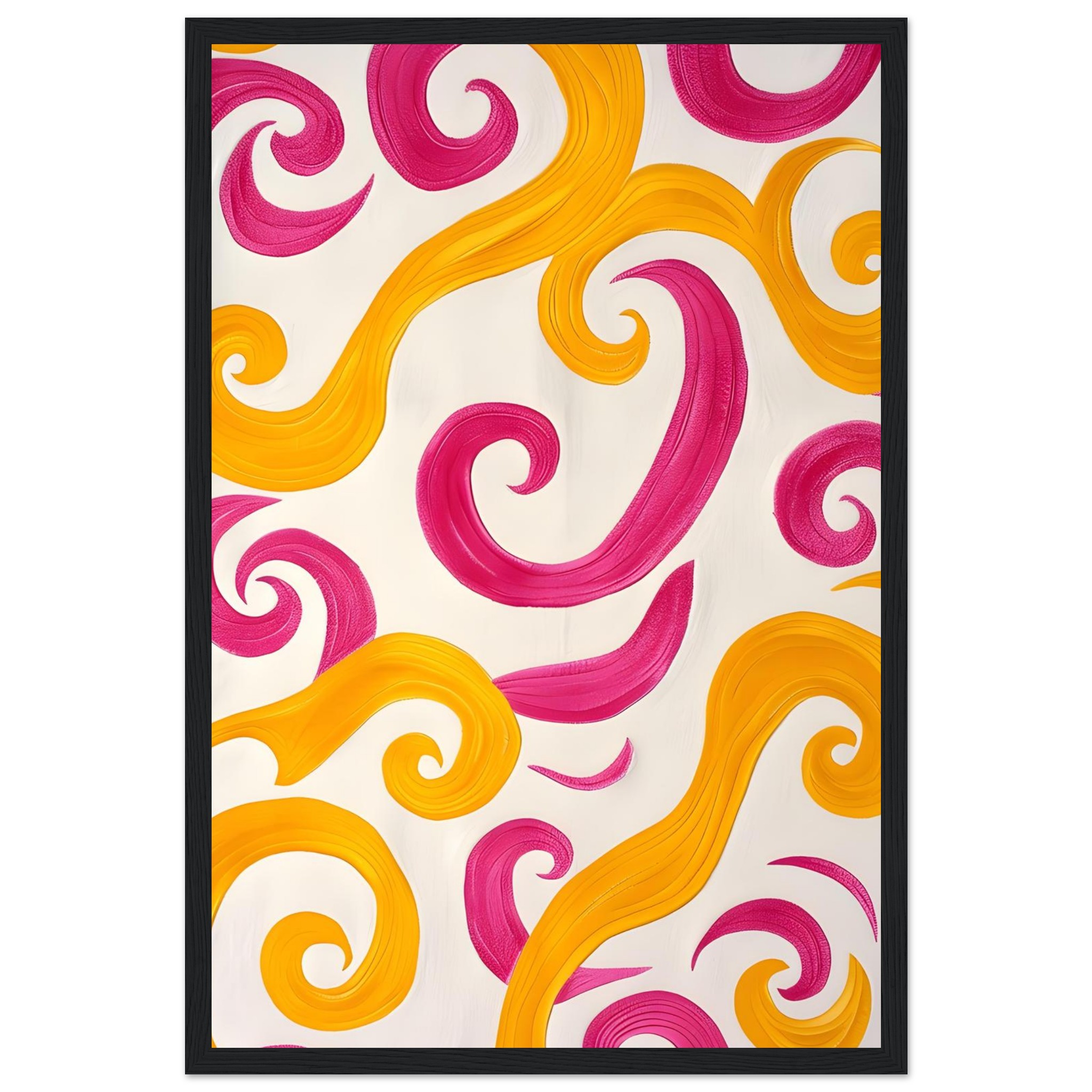 Abstract Swirls Framed Poster: Vibrant Pink & Gold Art Print in Various Sizes & Frame Finishes