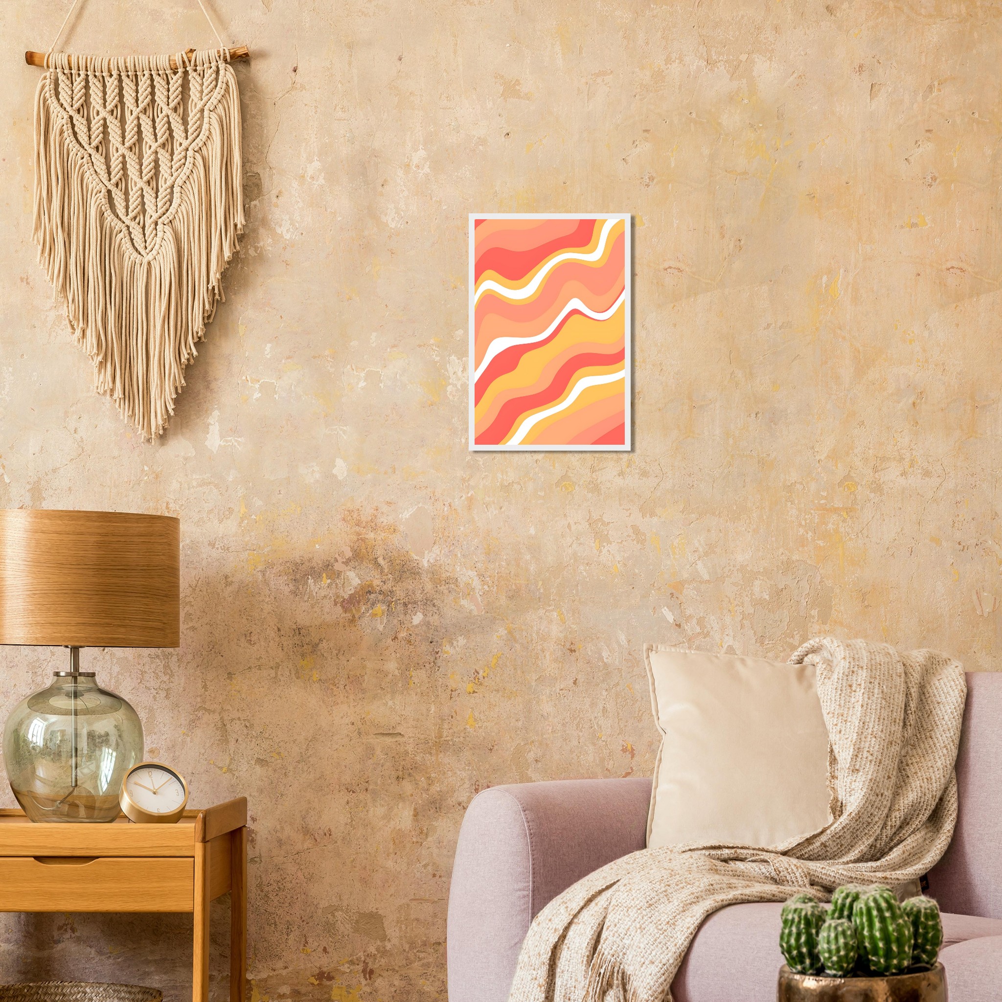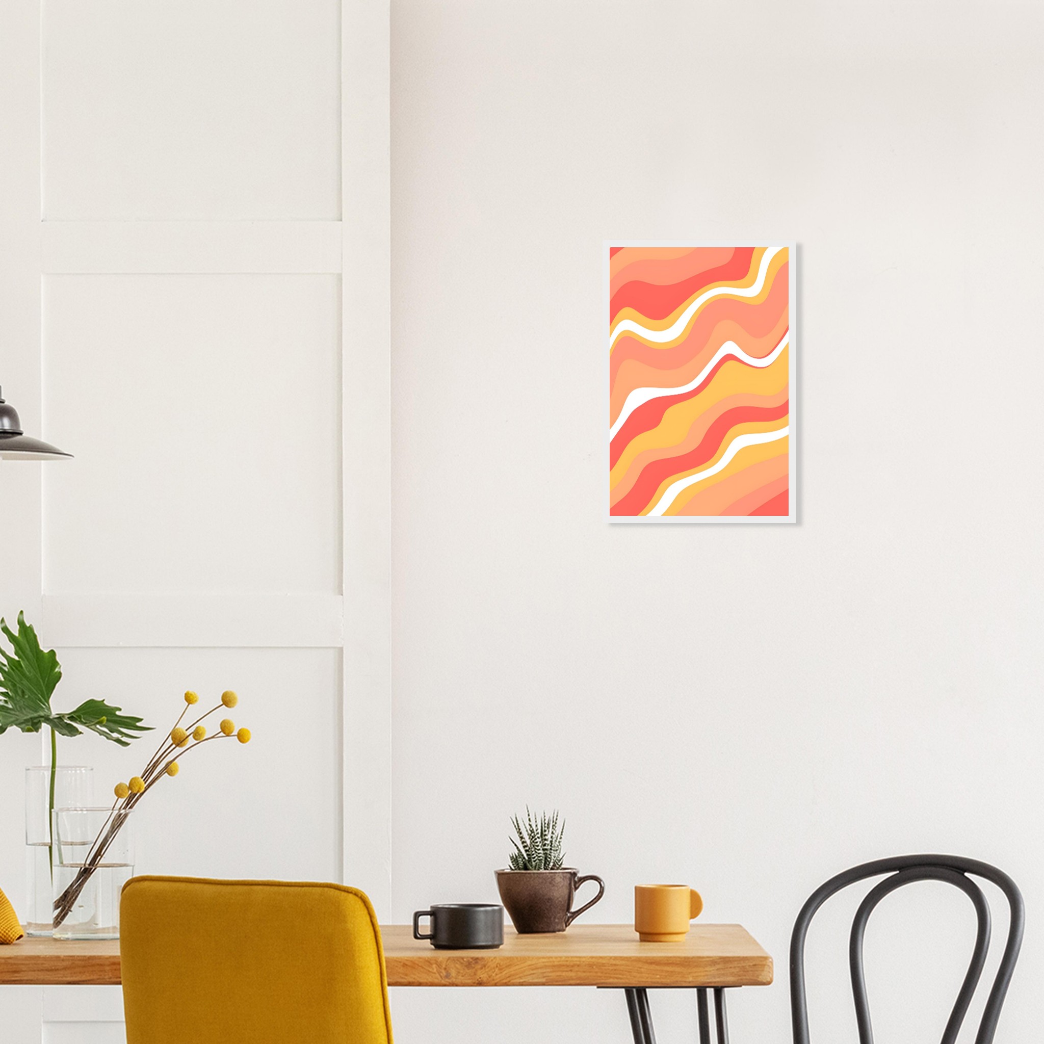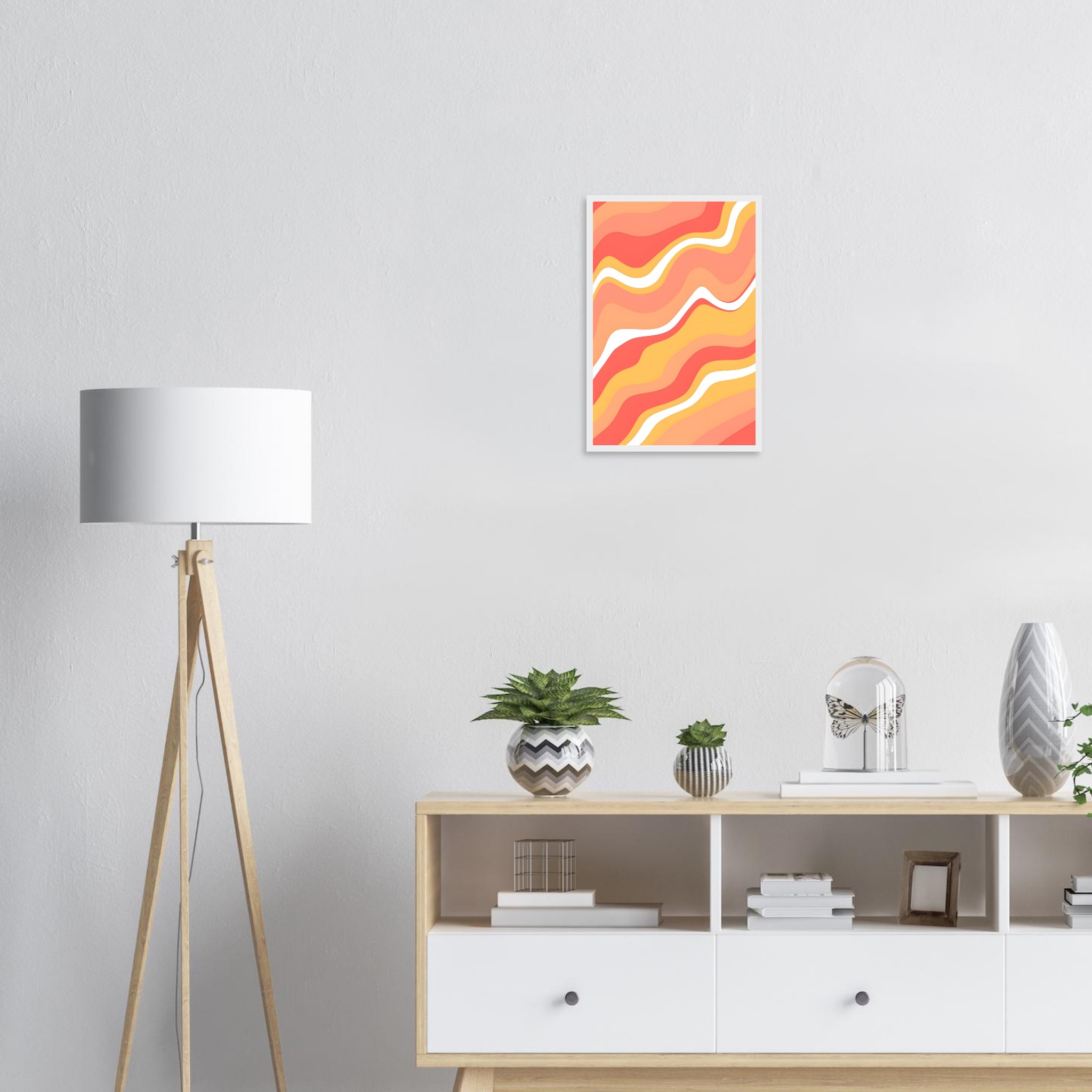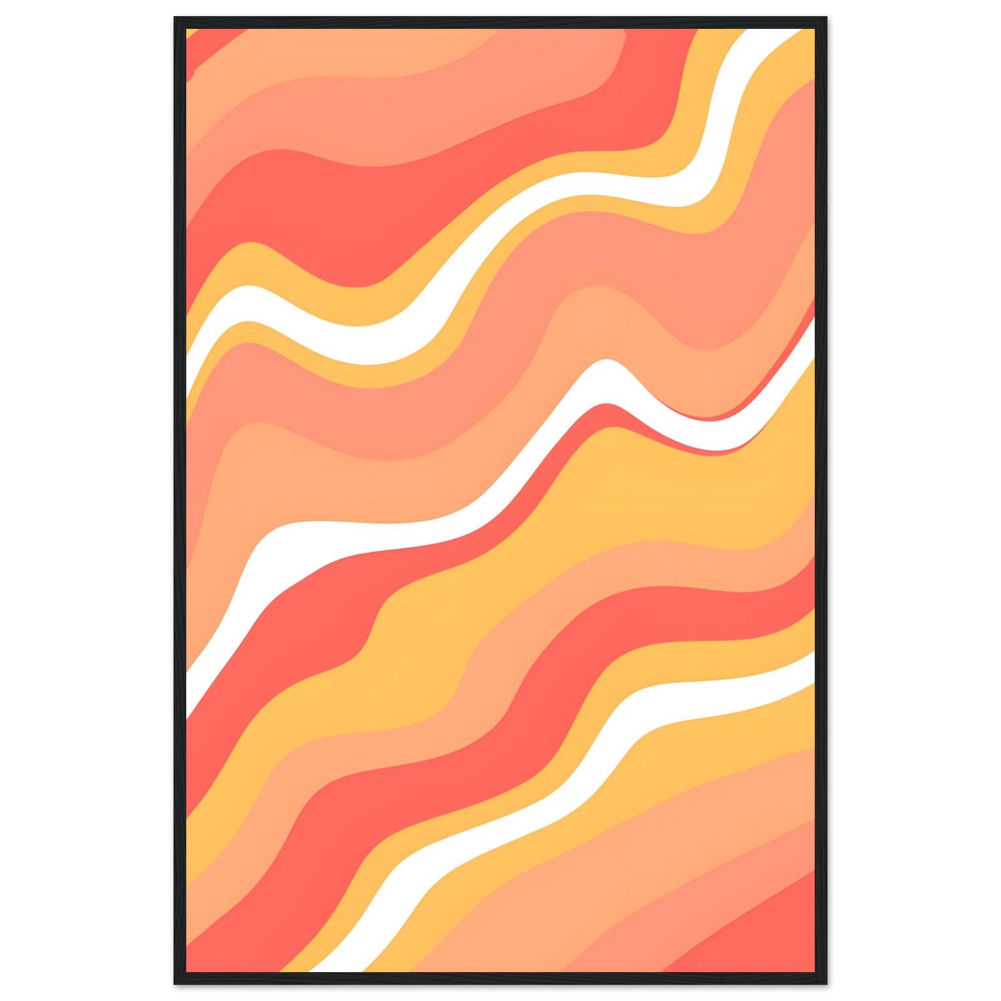 Infuse your living space with the warm, dynamic energy of our Abstract Waves Framed Poster. Featuring a captivating pattern of fluid lines in a harmonious palette of coral, peach, and soft yellow, accented with crisp white, this artwork evokes a sense of playful movement and modern sophistication. It’s the perfect piece to add a pop of color and an artistic touch to any room, reflecting a lively and contemporary aesthetic.