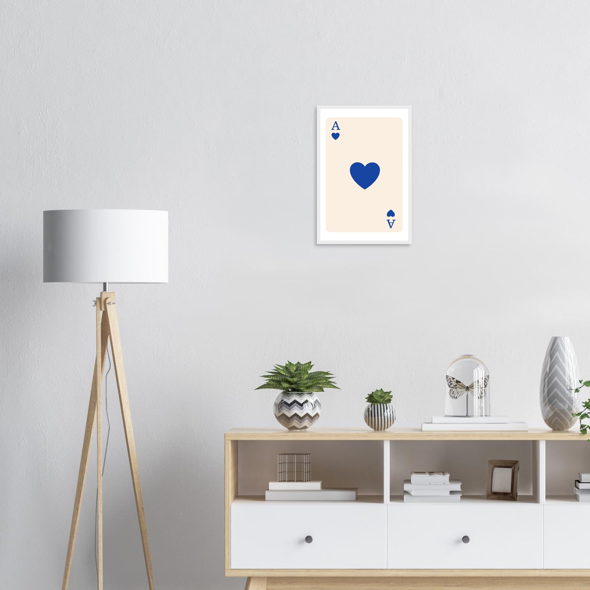 Ace of Hearts Minimalist Playing Card Art Print – Classic Matte Paper Wooden Framed Poster
