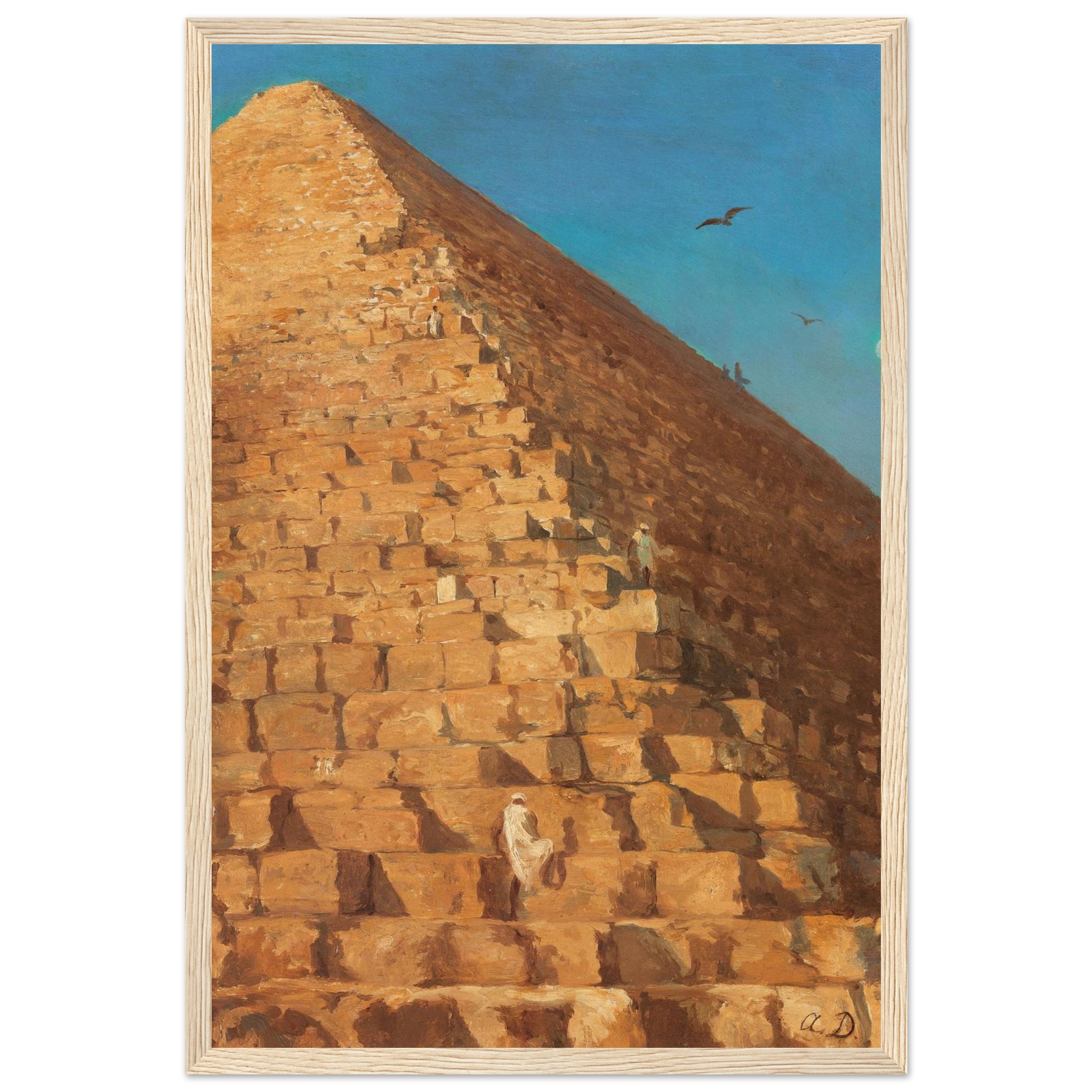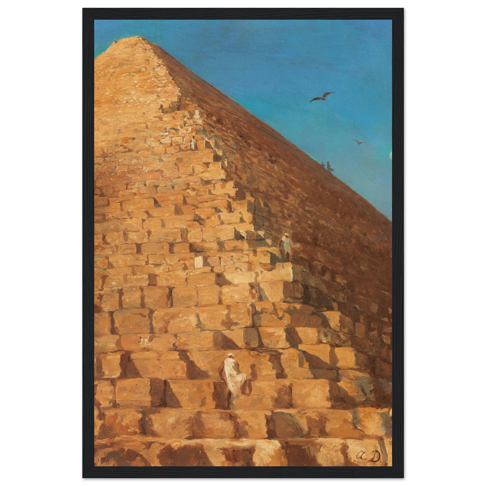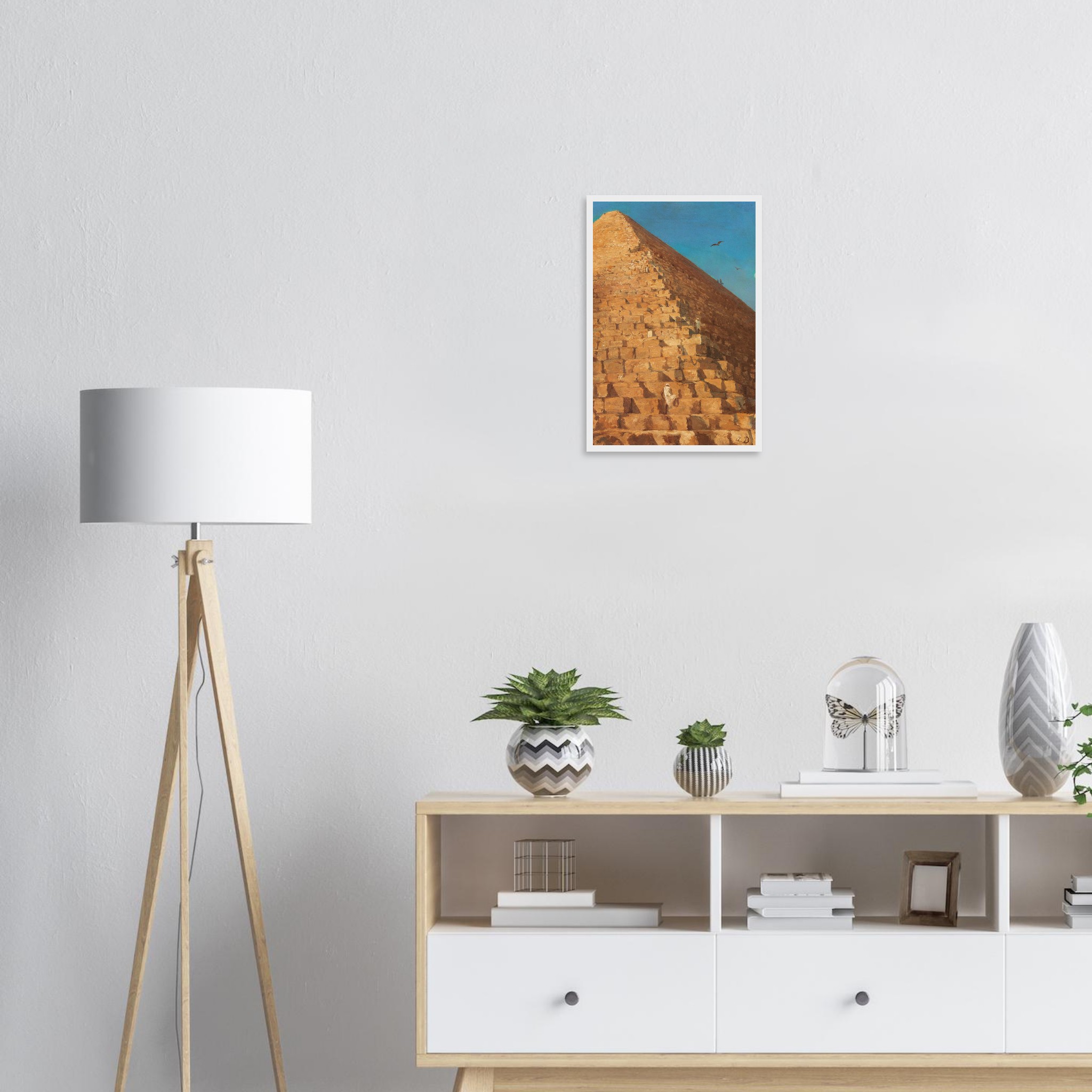 Embark on a journey to the heart of ancient history with this stunning framed poster, capturing the monumental scale of the Great Pyramid and the timeless allure of exploration. The rich, earthy tones of the pyramid stones contrast beautifully with the serene blue sky, creating a sense of awe and adventure that will transform any room into a gateway to the past. This piece is perfect for history enthusiasts, travel dreamers, or anyone seeking a focal point that inspires wonder.