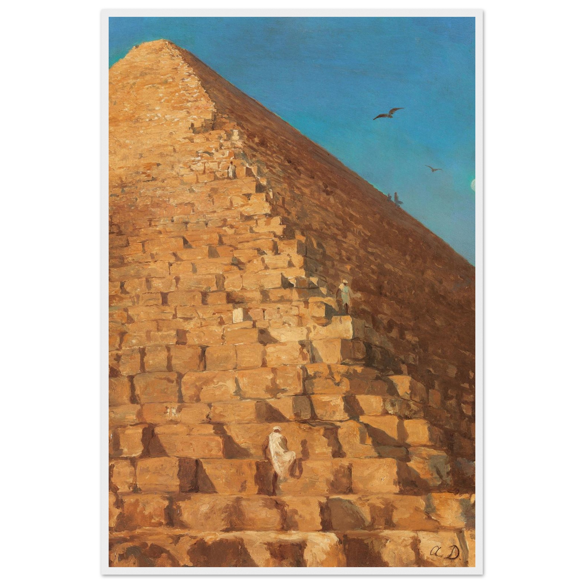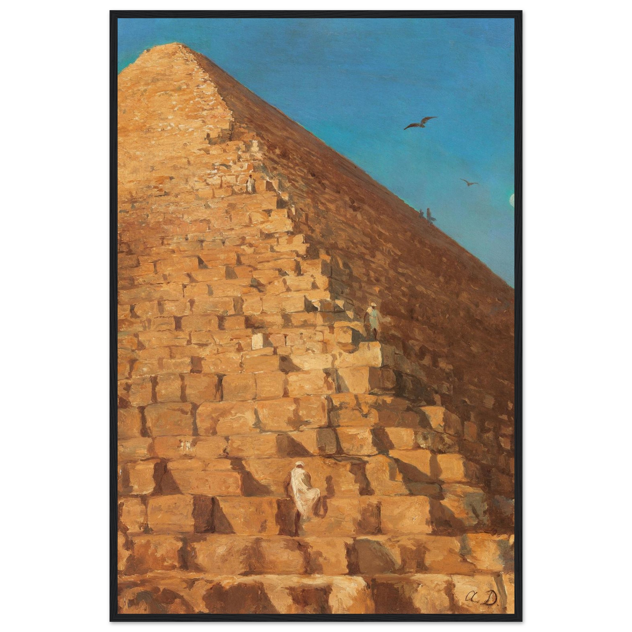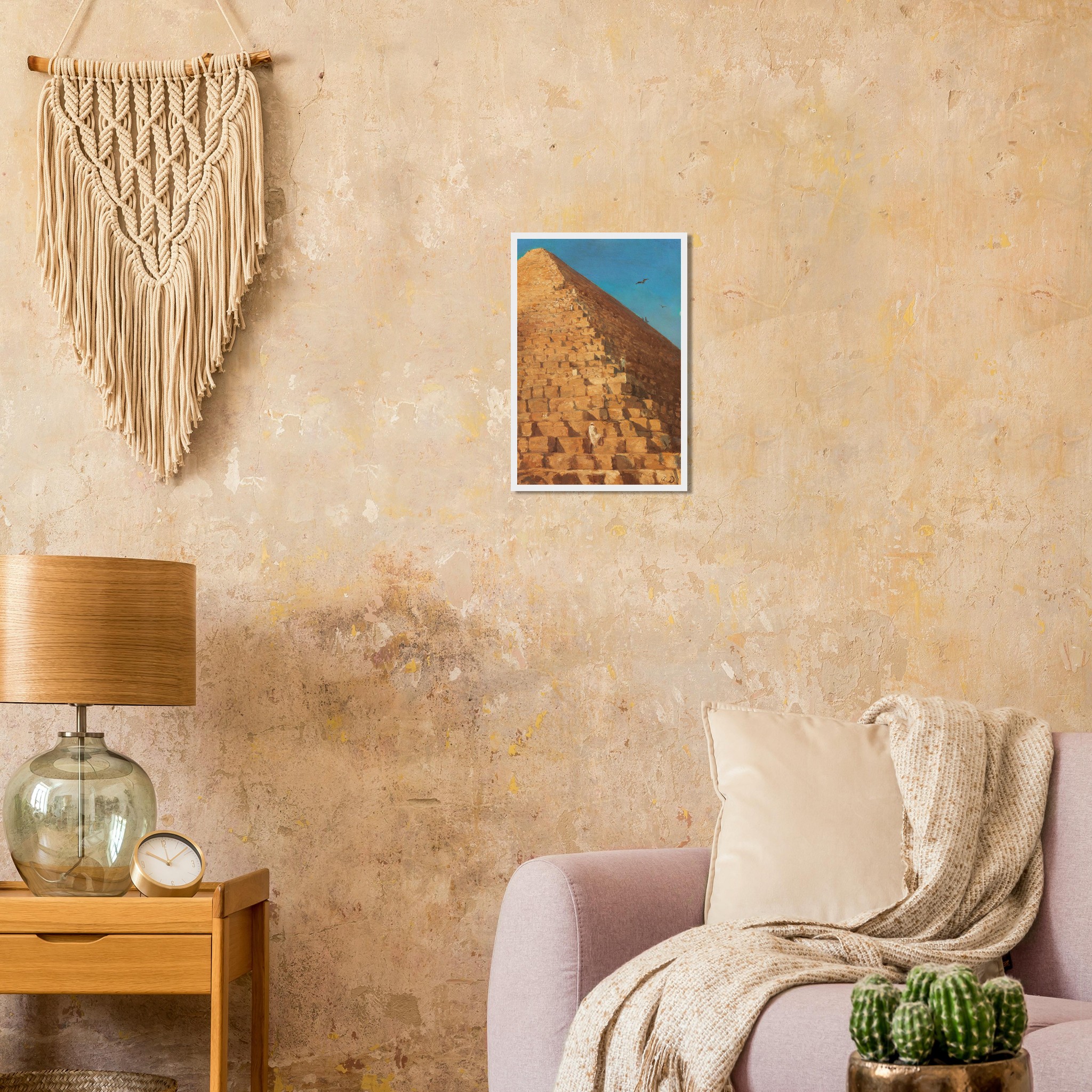 Embark on a journey to the heart of ancient history with this stunning framed poster, capturing the monumental scale of the Great Pyramid and the timeless allure of exploration. The rich, earthy tones of the pyramid stones contrast beautifully with the serene blue sky, creating a sense of awe and adventure that will transform any room into a gateway to the past. This piece is perfect for history enthusiasts, travel dreamers, or anyone seeking a focal point that inspires wonder.