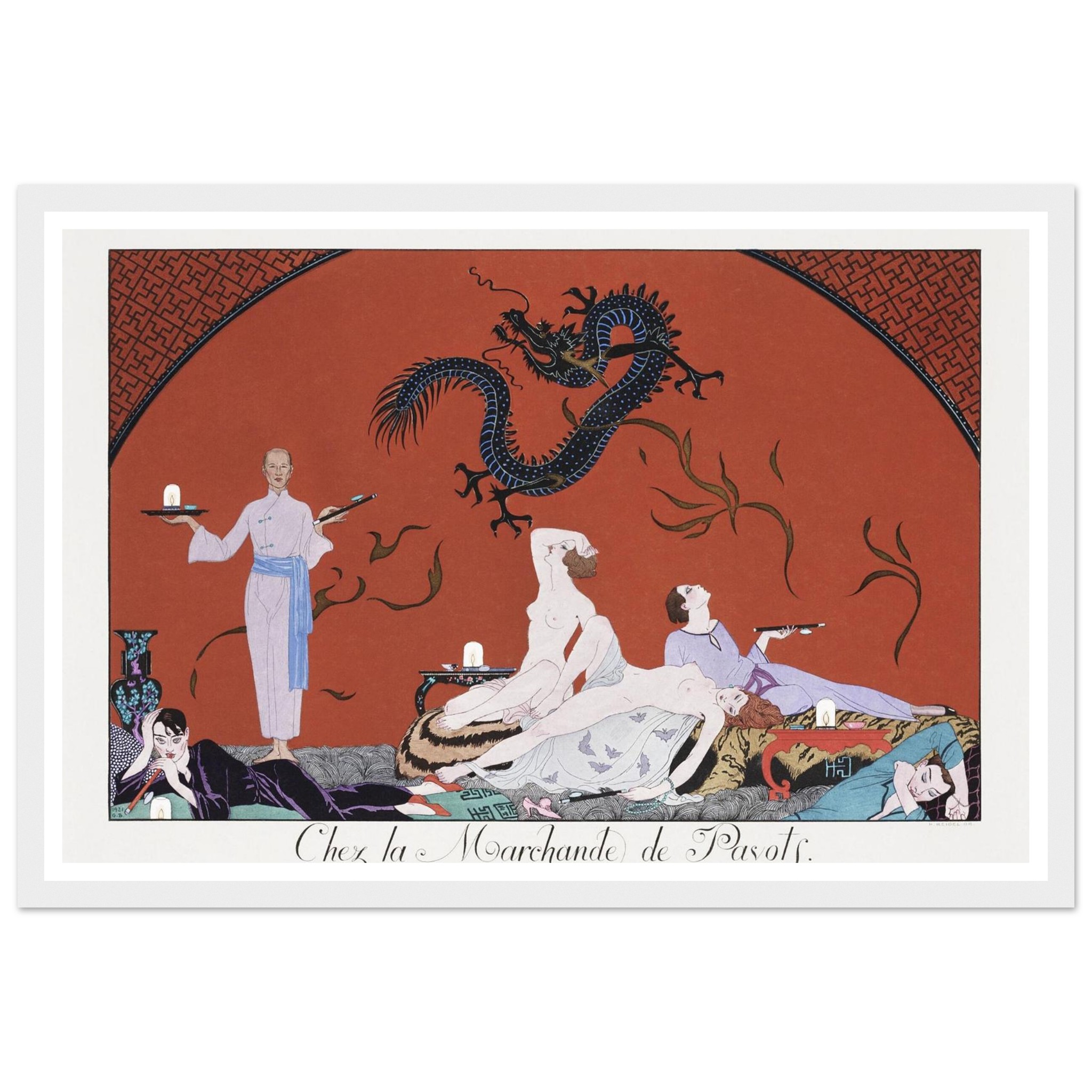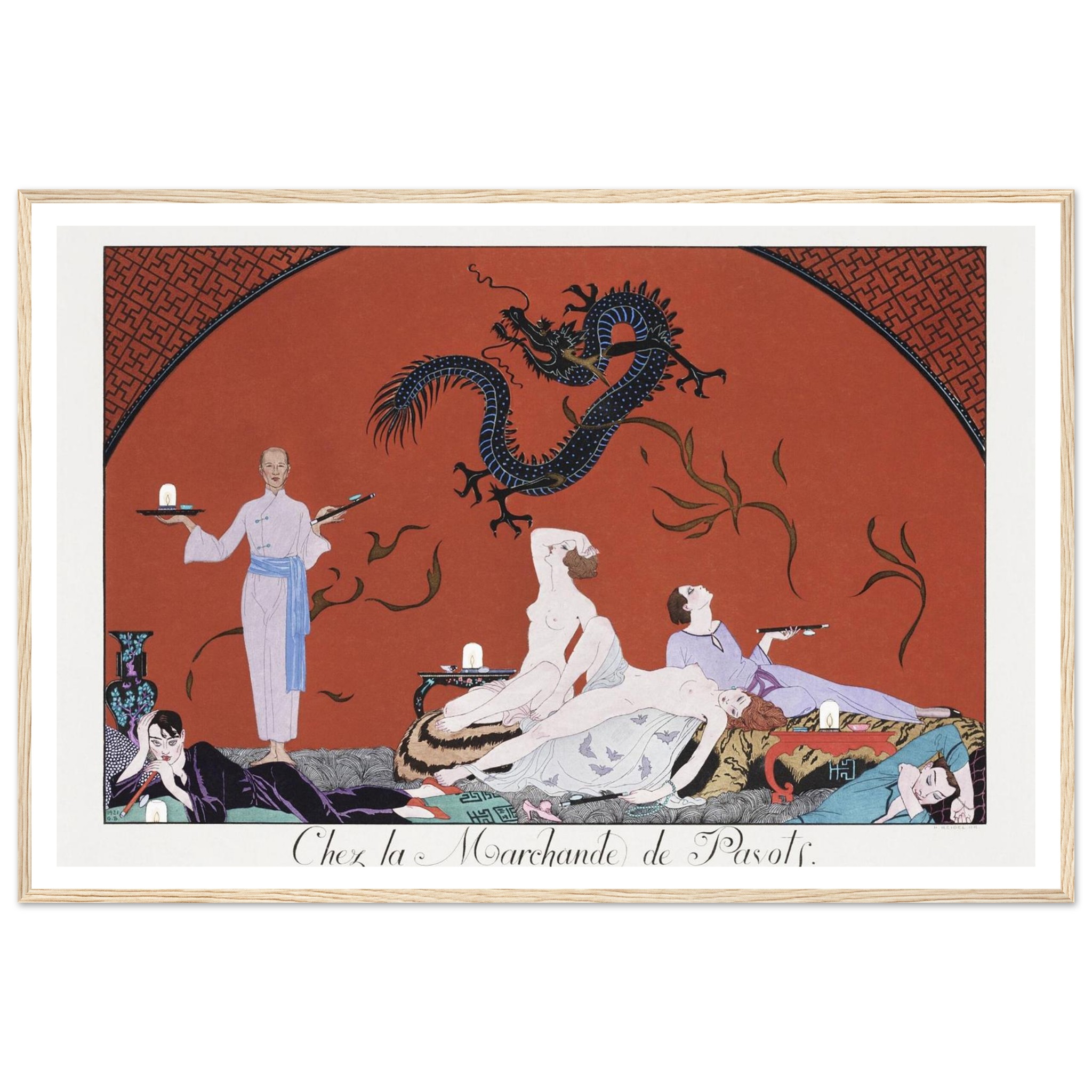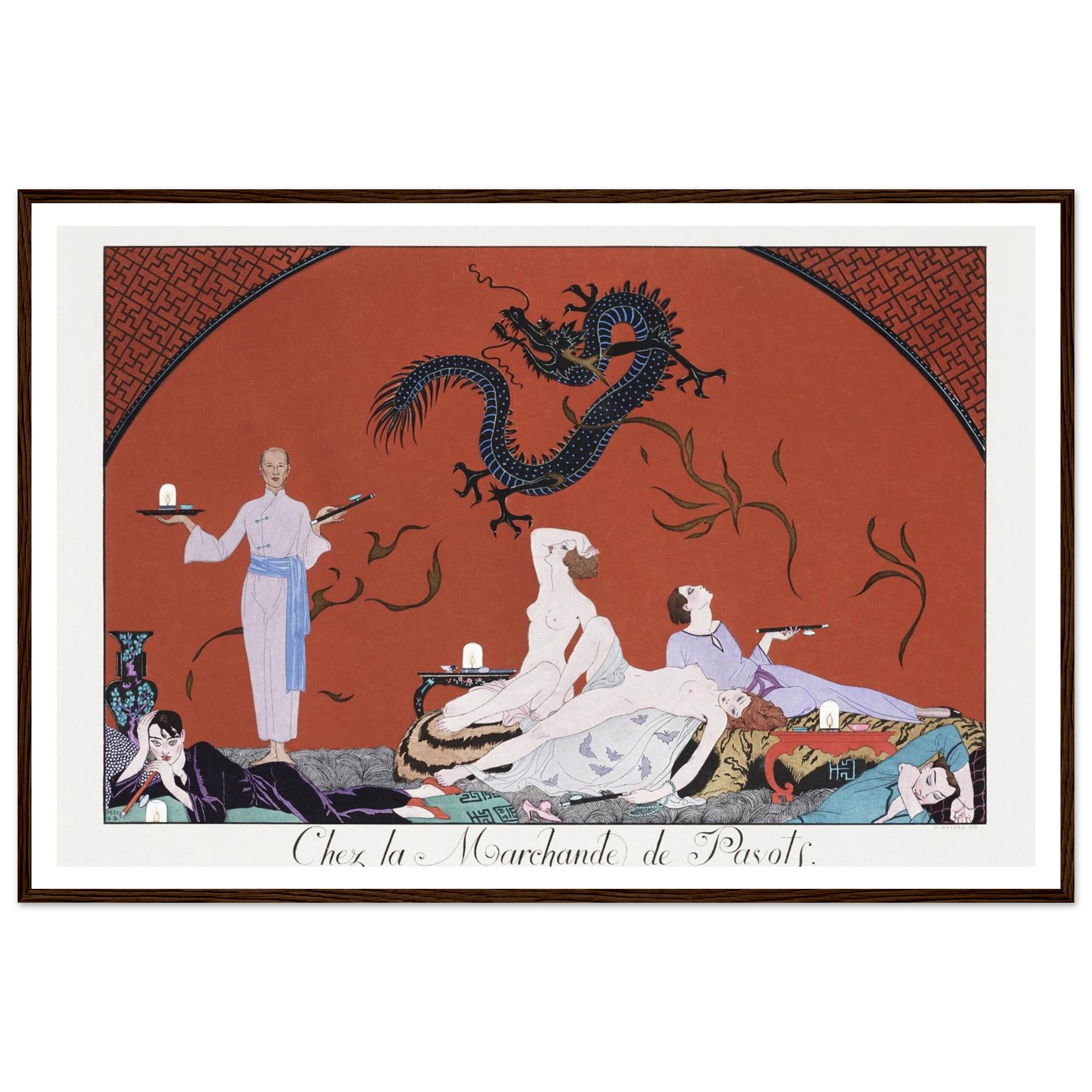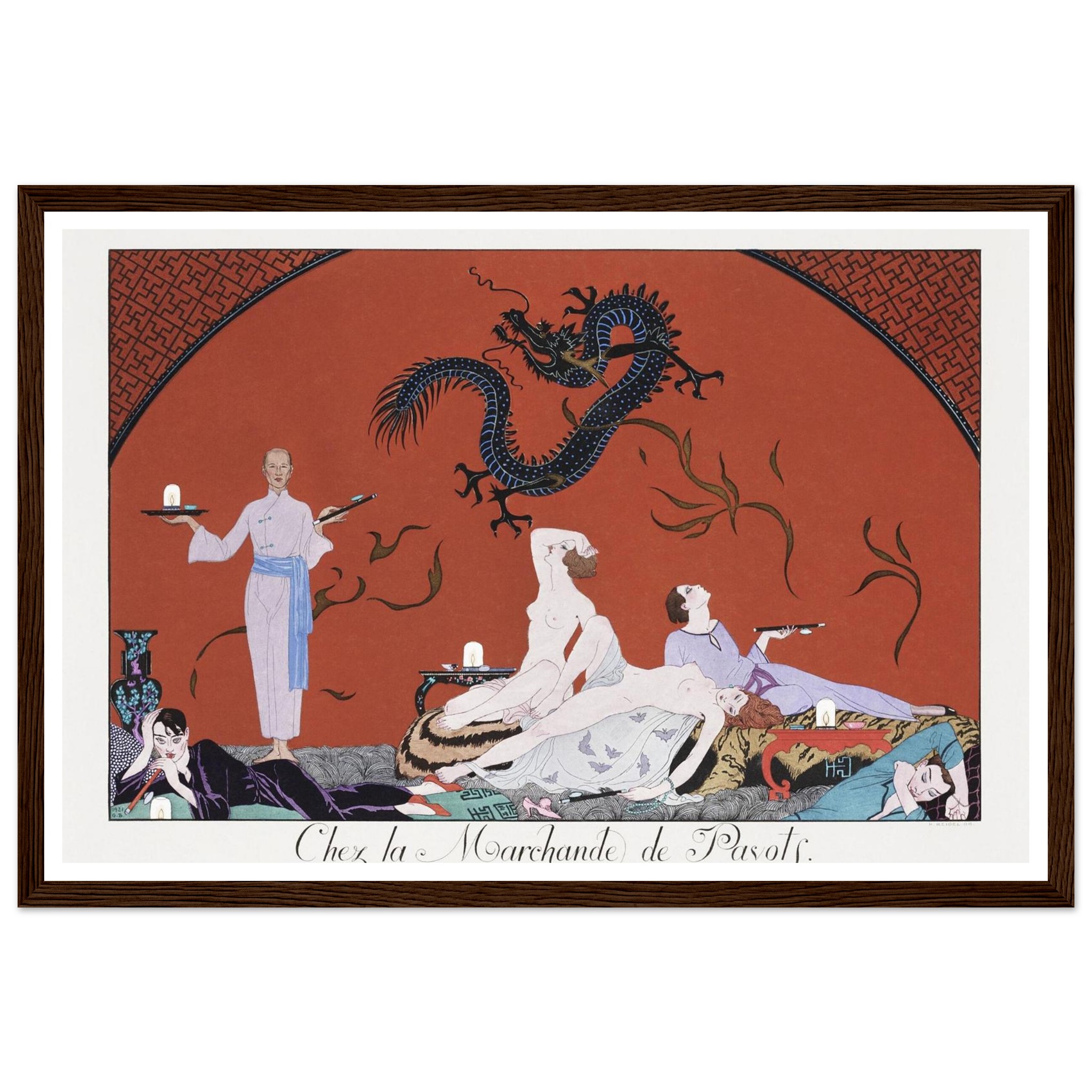 No minimum orders, printed and shipped on demand. Elevate your home with a piece that speaks volumes – choose your ideal size and frame color, and order your Art Deco ‘Opium Den’ poster today!