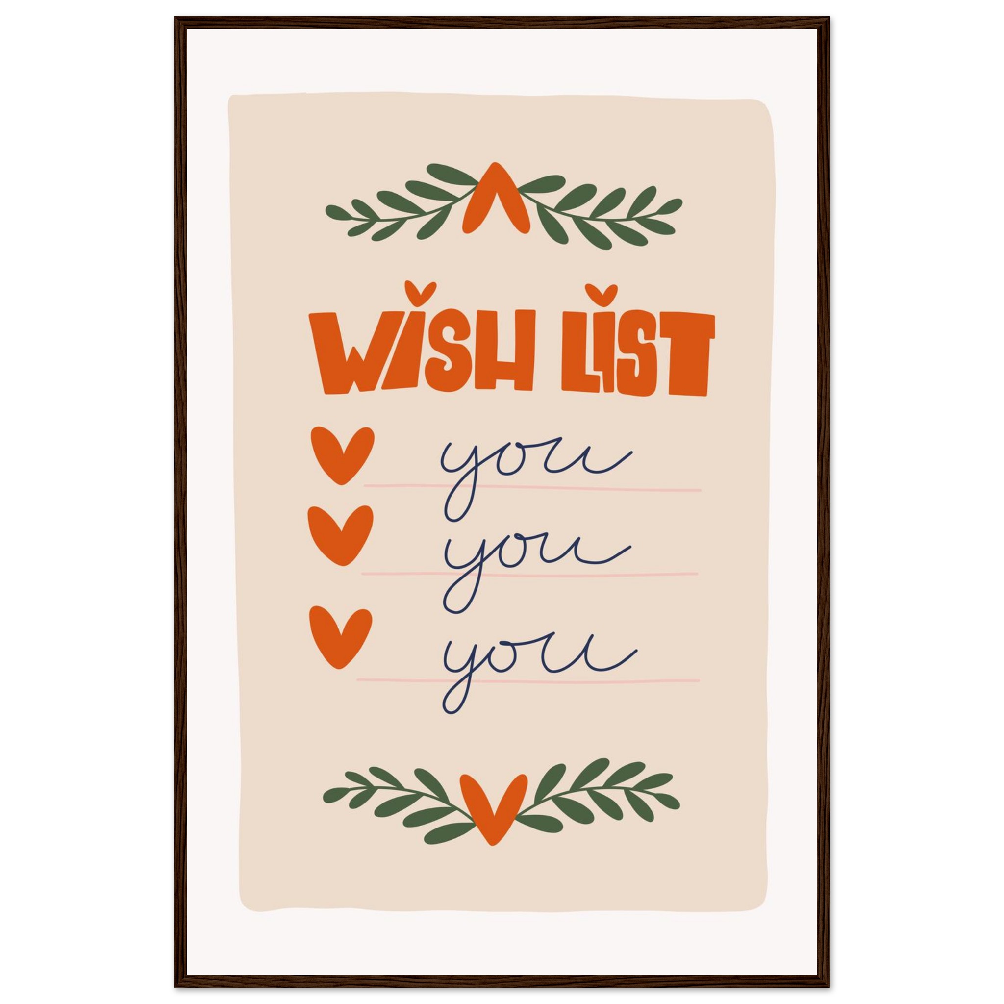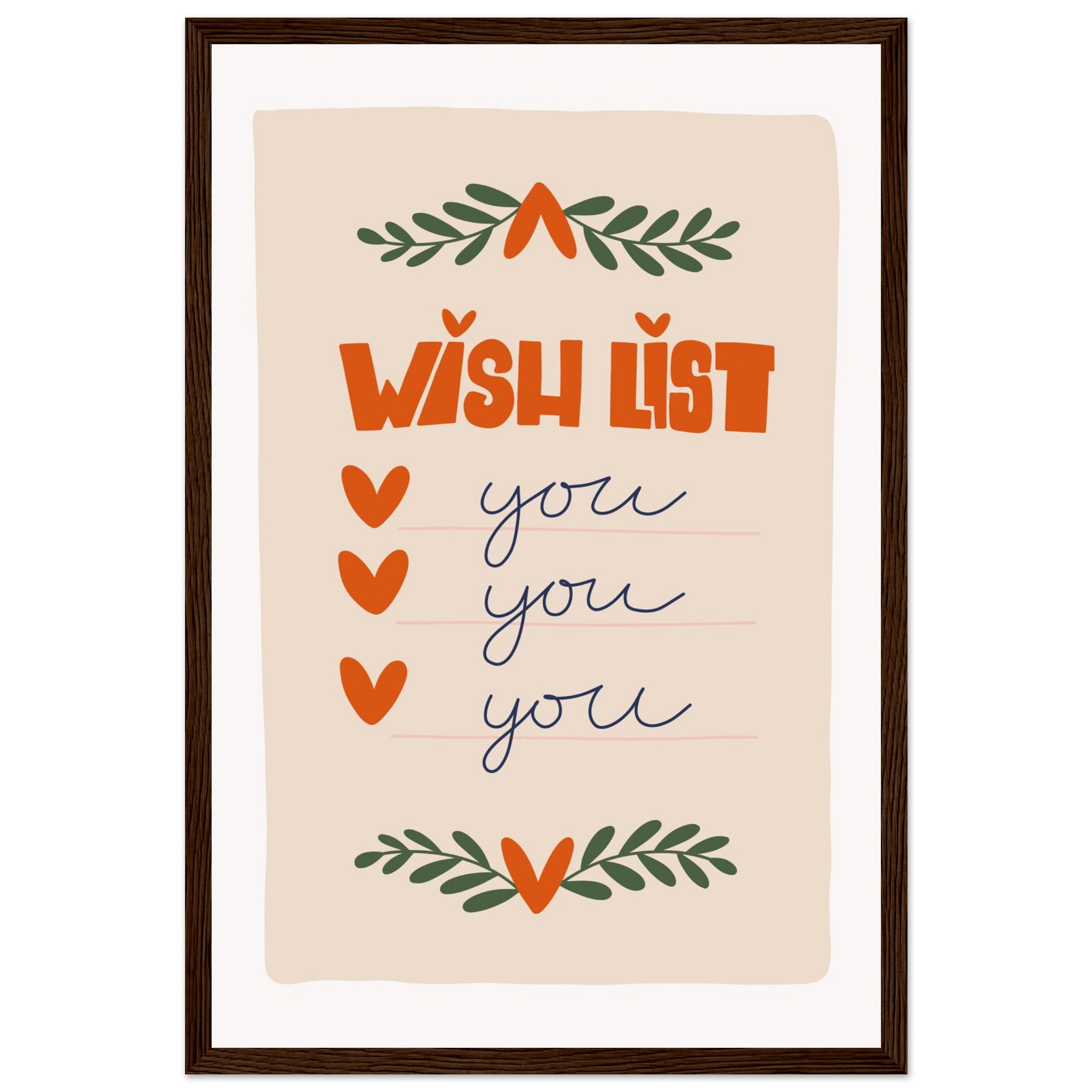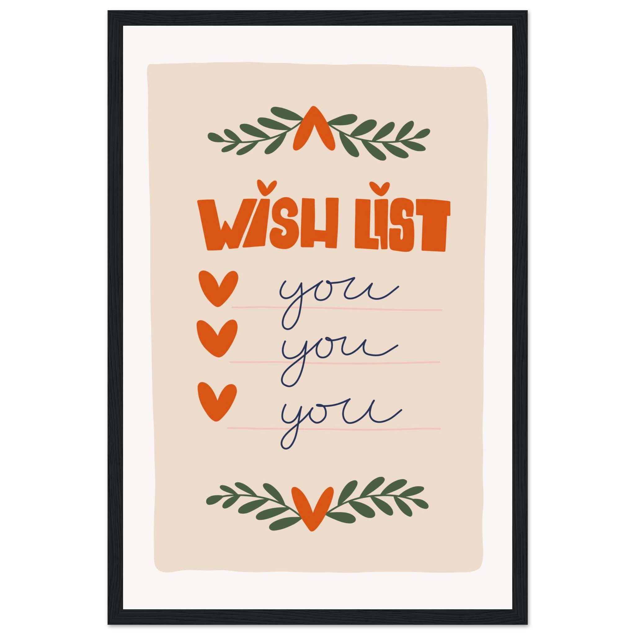 Charming ‘Wish List: You’ Framed Poster – Sweet & Playful Wall Art in Various Sizes & Frame Colors