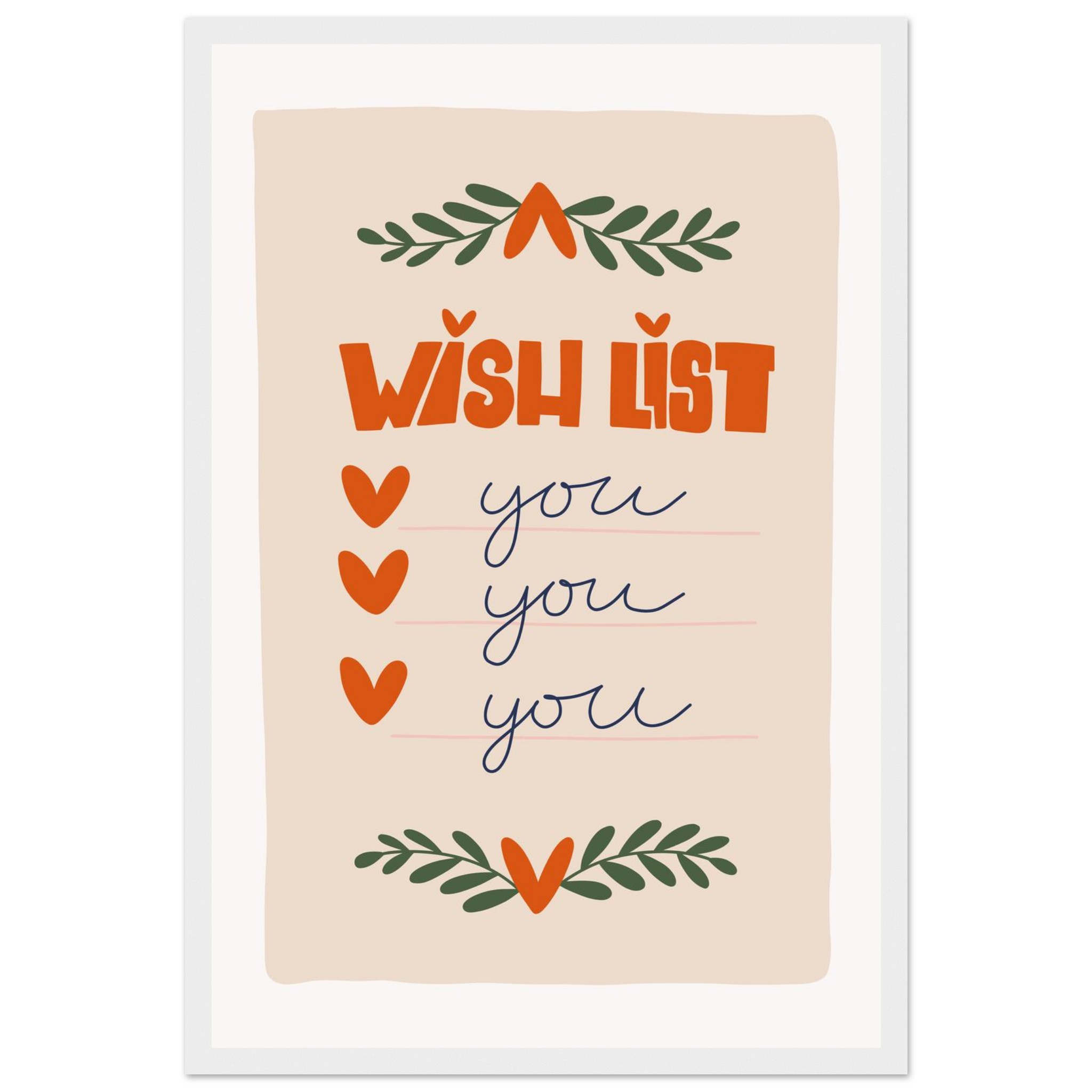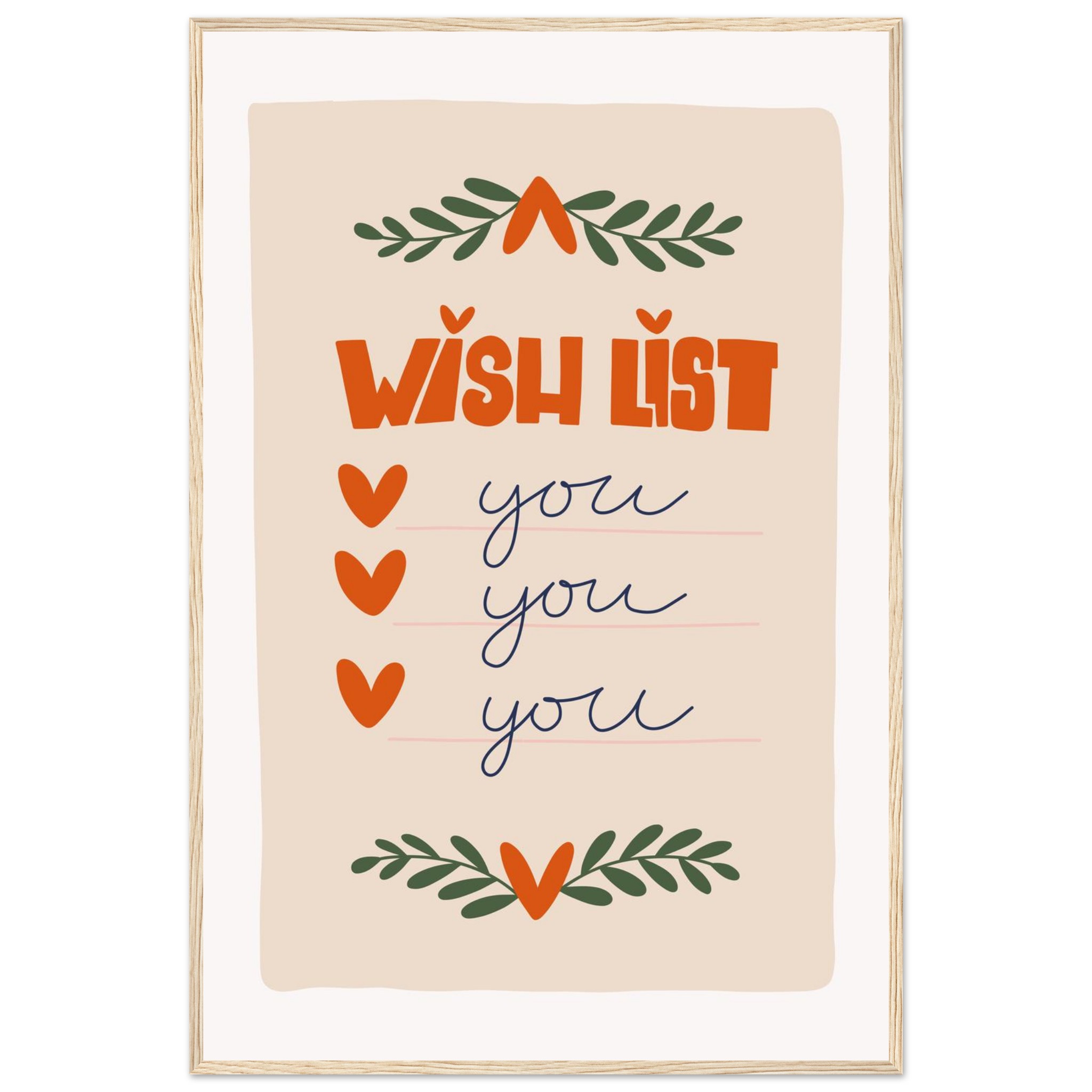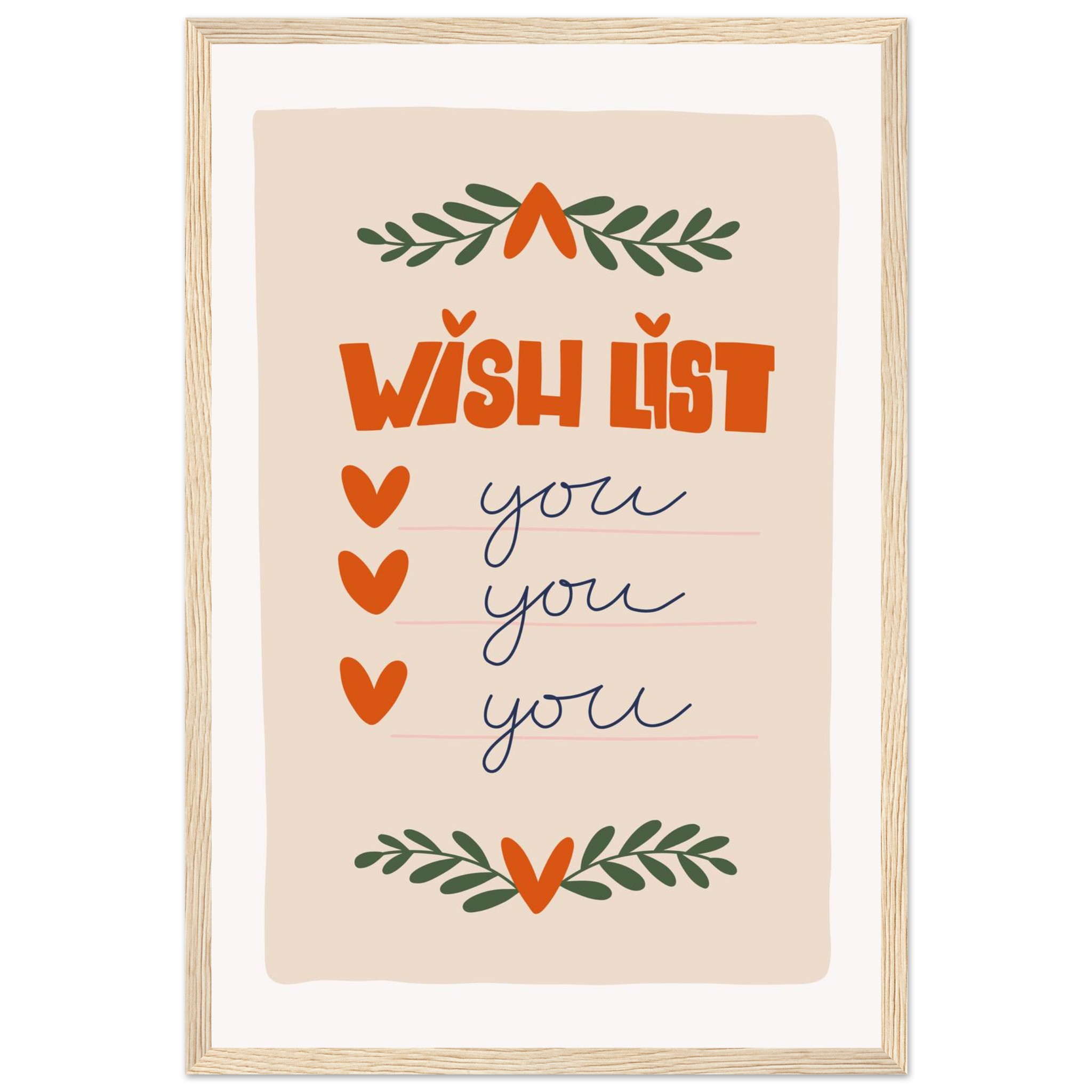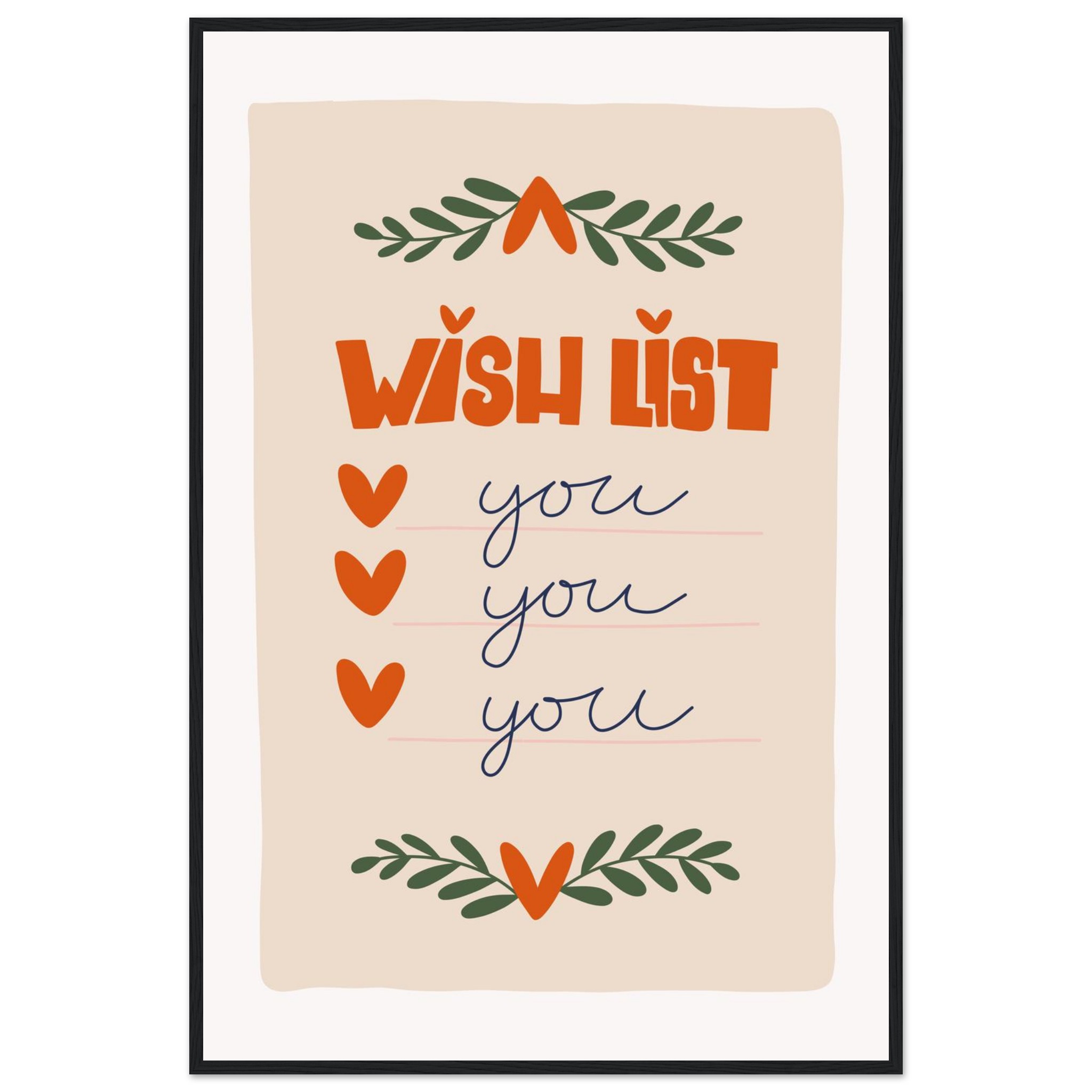 Charming ‘Wish List: You’ Framed Poster – Sweet & Playful Wall Art in Various Sizes & Frame Colors