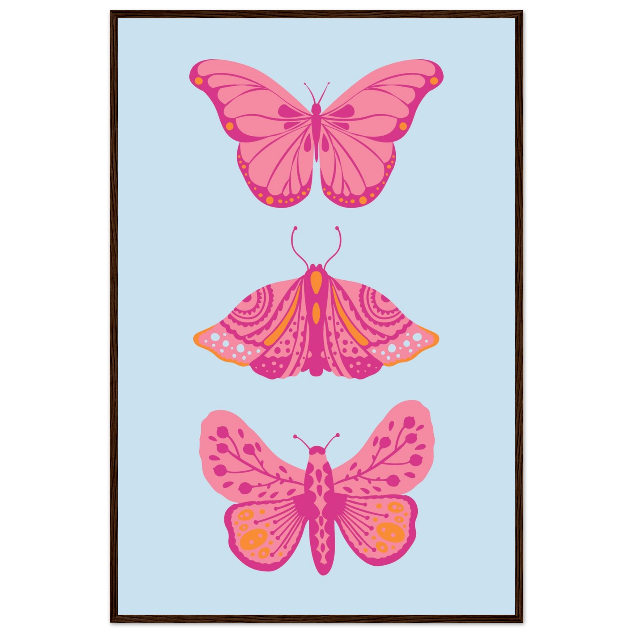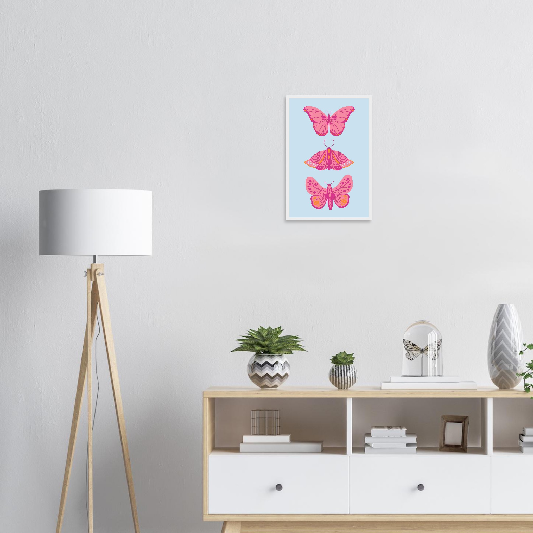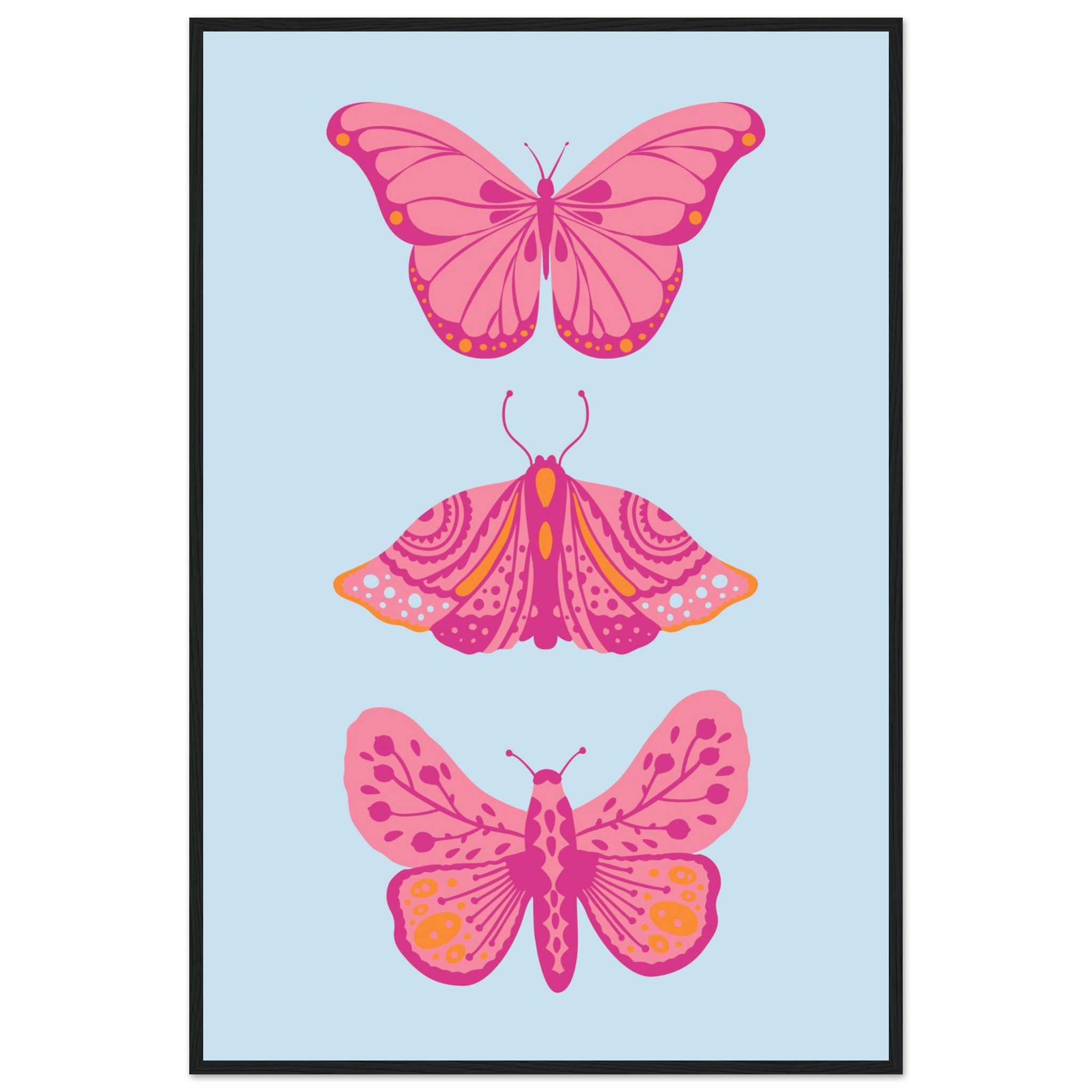 Chic Pink Butterfly Trio Art Print – Classic Matte Framed Poster for Vibrant Decor