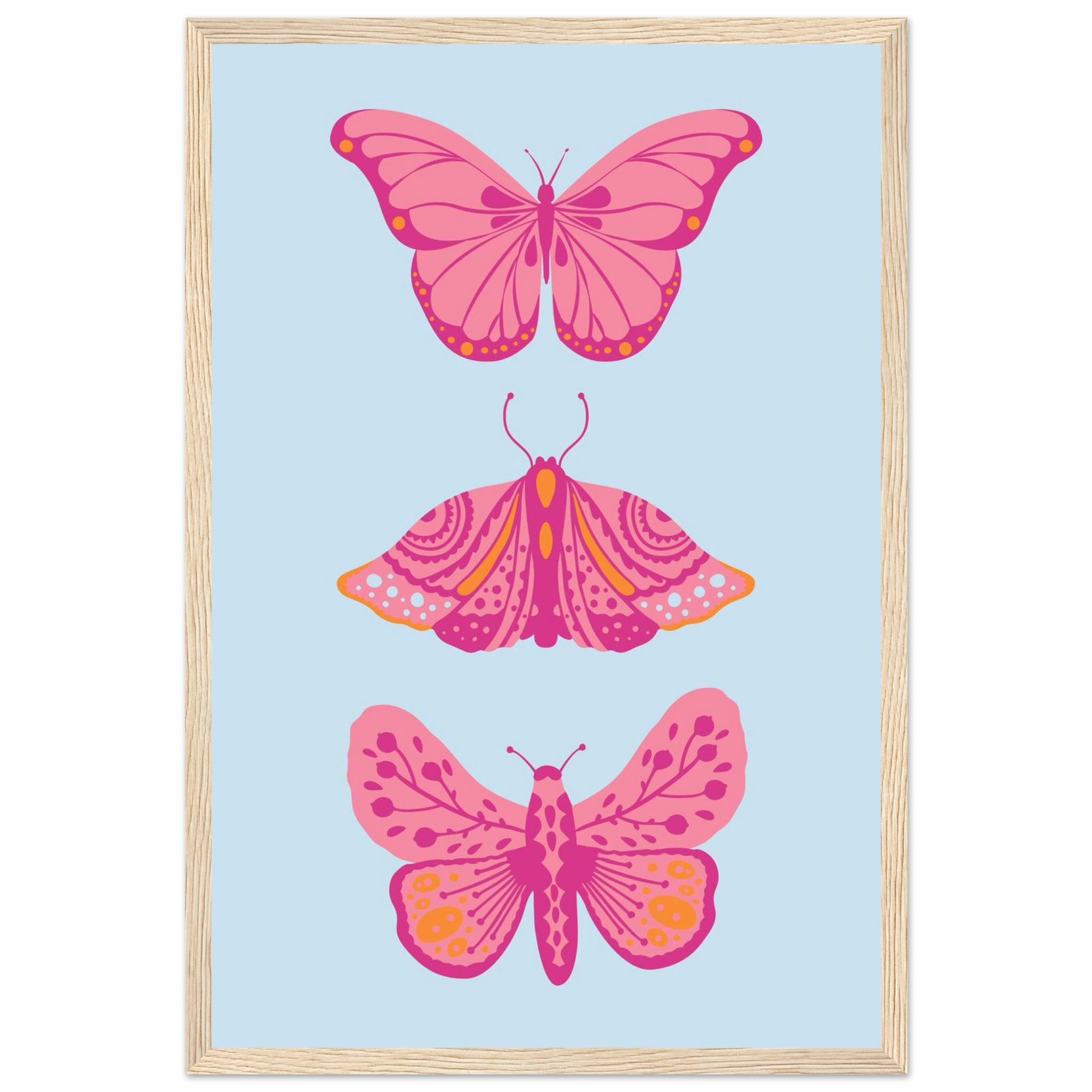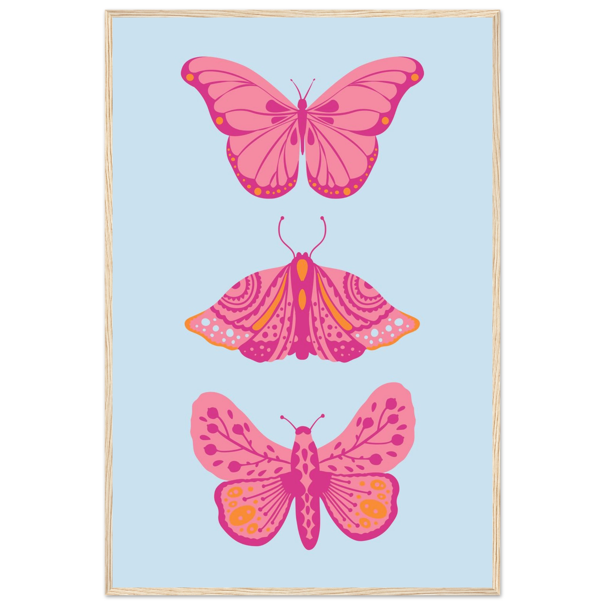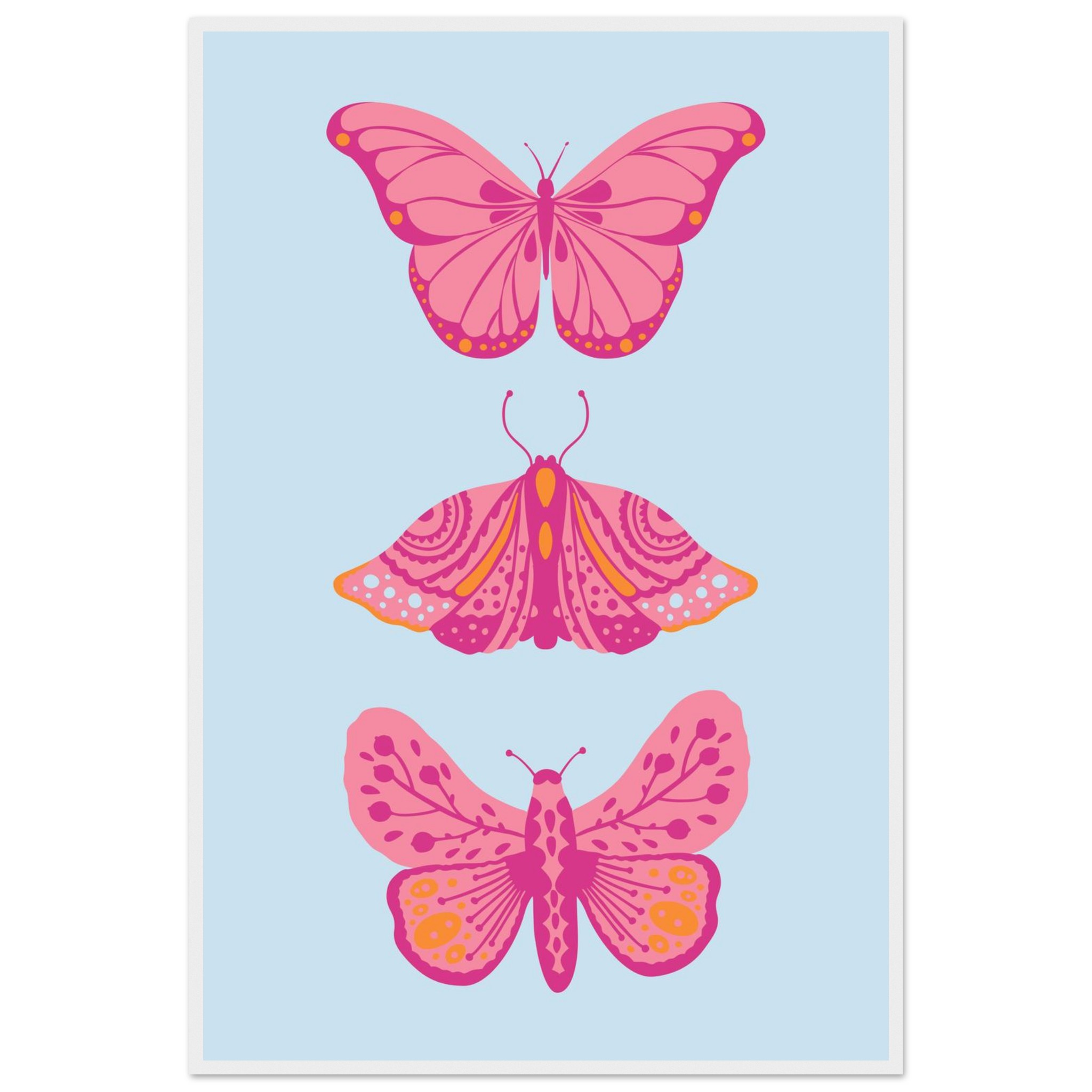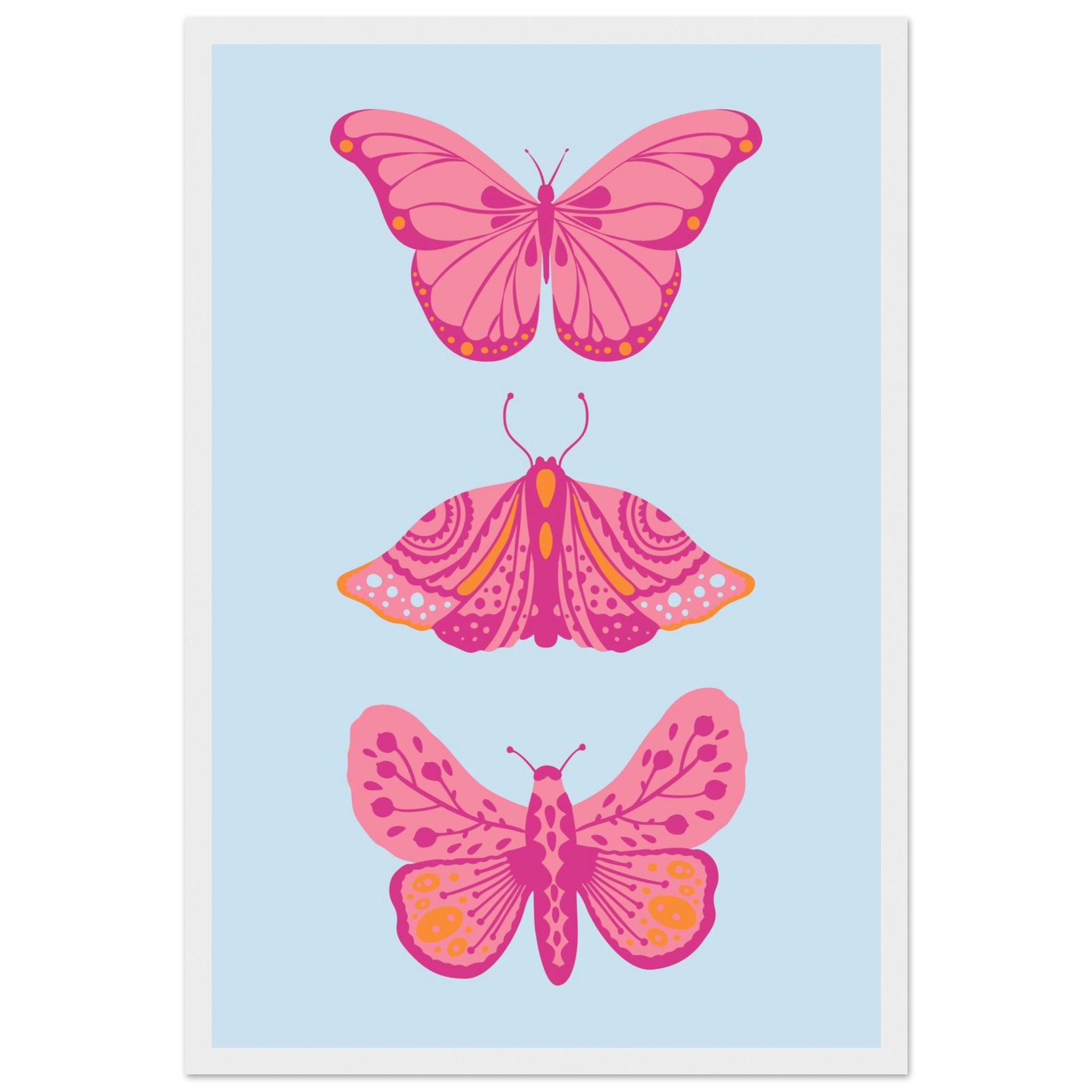 Chic Pink Butterfly Trio Art Print – Classic Matte Framed Poster for Vibrant Decor