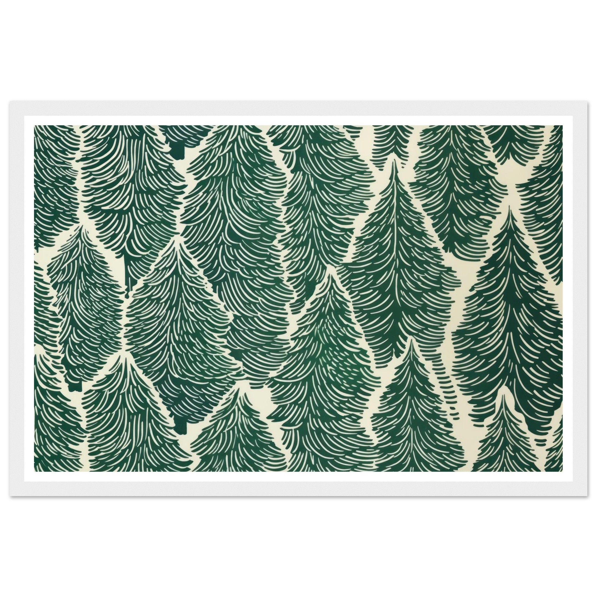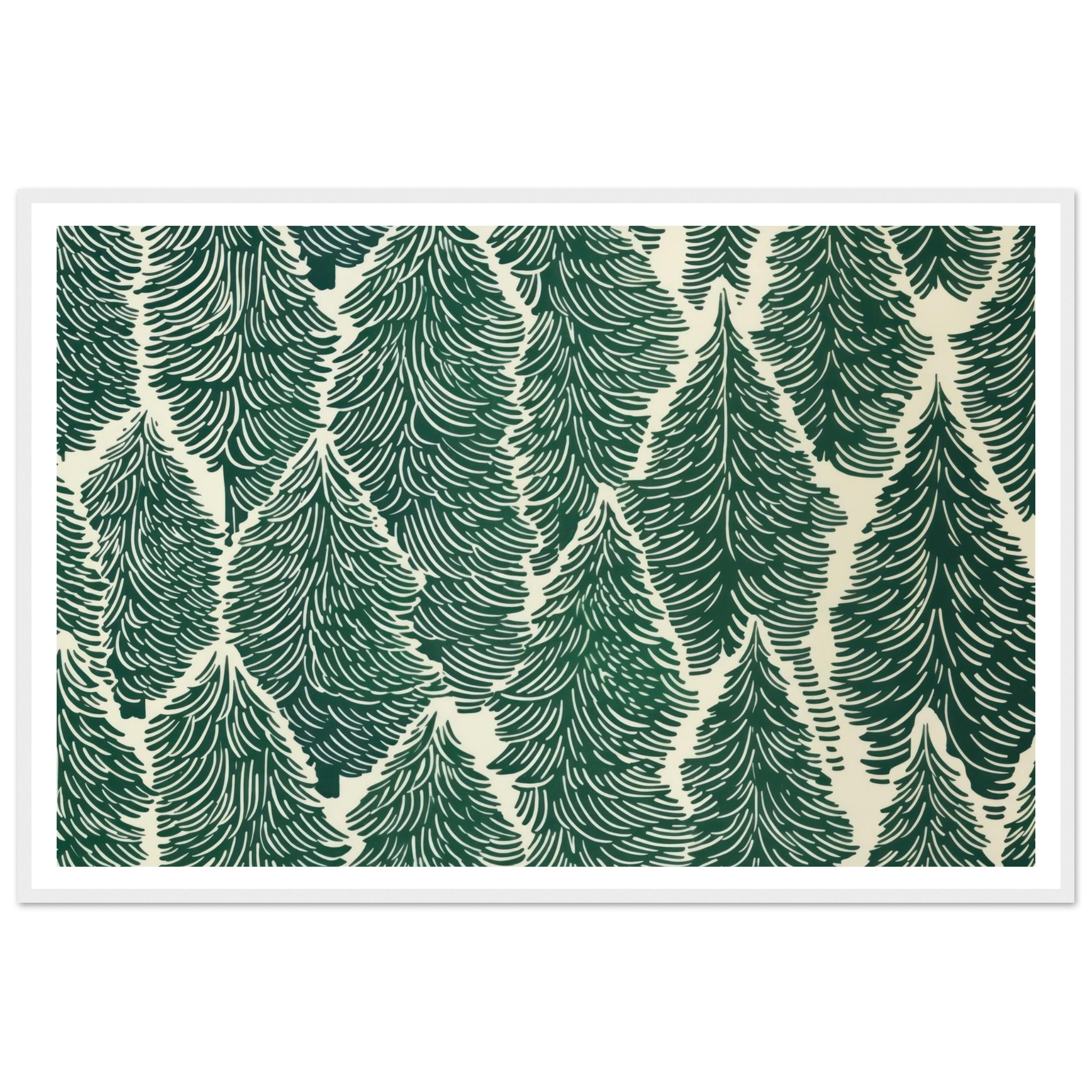 Bring the tranquility of a serene forest into your home with our Enchanting Forest Green Pine Trees Framed Poster. This captivating artwork, featuring stylized pine trees in lush forest green on a creamy background, offers a calming yet sophisticated touch to any space. Printed on heavyweight matte paper, its smooth, non-reflective finish enhances the artwork’s depth, inviting a sense of natural peace and elegant simplicity into your decor.