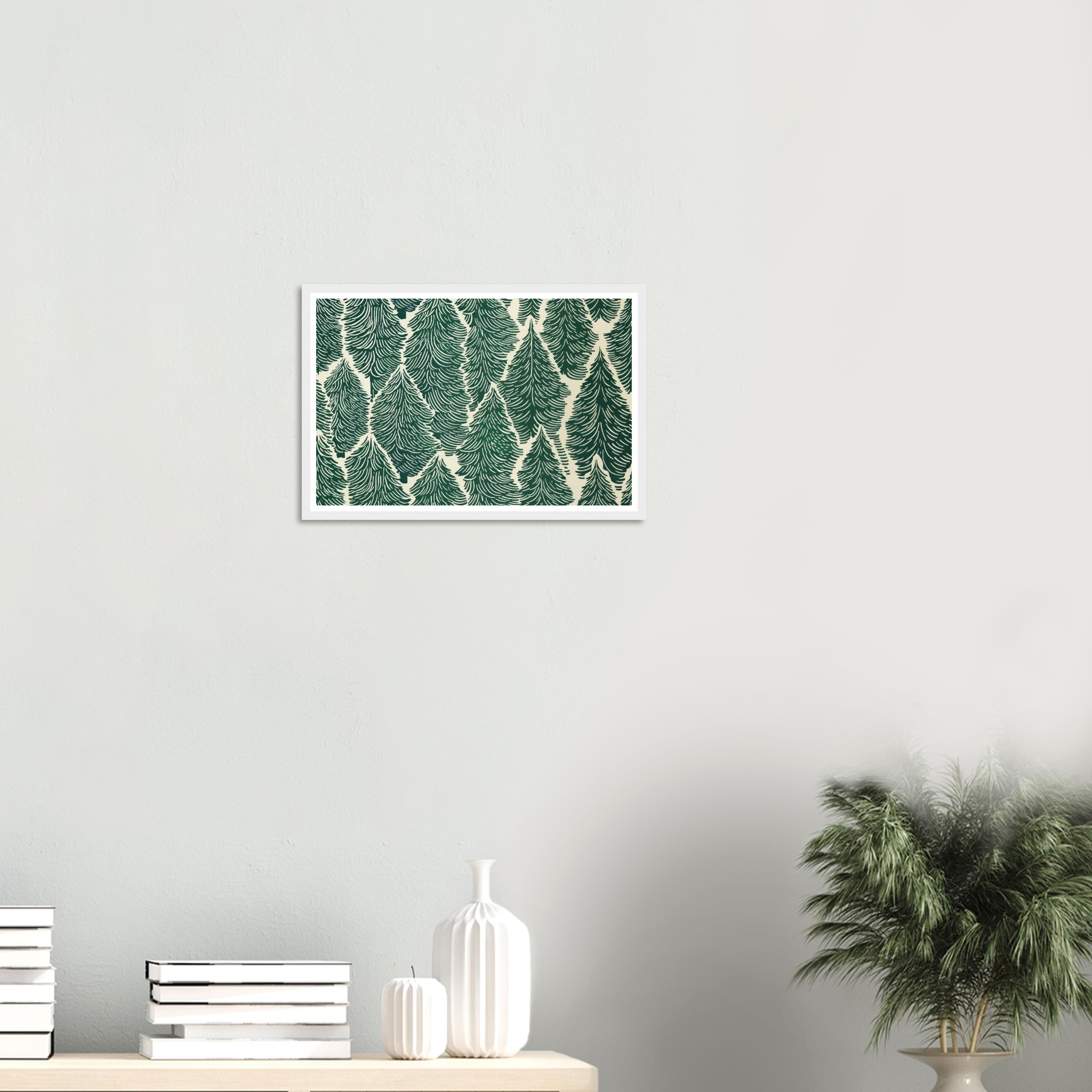 Enchanting Forest Green Pine Trees Framed Poster – Classic Matte Finish & Premium Wood Frame