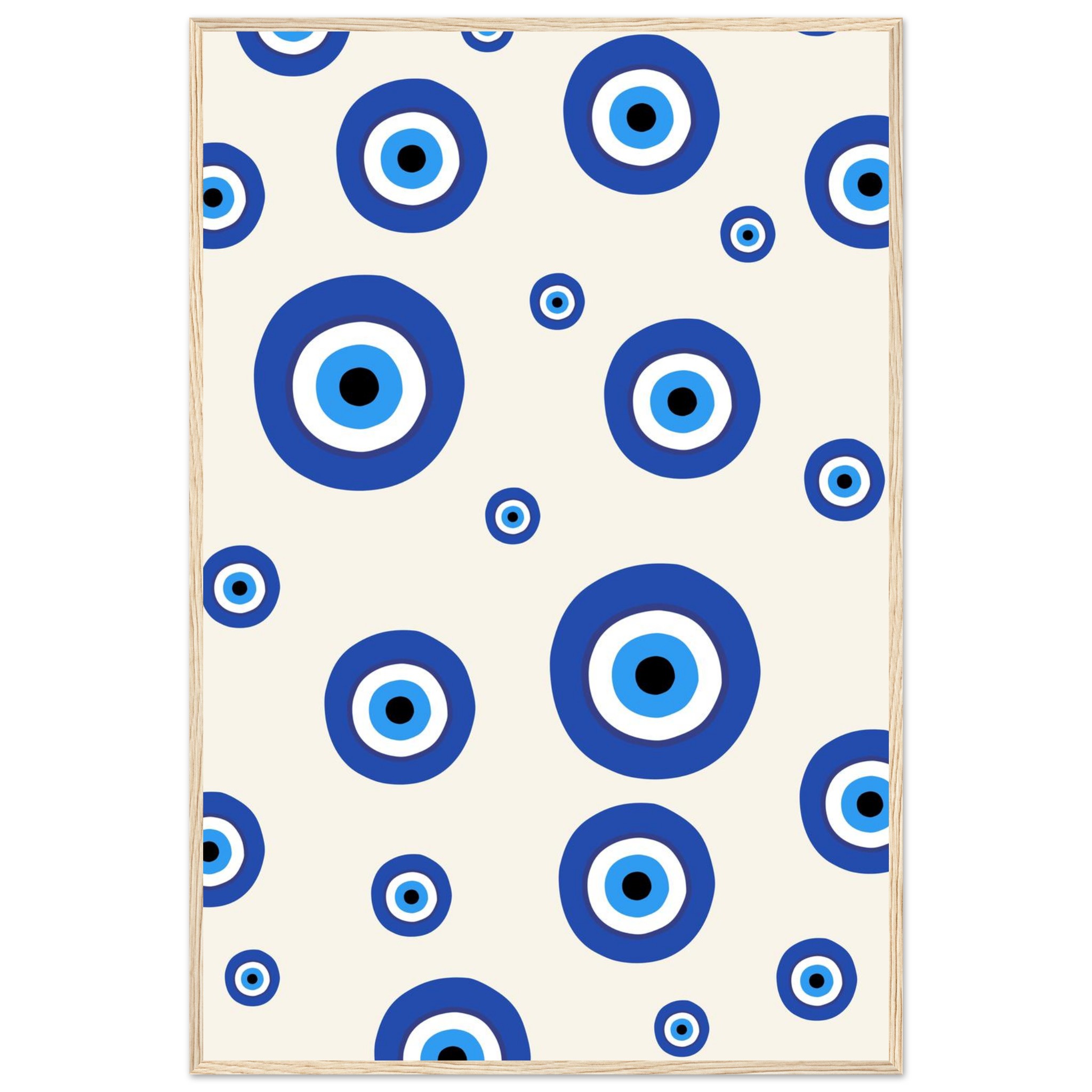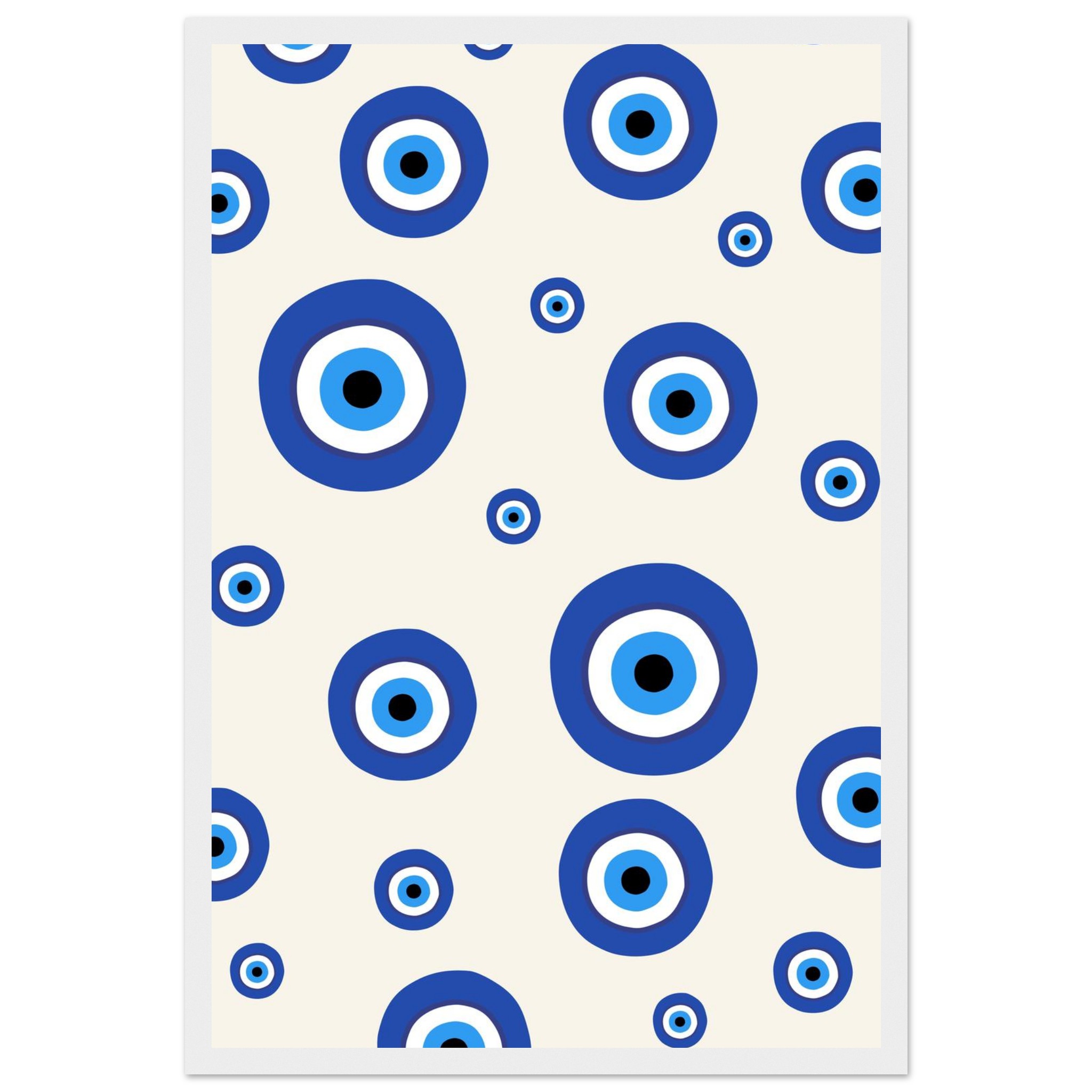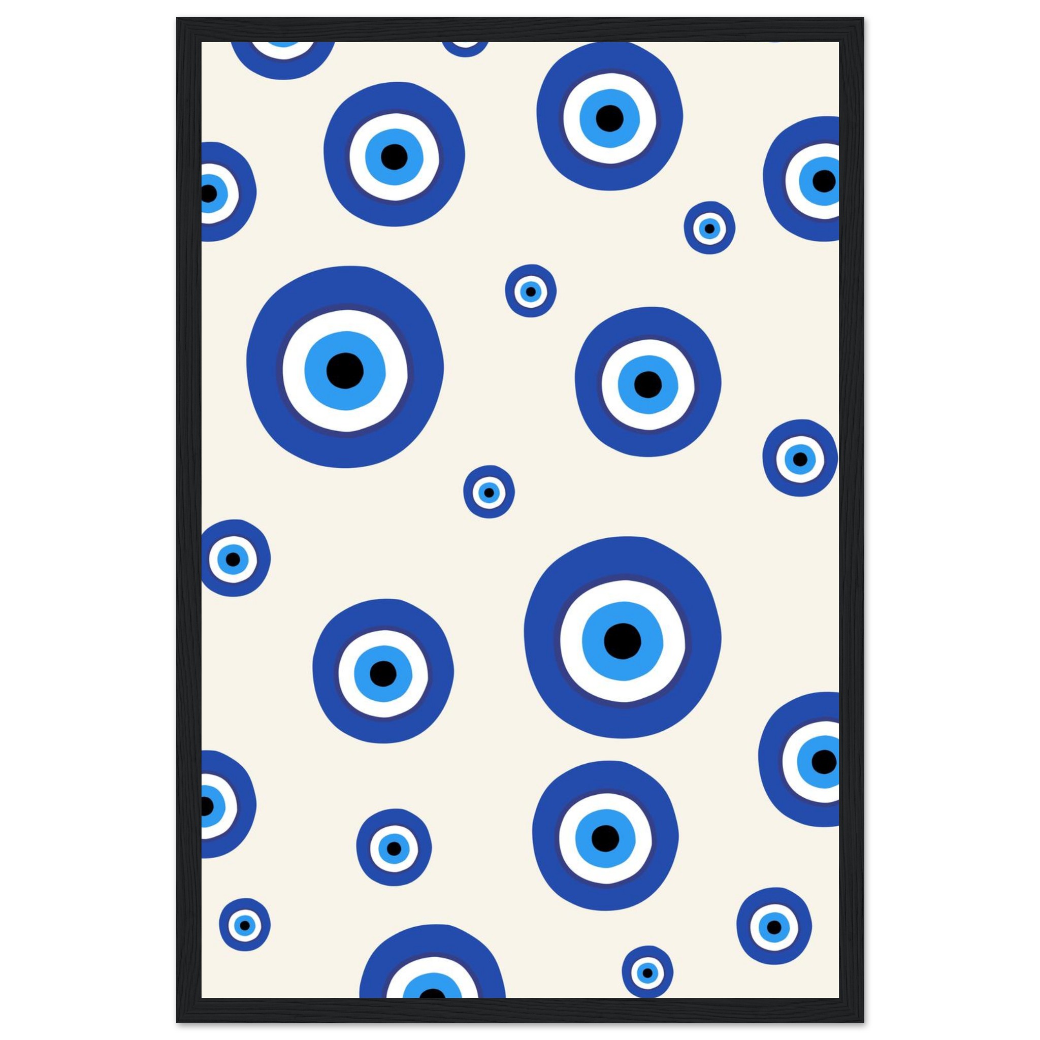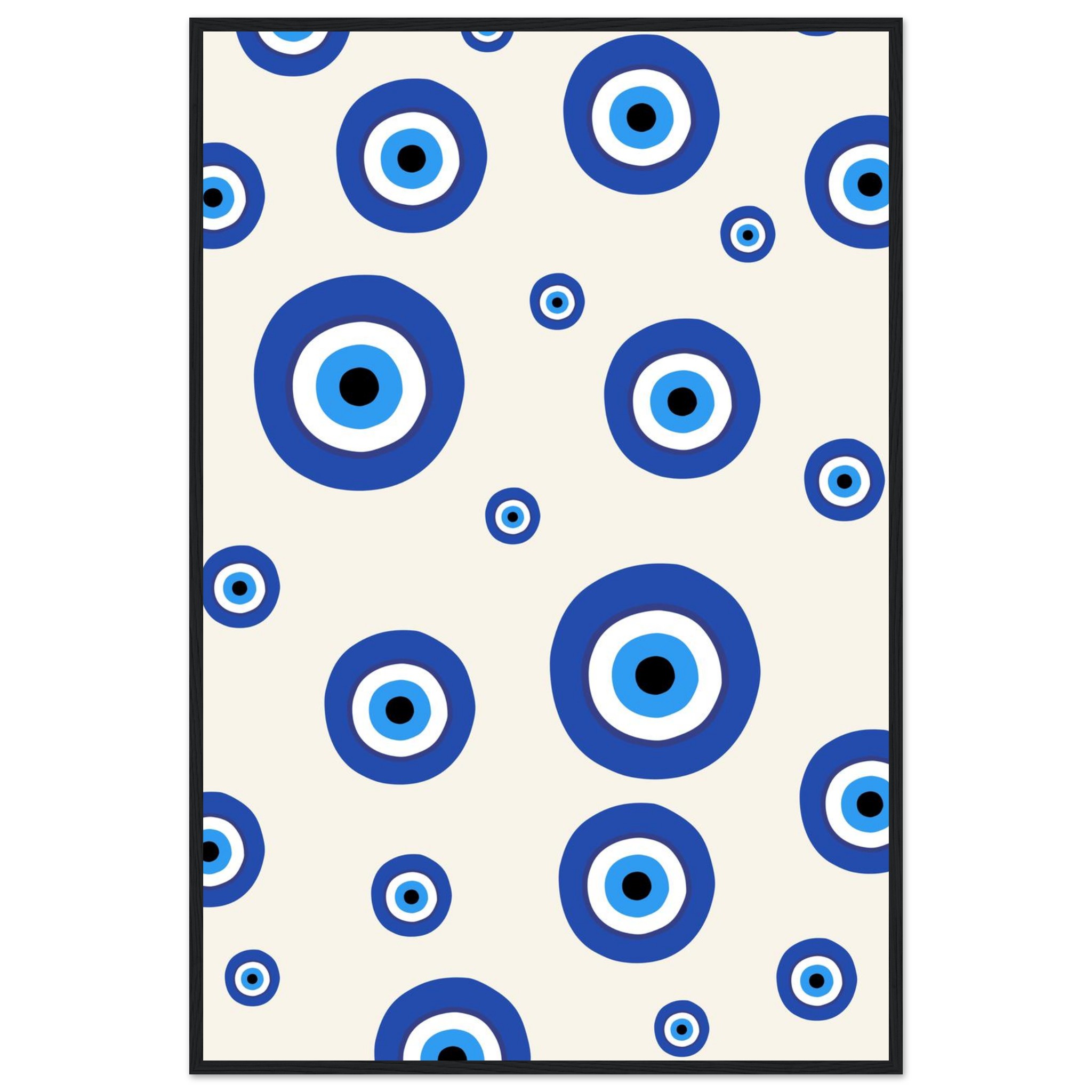 Embrace ancient symbolism and bring a touch of protective charm to your space with our stunning Evil Eye Framed Poster. This vibrant print, featuring the iconic blue and white evil eye motif scattered across a serene background, is more than just decor; it’s a statement piece designed to ward off negativity and invite good fortune. Perfect for creating a focal point in any room, its timeless design blends seamlessly with both modern and bohemian aesthetics.