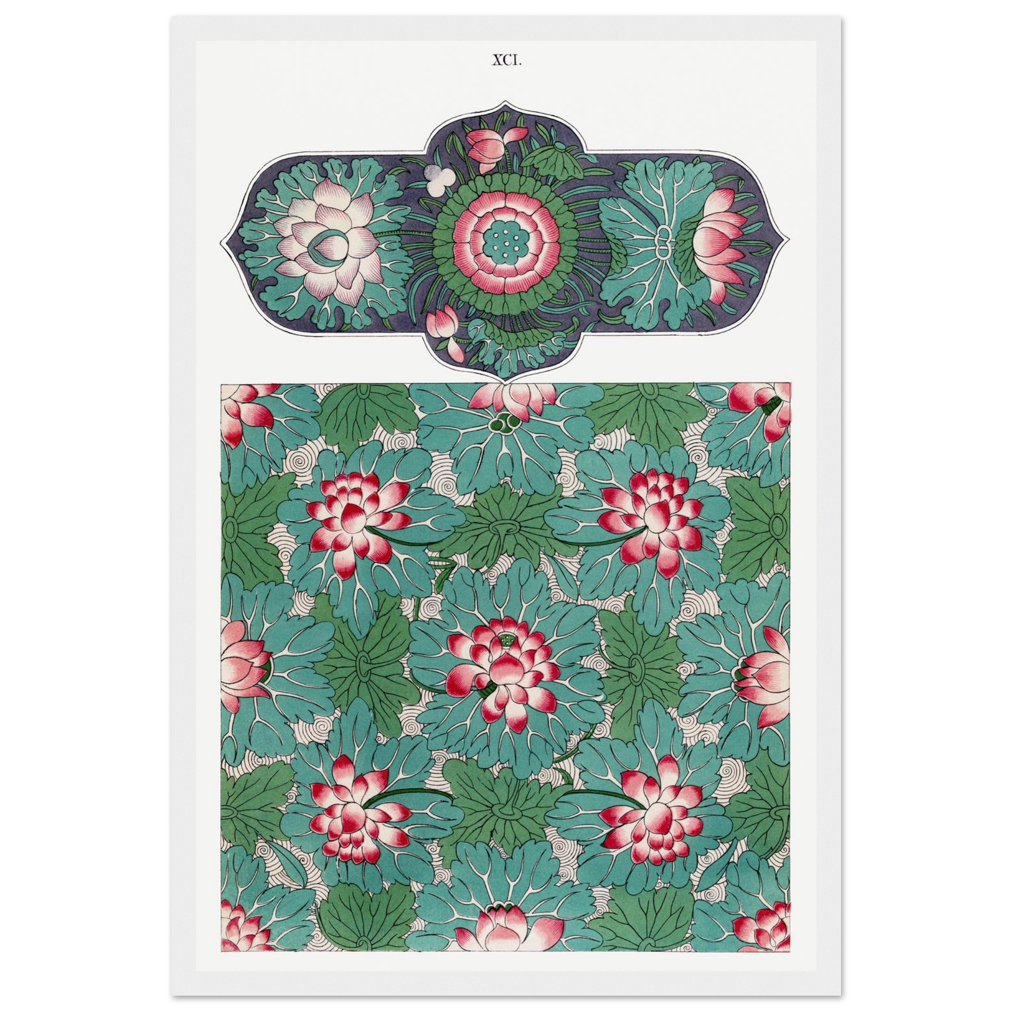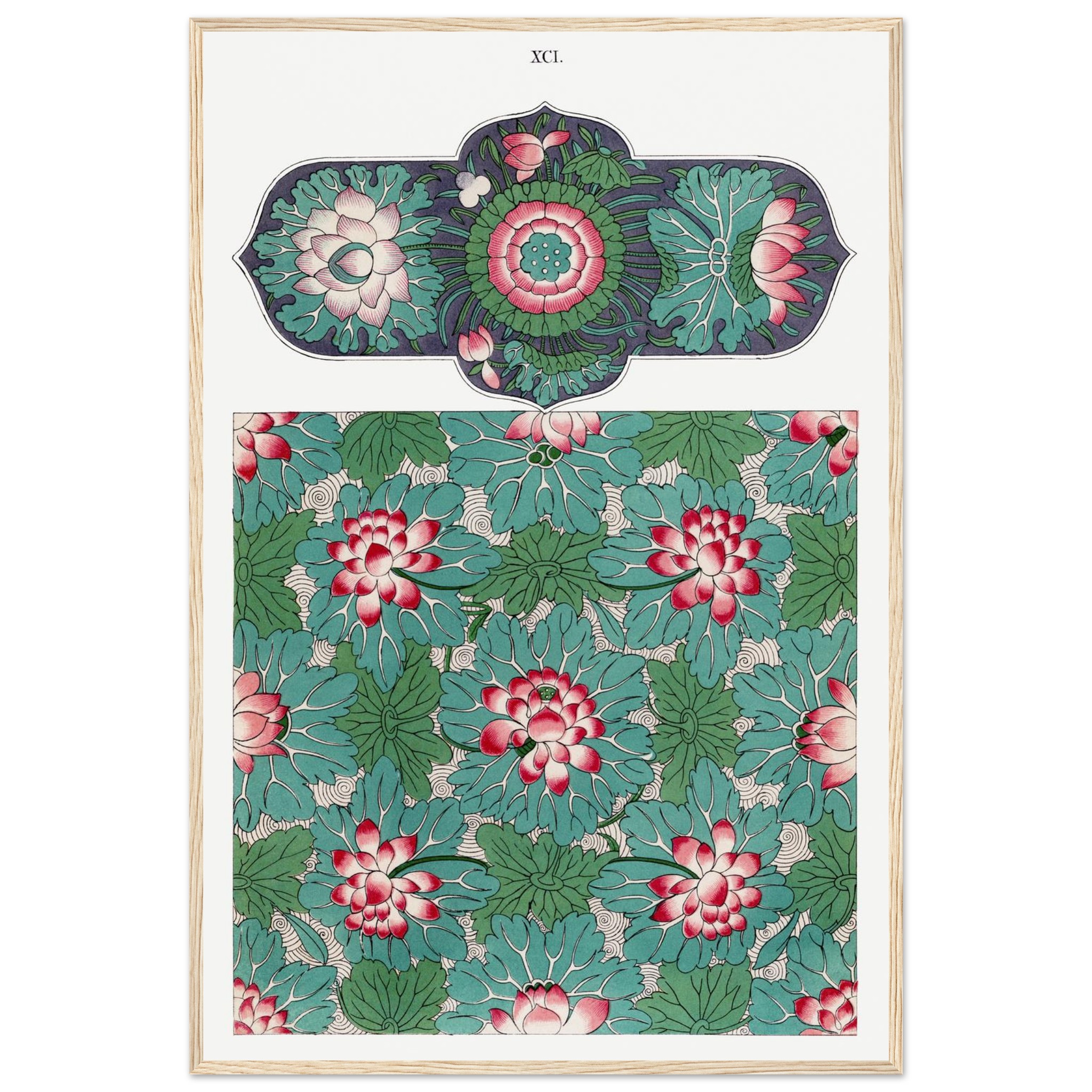 Bring the serene beauty and rich colors of an exotic lotus garden into your home with our stunning framed poster. This piece features a captivating pattern of vibrant pink lotus blooms nestled amongst lush green and teal leaves, evoking a sense of tranquil elegance and timeless artistry. It’s the perfect statement piece to infuse any room with a touch of sophisticated, botanical charm.