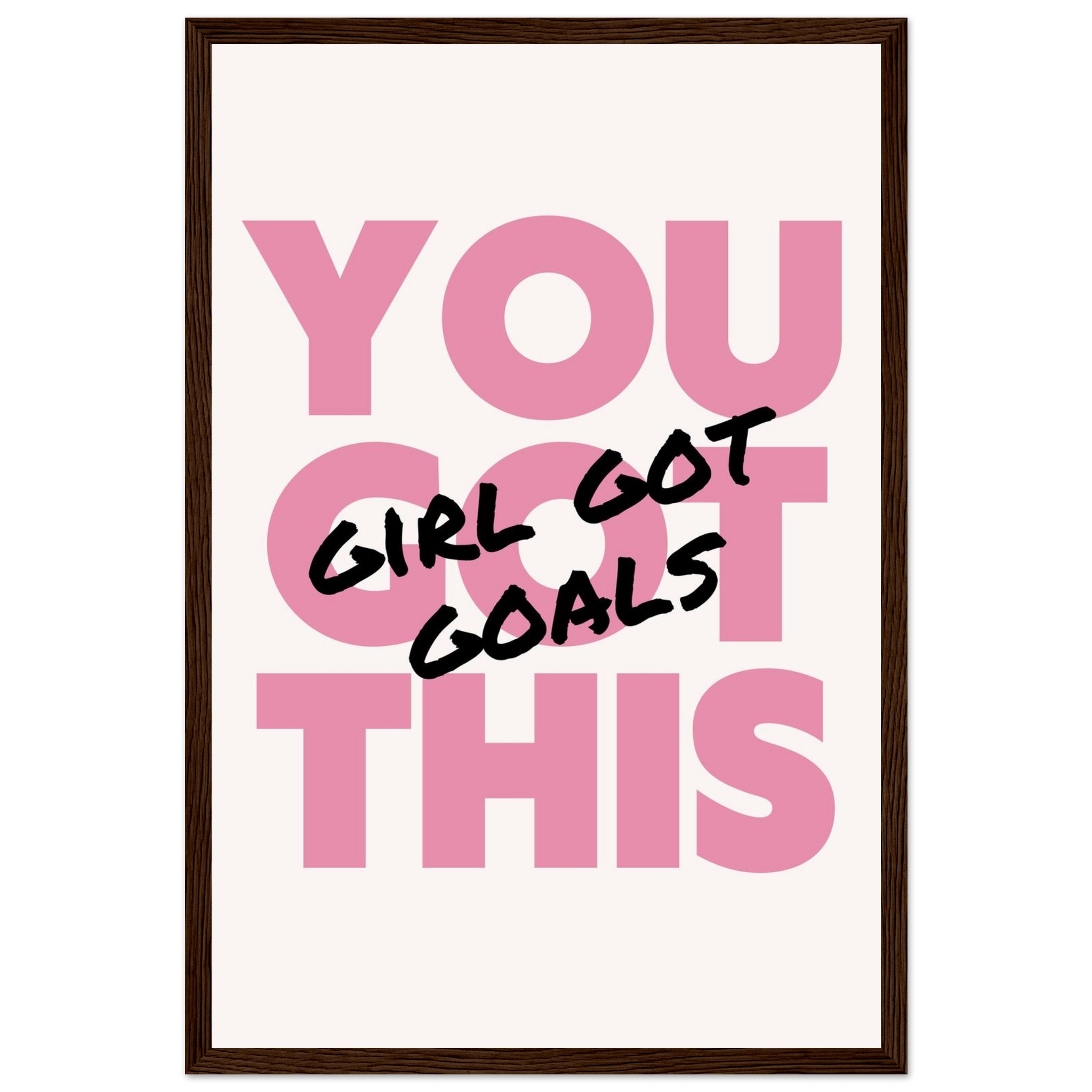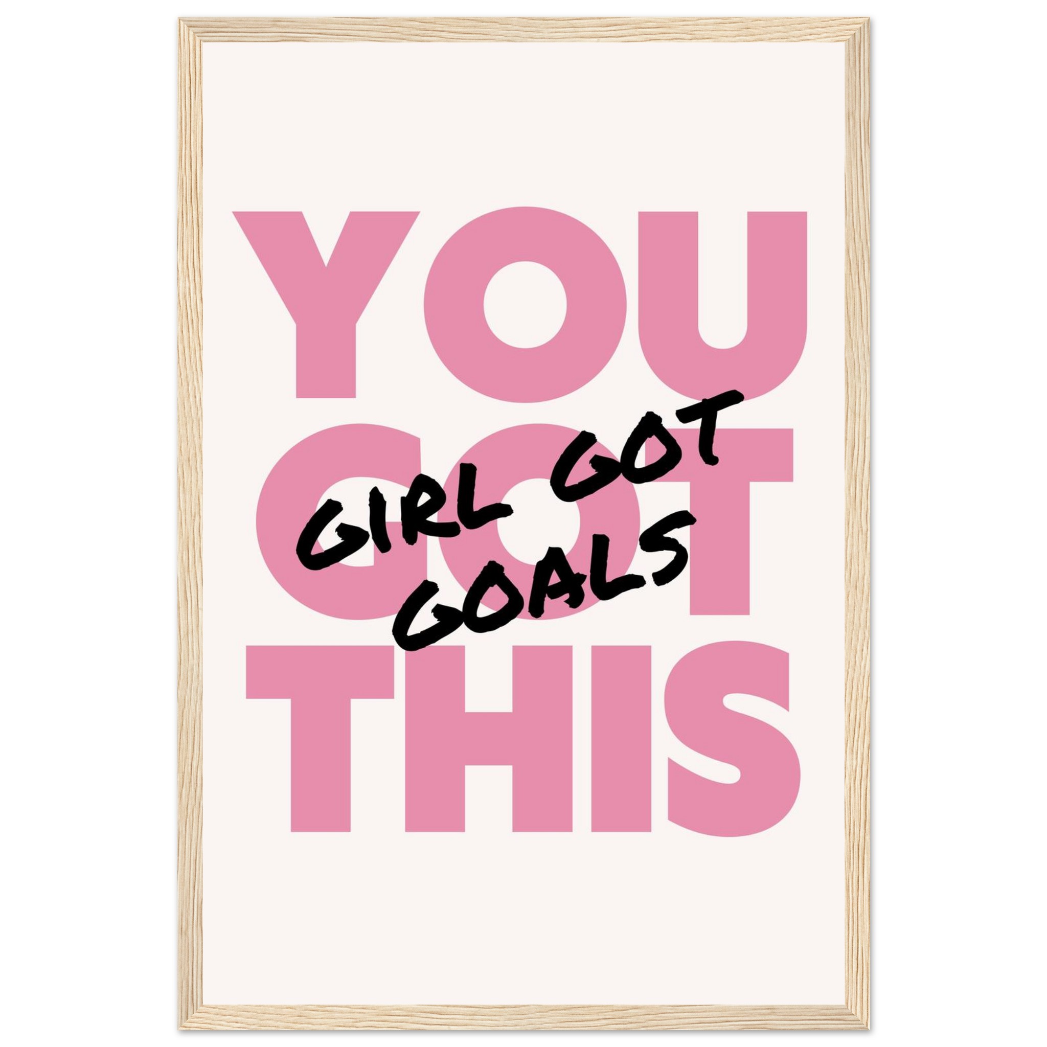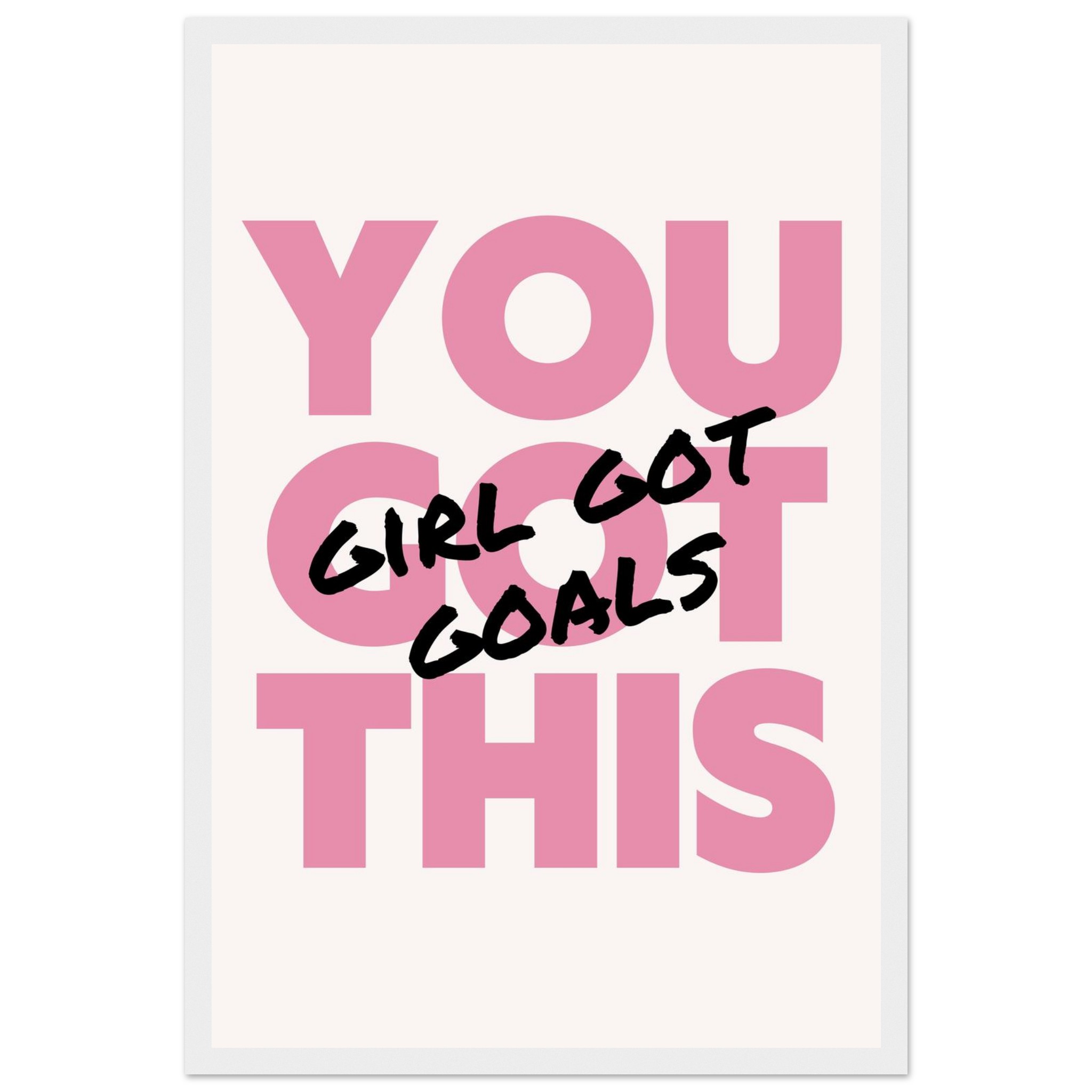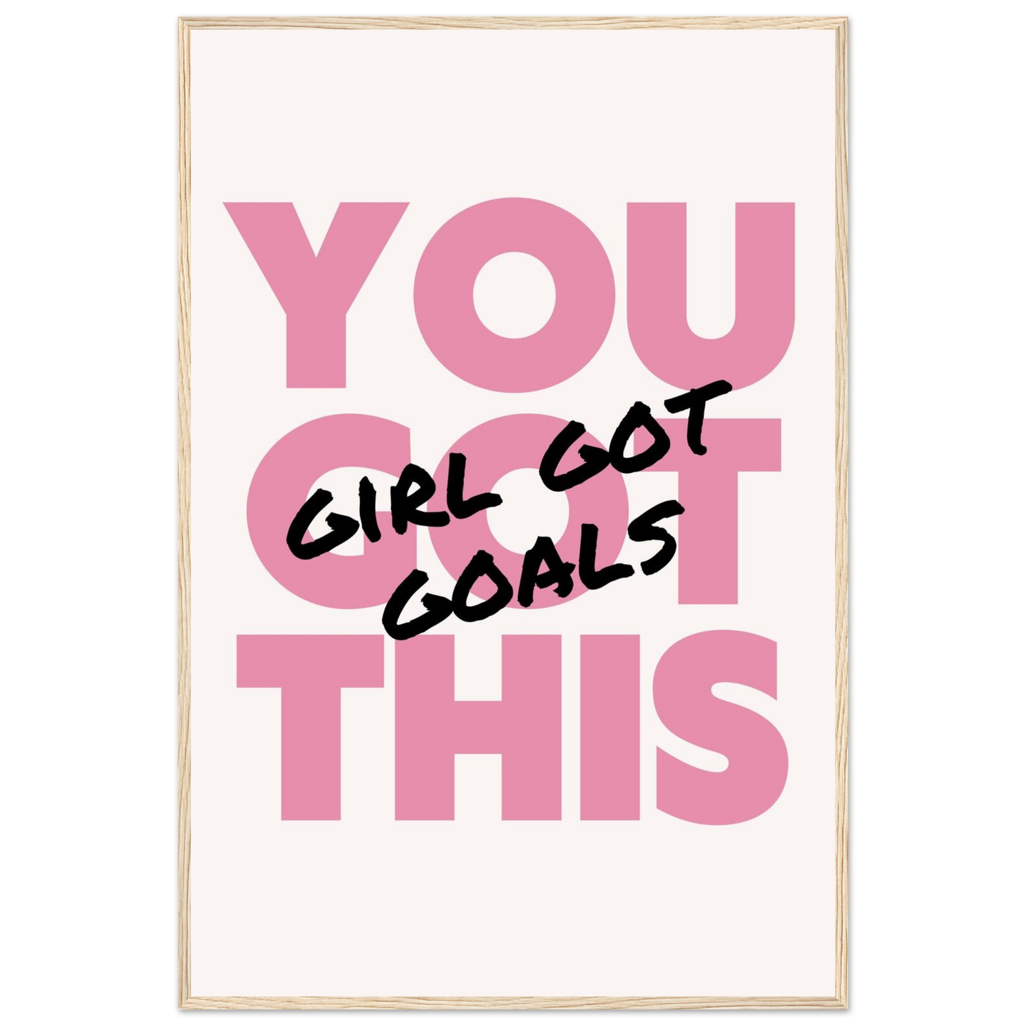 Infuse your space with empowering vibes and a chic aesthetic! Our “You Got This, Girl Got Goals” framed poster is a daily dose of motivation, perfect for your office, bedroom, or any corner that needs a boost of confidence. The bold pink and black lettering creates a striking statement, making it an ideal gift for the driven woman in your life or a powerful treat for yourself.