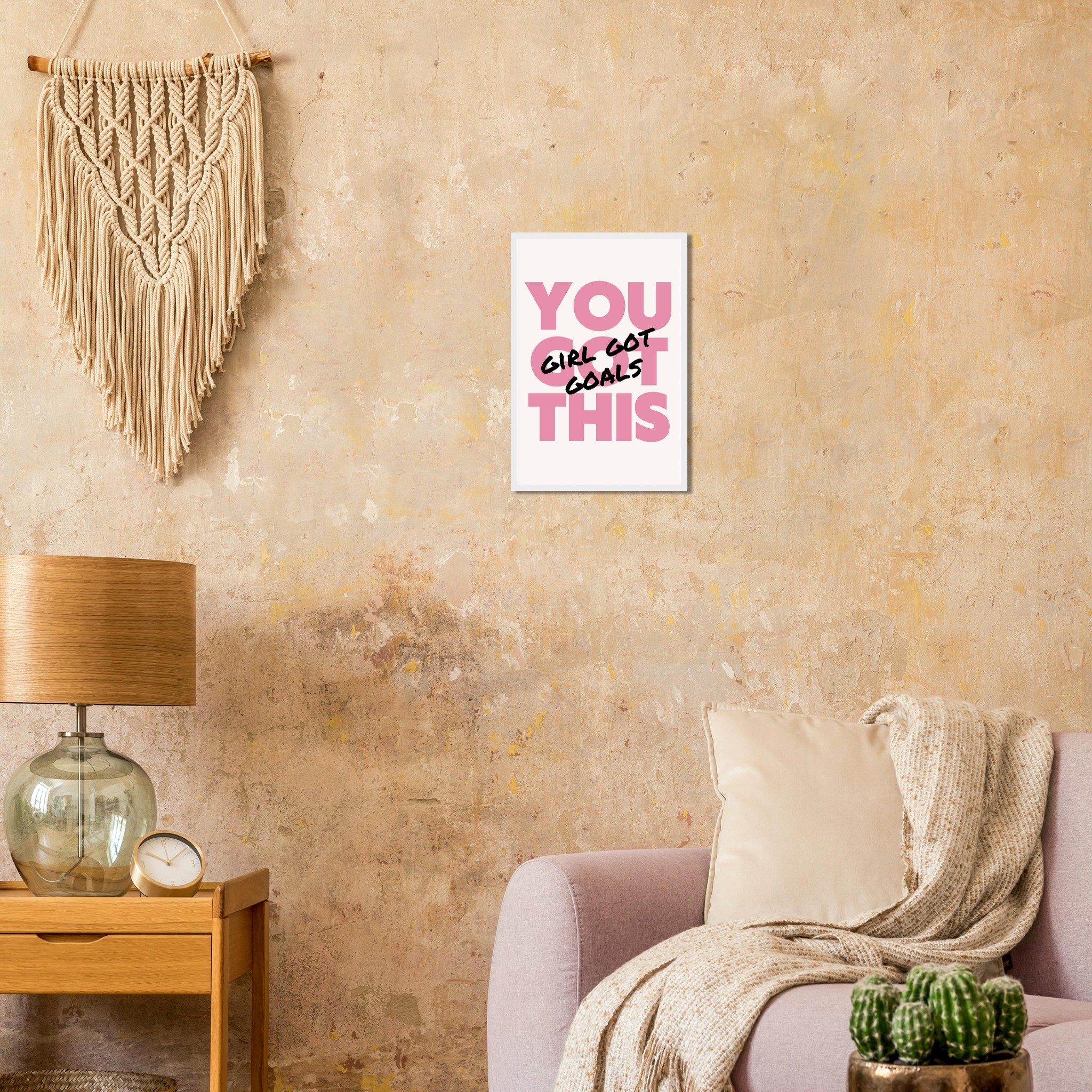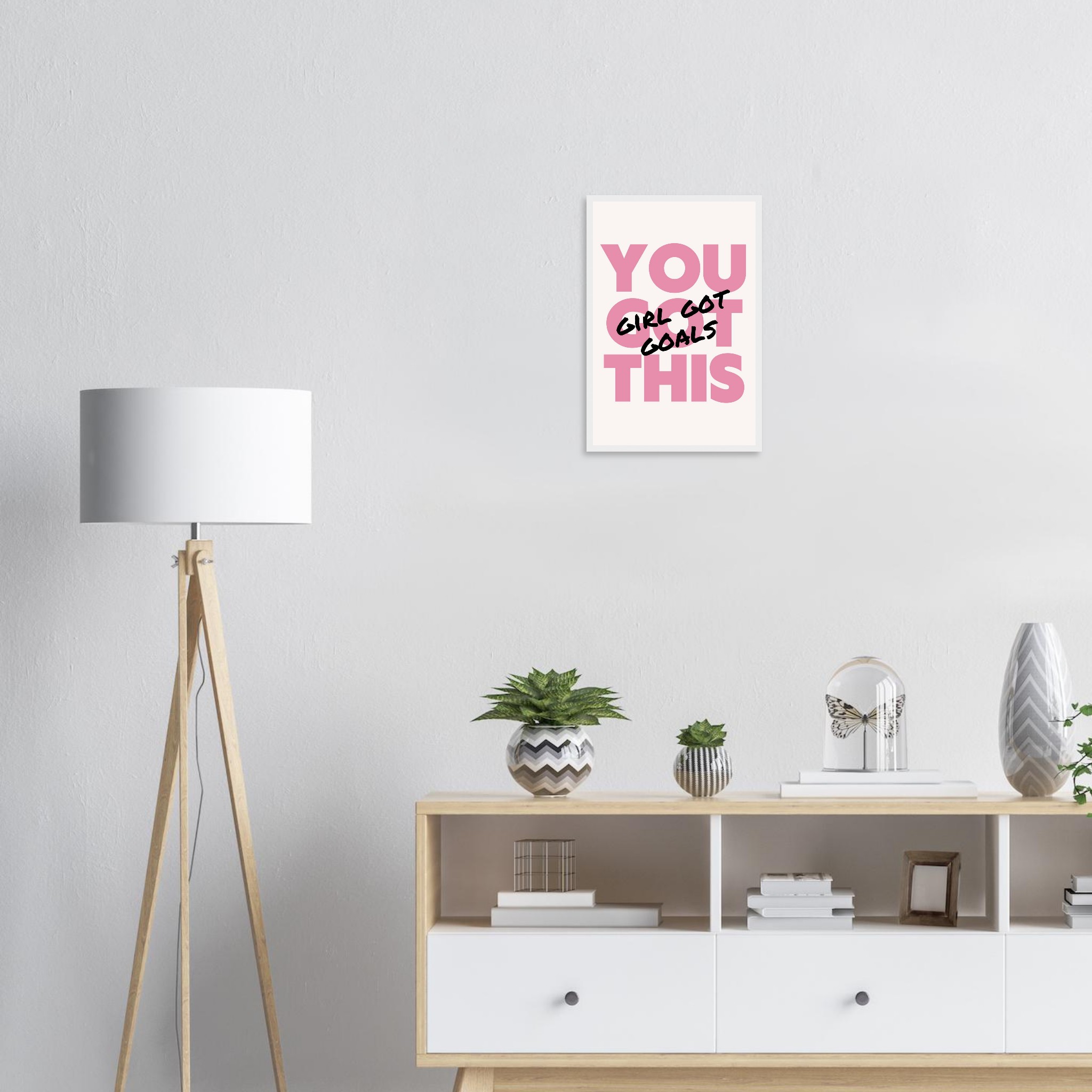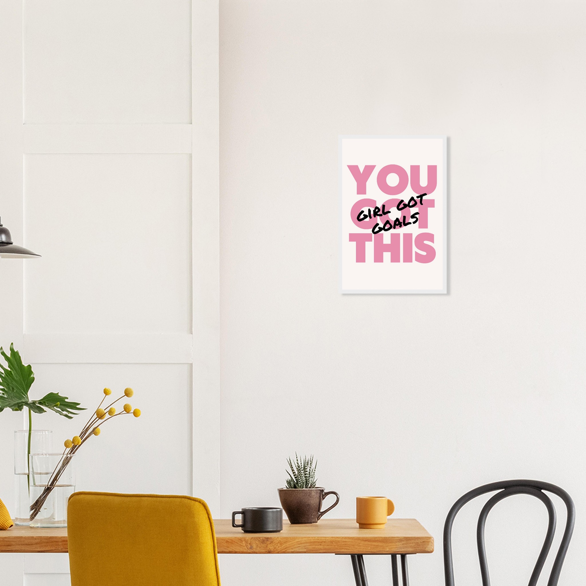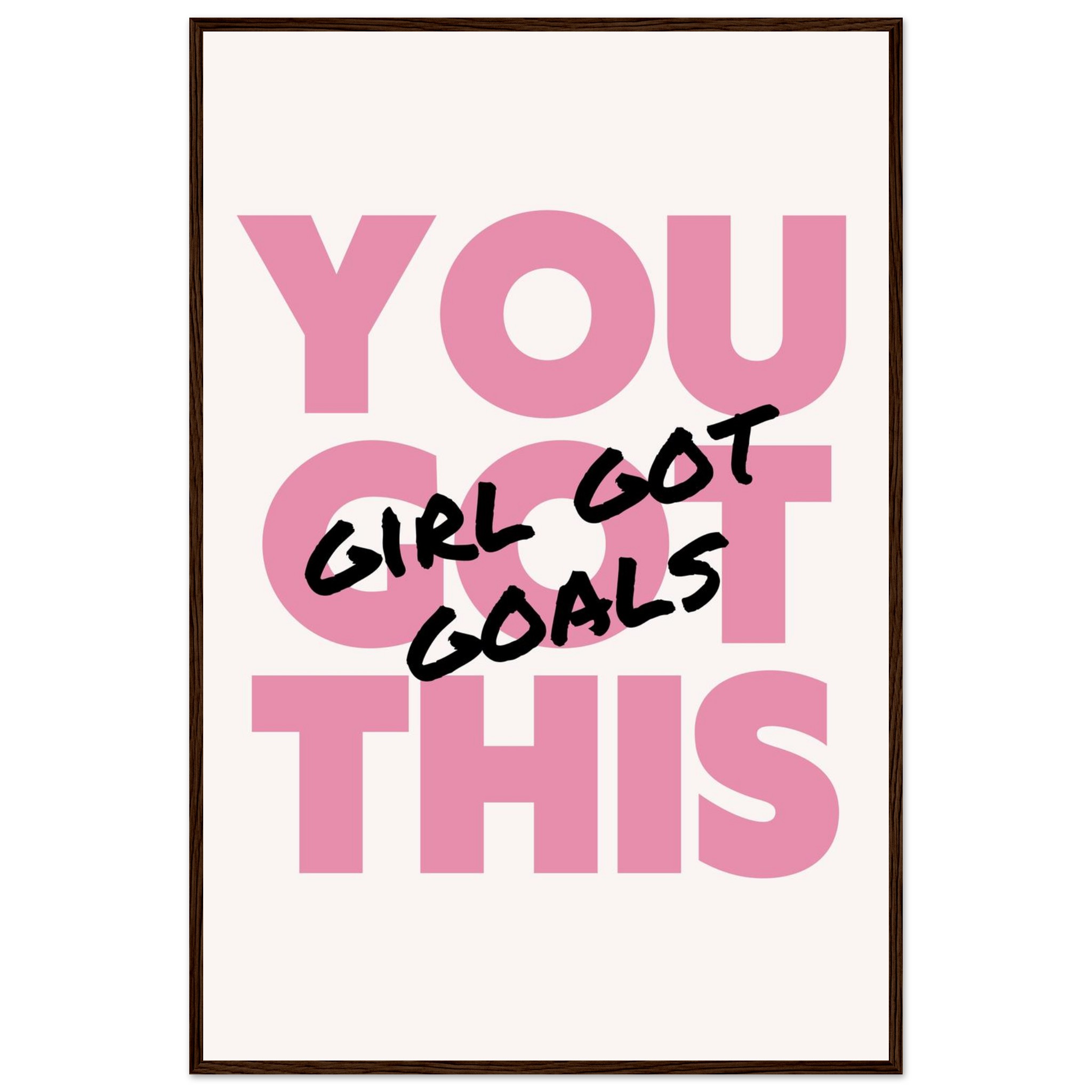 Infuse your space with empowering vibes and a chic aesthetic! Our “You Got This, Girl Got Goals” framed poster is a daily dose of motivation, perfect for your office, bedroom, or any corner that needs a boost of confidence. The bold pink and black lettering creates a striking statement, making it an ideal gift for the driven woman in your life or a powerful treat for yourself.