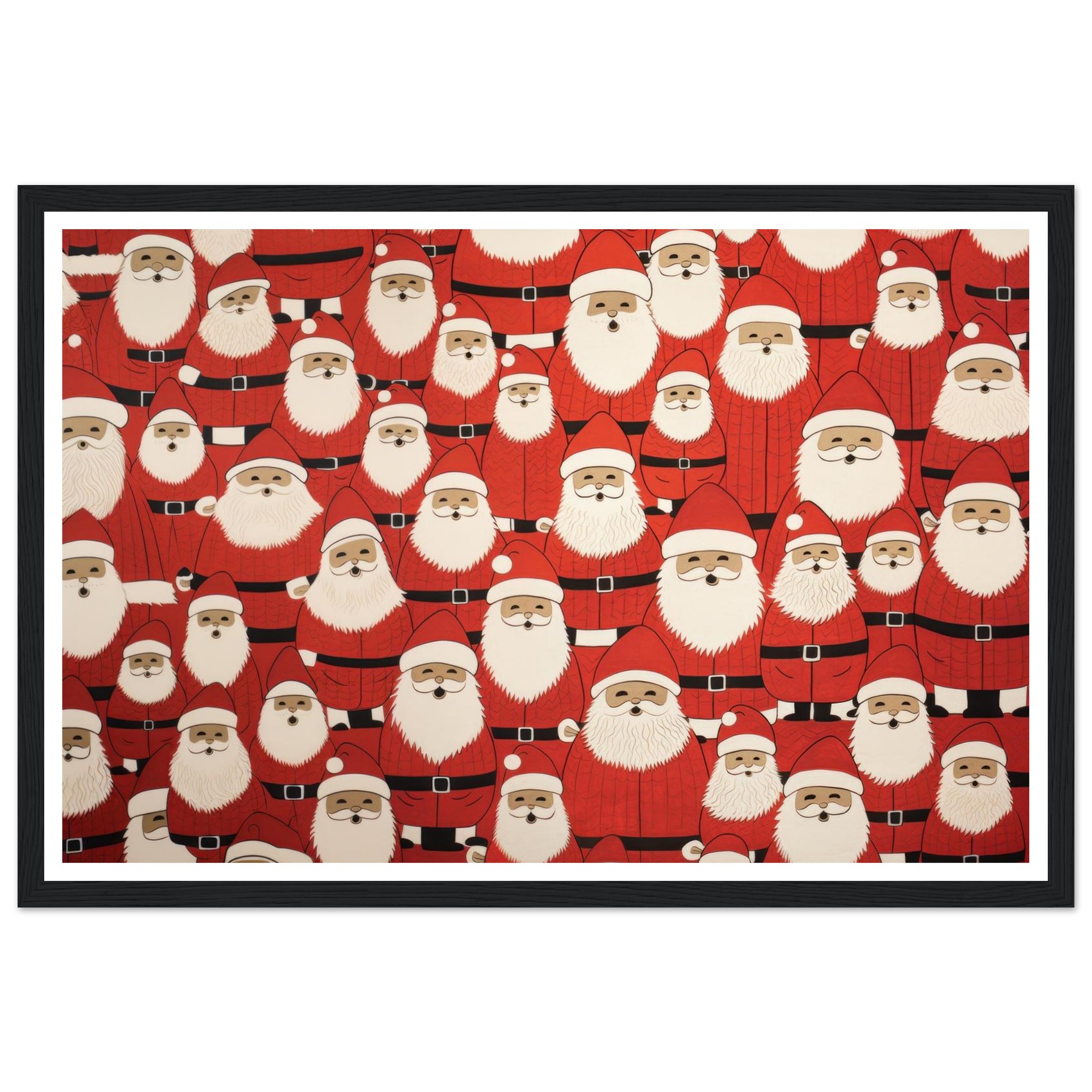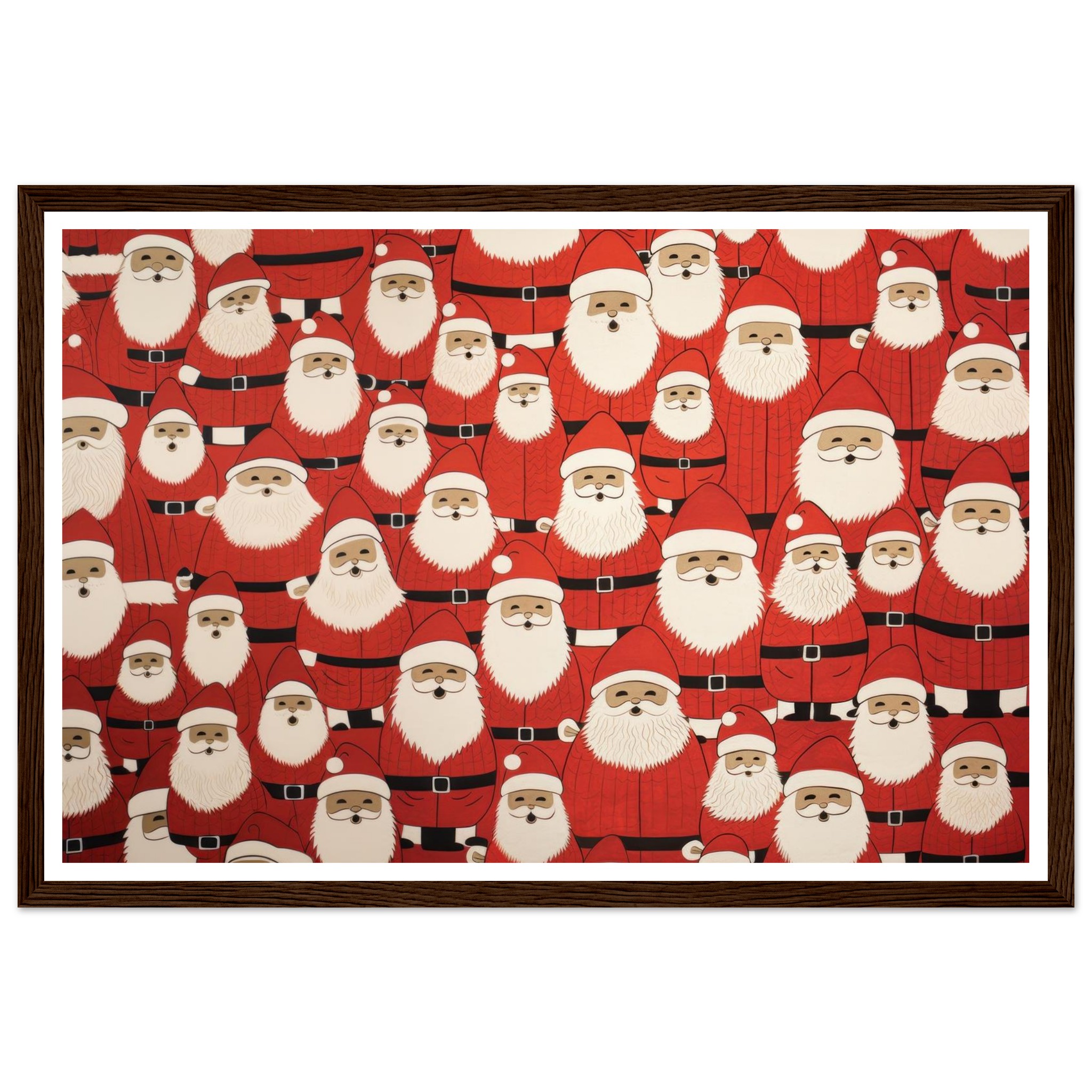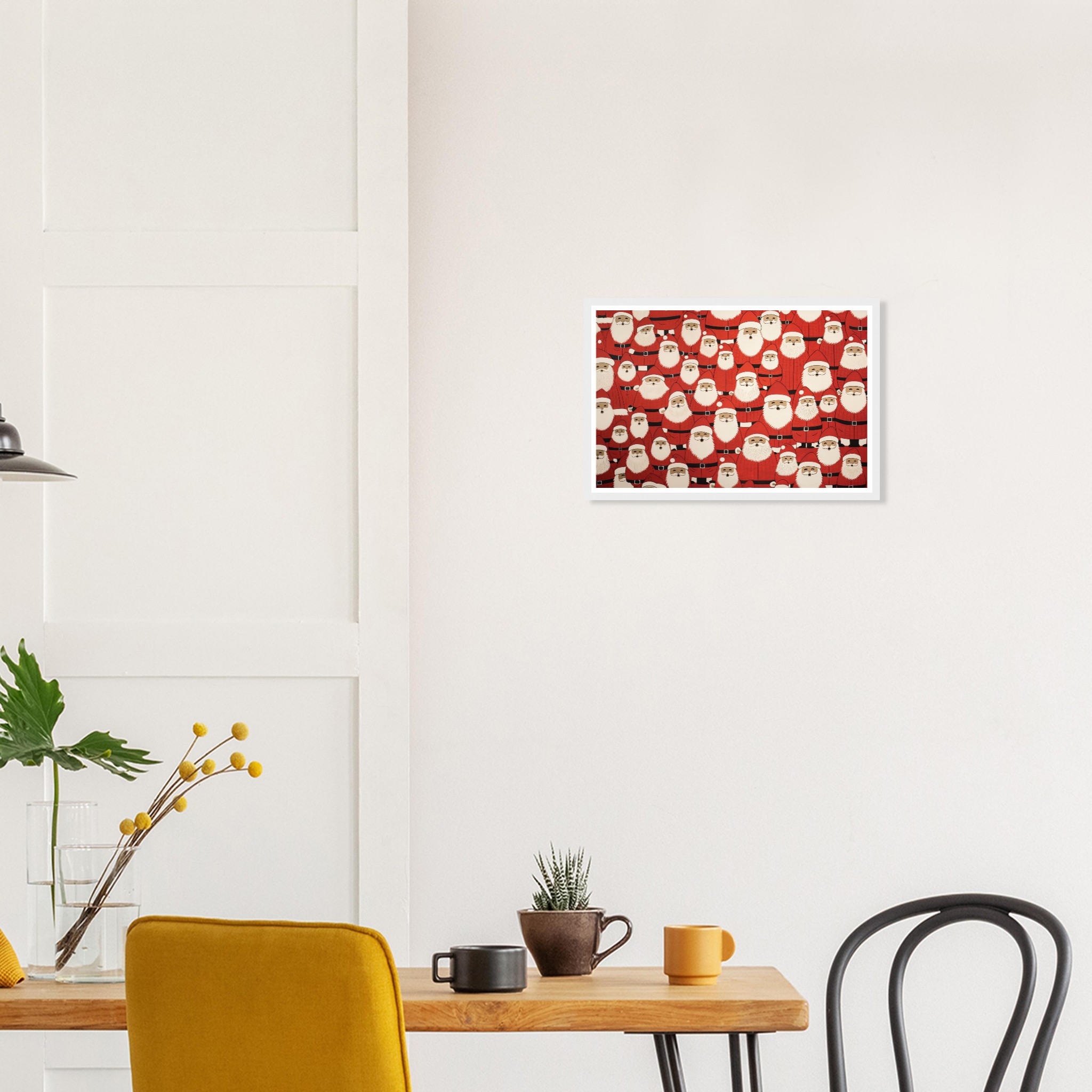 Bring festive cheer and vintage charm to your home with our Jolly Retro Santa Claus Framed Poster. This delightful artwork captures the heartwarming spirit of the holidays with its playful pattern of classic Santas, perfect for adding a touch of nostalgic joy to any room. Printed on heavyweight white matte paper, its smooth, luxurious finish ensures every detail of these merry Santas shines through, designed to stand the test of time.