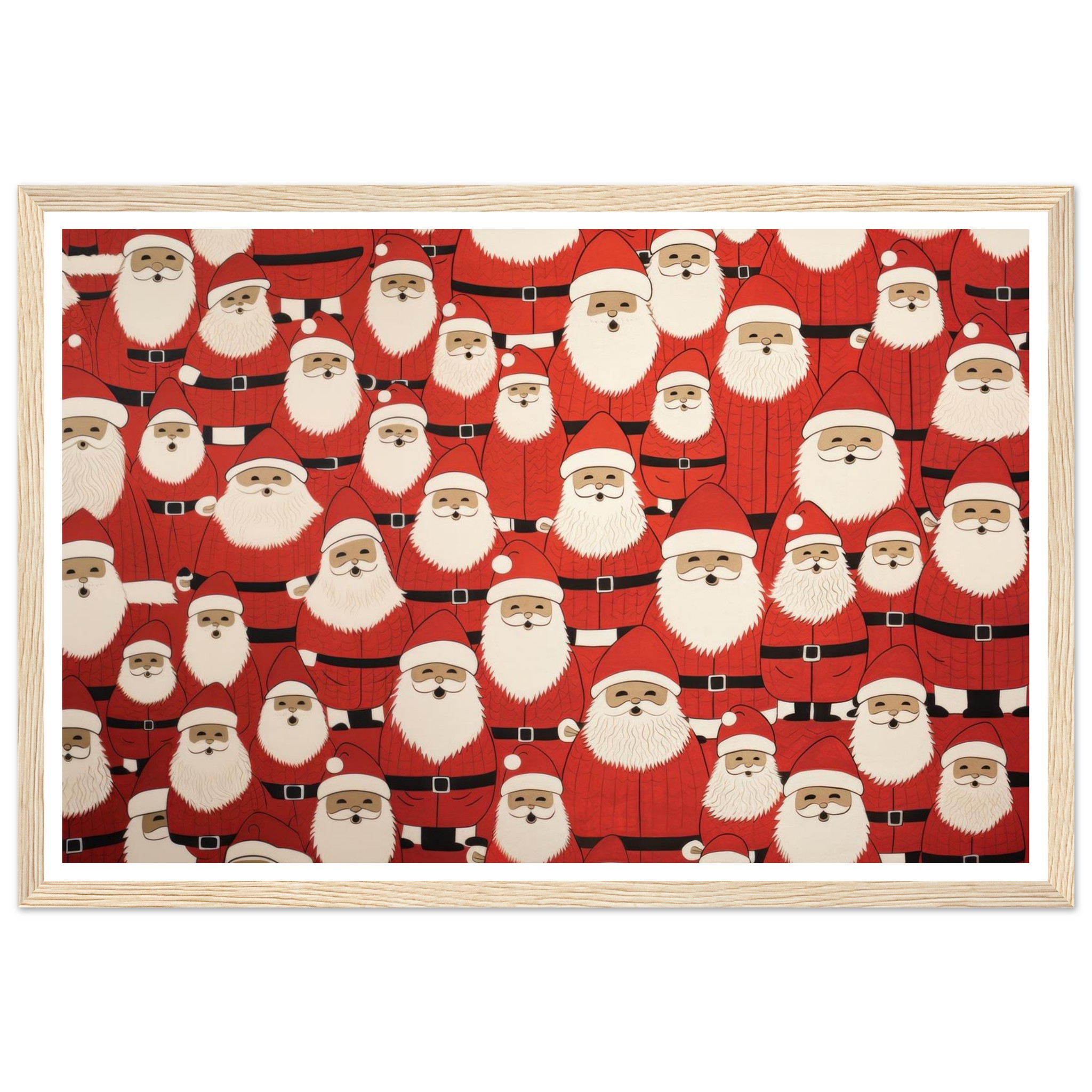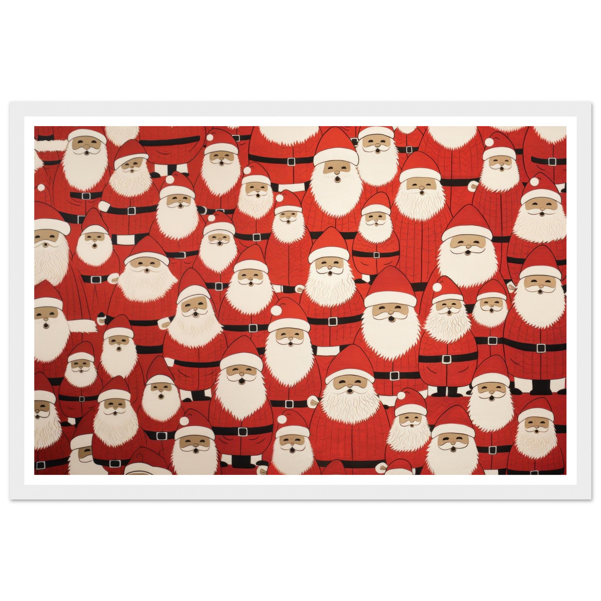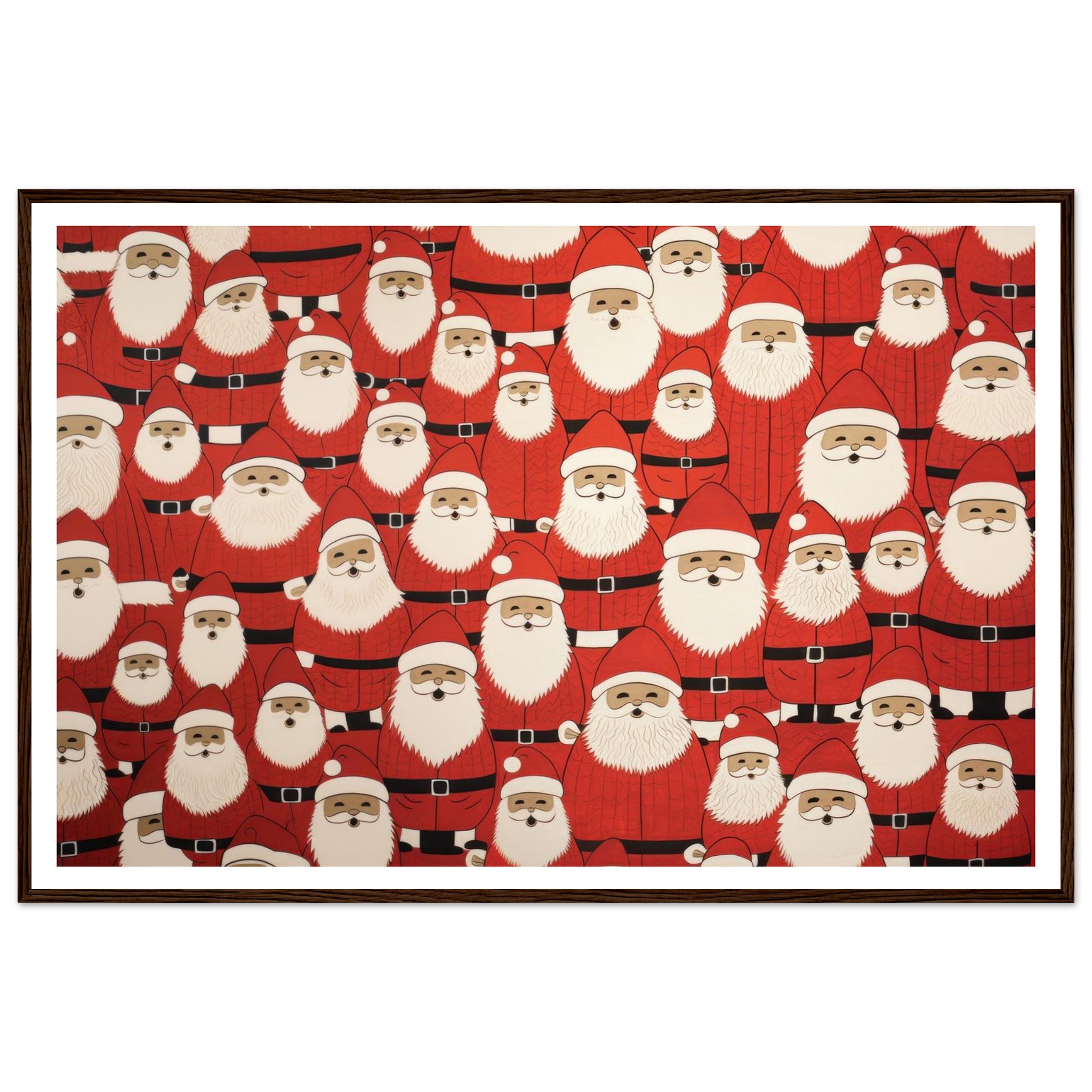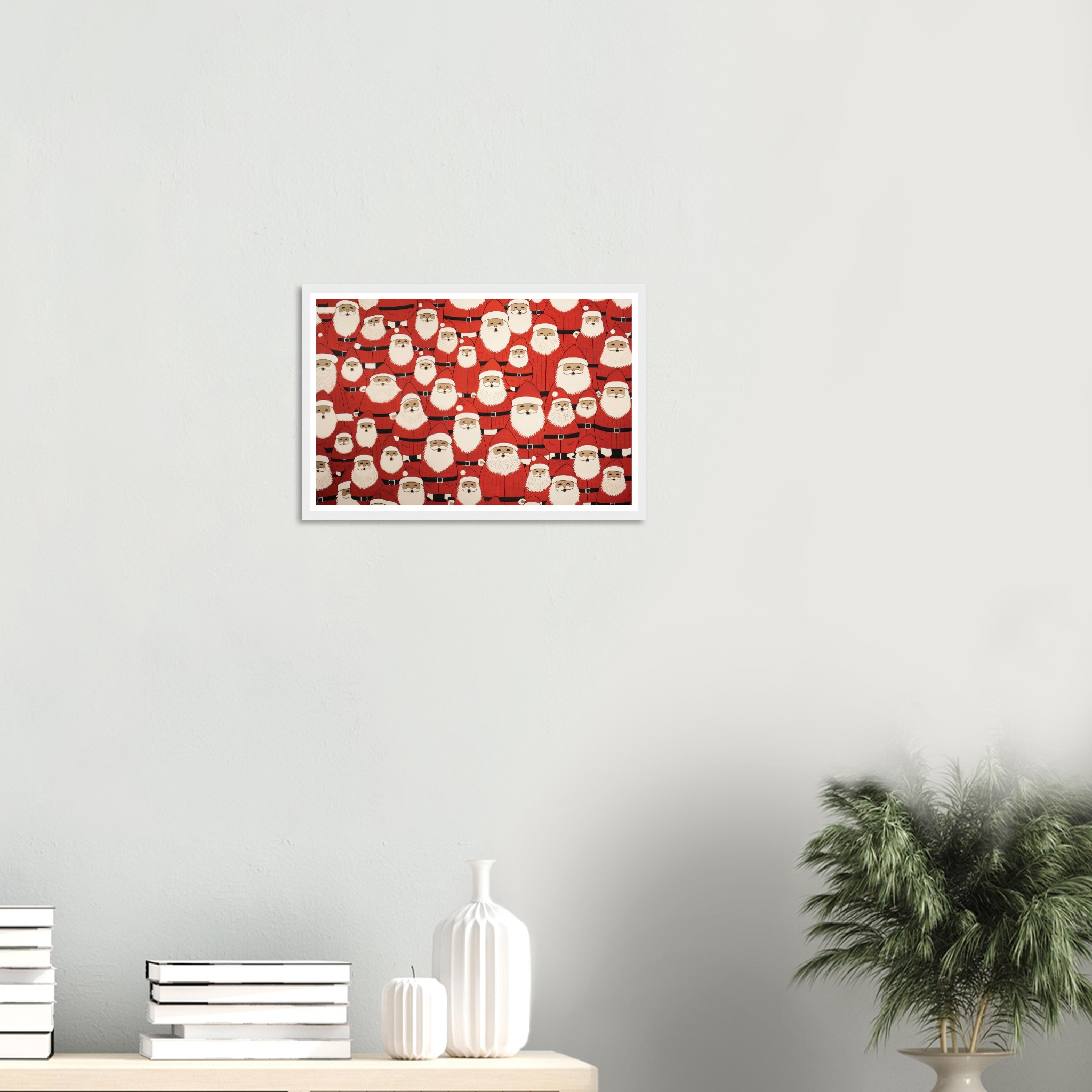 Bring festive cheer and vintage charm to your home with our Jolly Retro Santa Claus Framed Poster. This delightful artwork captures the heartwarming spirit of the holidays with its playful pattern of classic Santas, perfect for adding a touch of nostalgic joy to any room. Printed on heavyweight white matte paper, its smooth, luxurious finish ensures every detail of these merry Santas shines through, designed to stand the test of time.