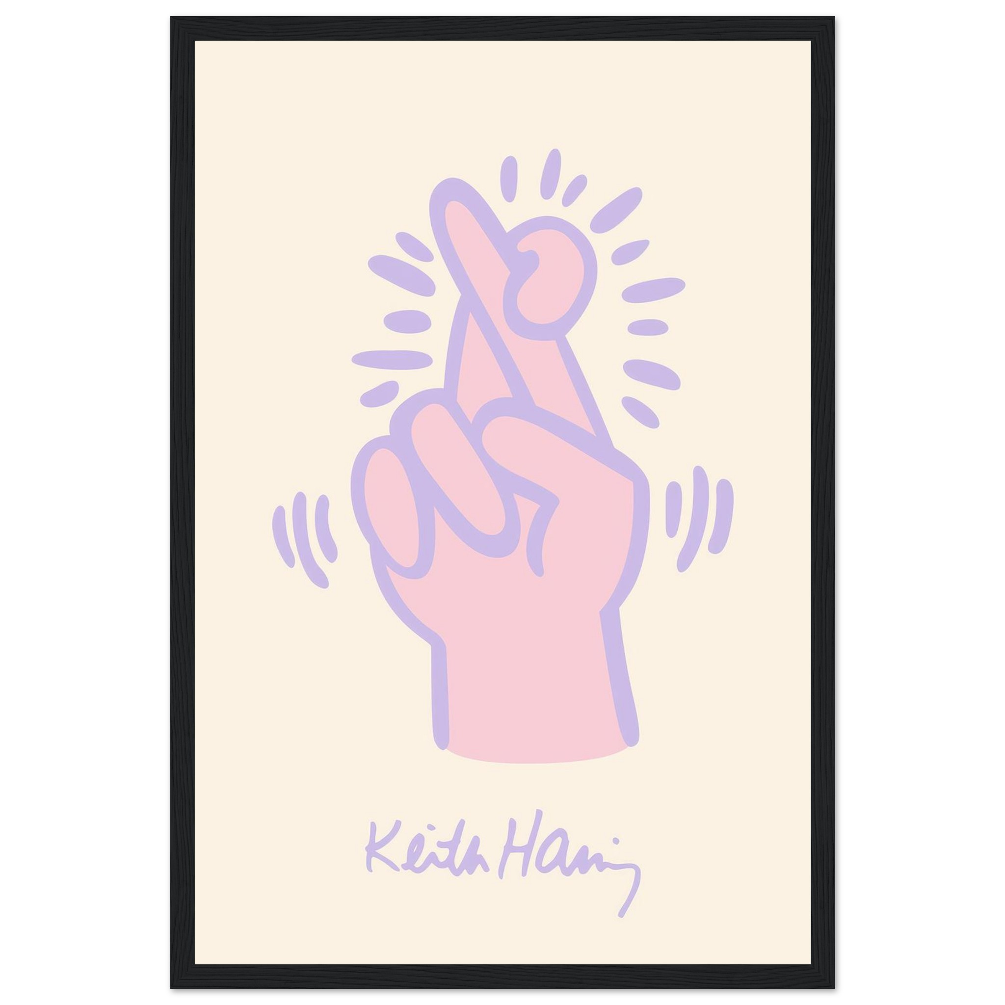 Keith Haring Inspired K-Pop Heart Hand Gesture Art Print – Framed Matte Poster