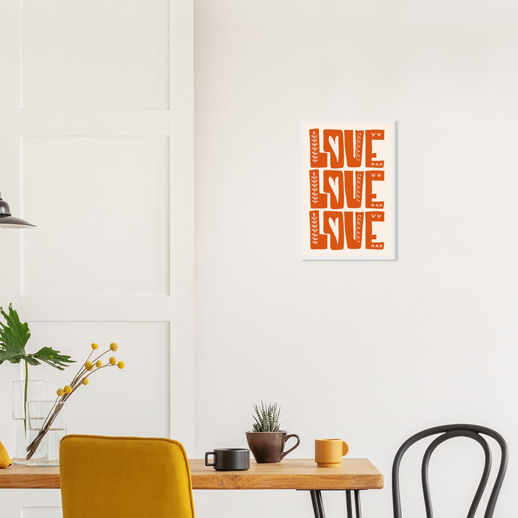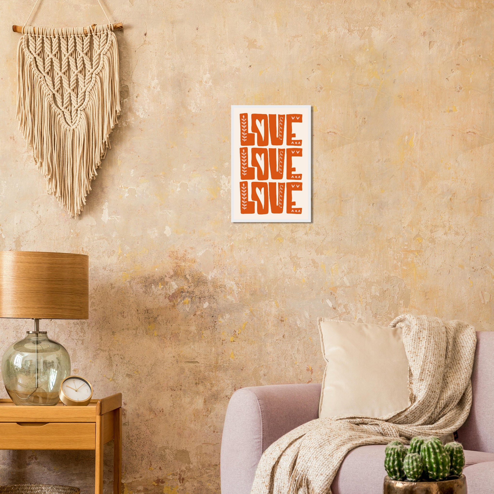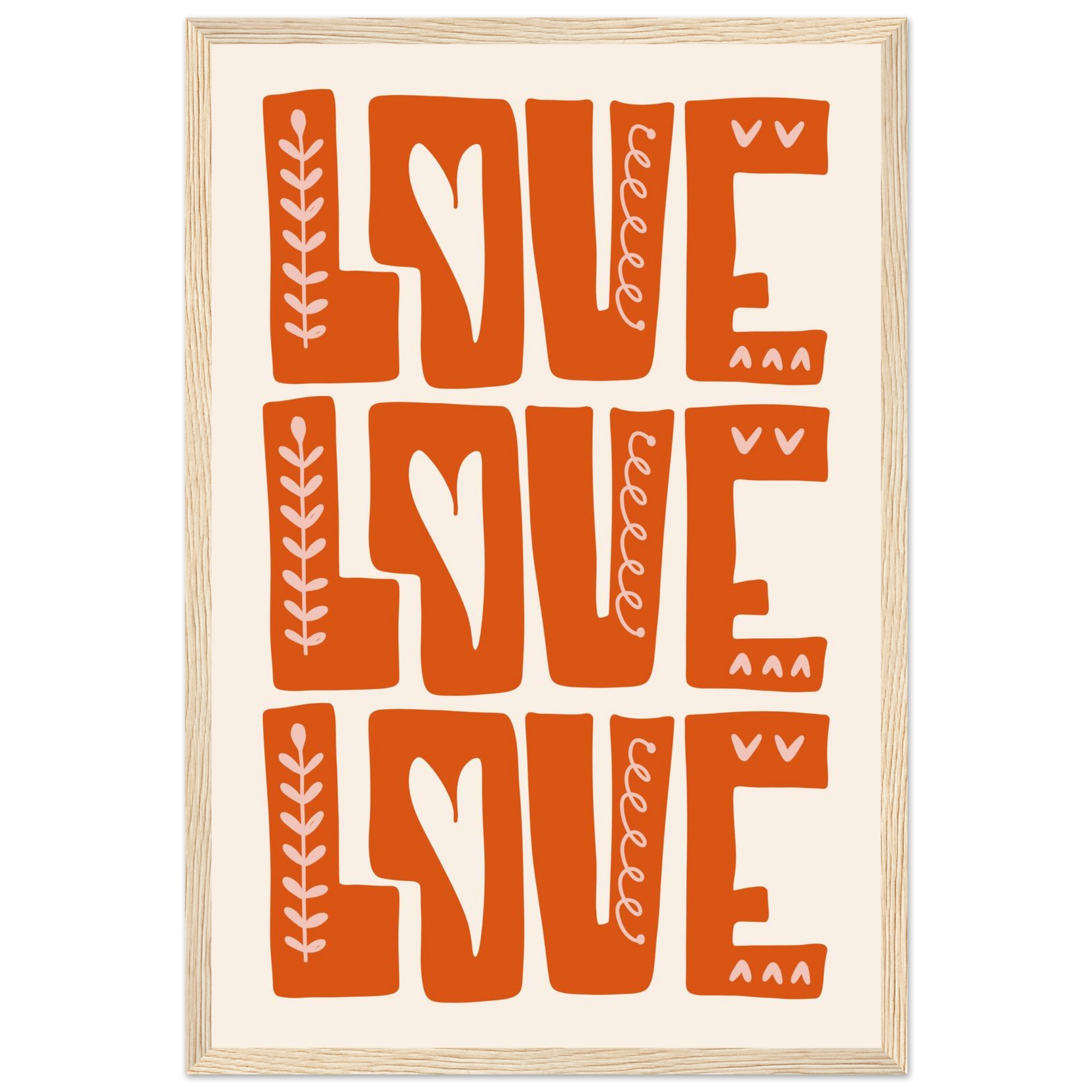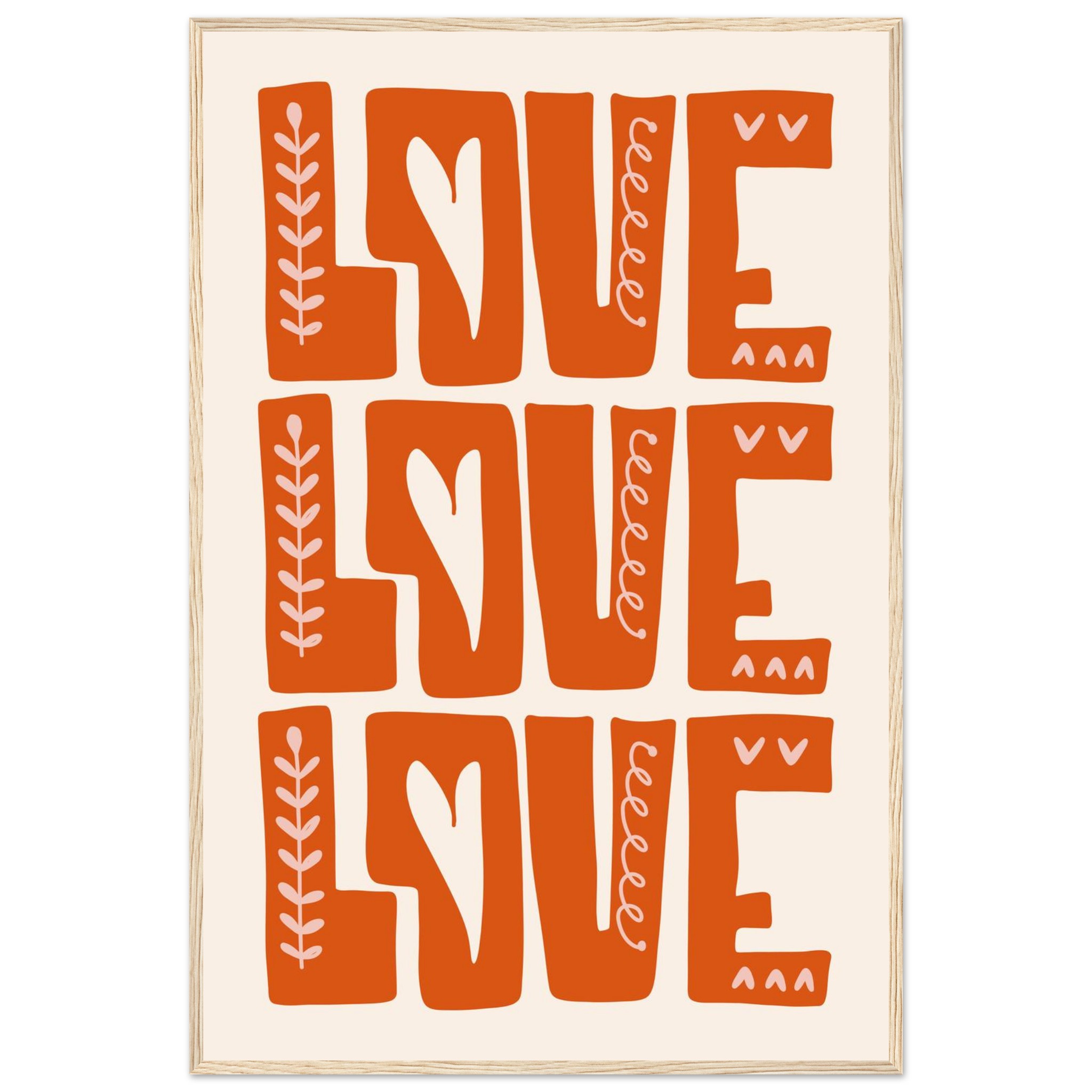 Infuse your space with a heartfelt, boho-chic vibe with our ‘Love Repetition’ framed poster. Featuring a captivating hand-drawn aesthetic and a warm, inviting color palette of burnt orange and soft cream, this piece brings a touch of organic charm and positivity to any room. It’s more than just decor; it’s a statement of love, beautifully crafted to inspire warmth and connection.