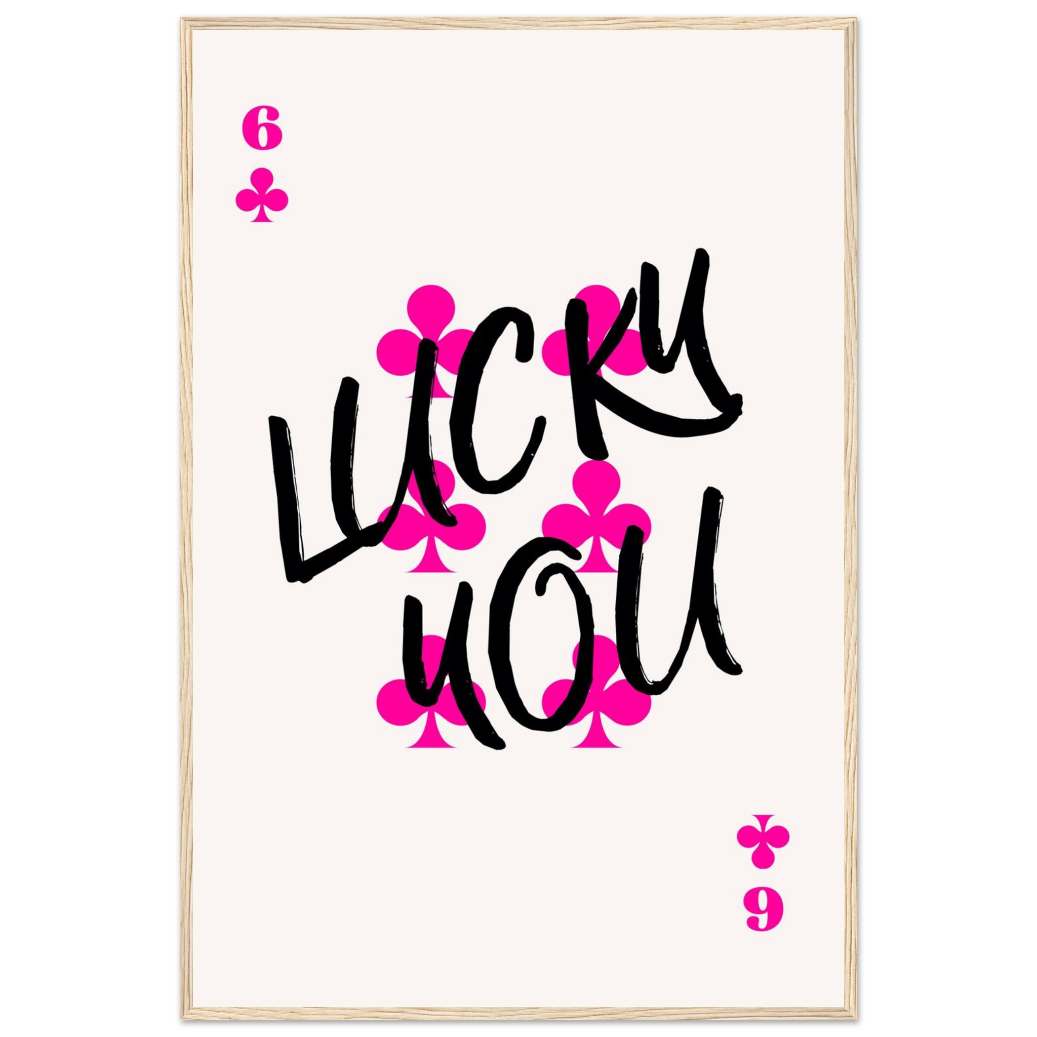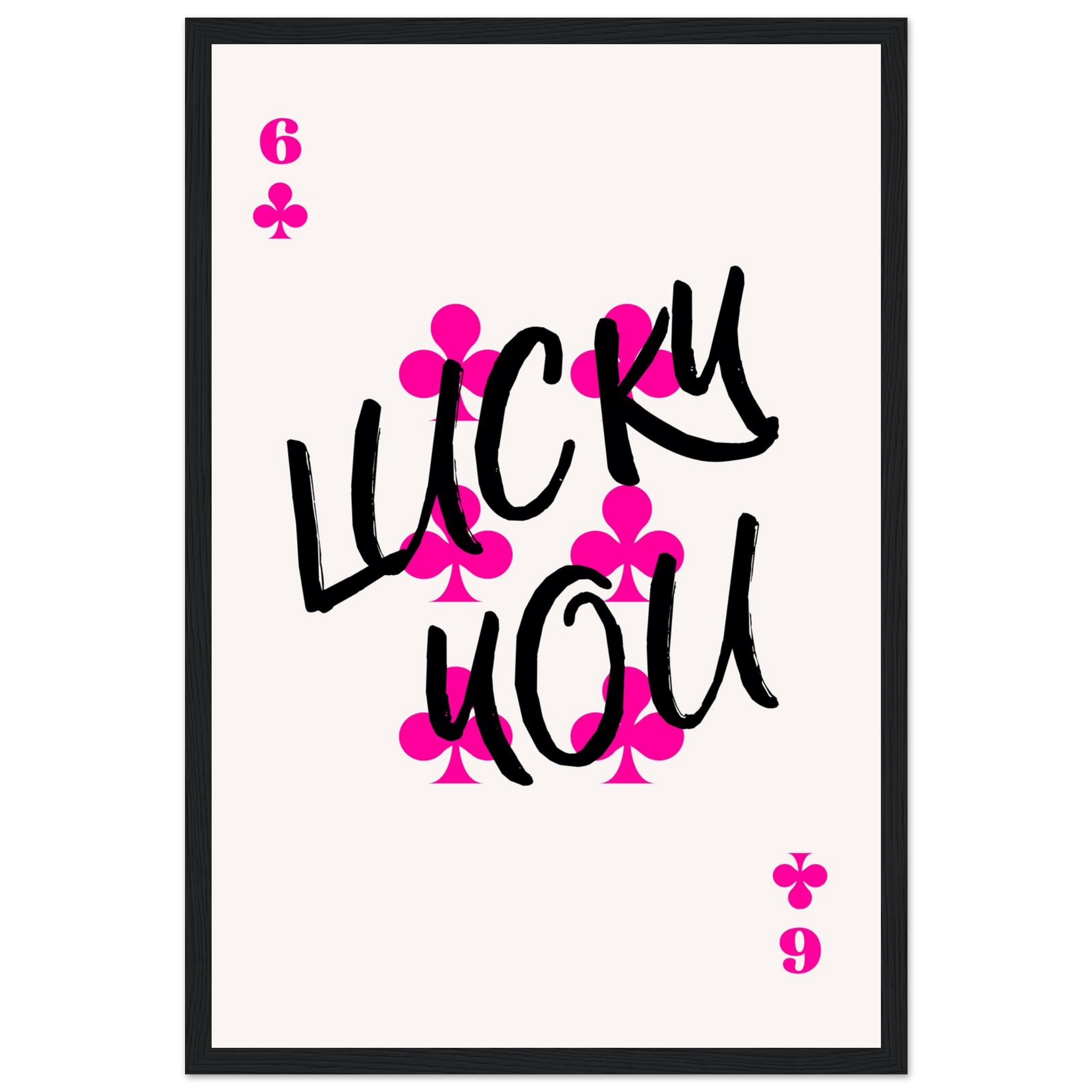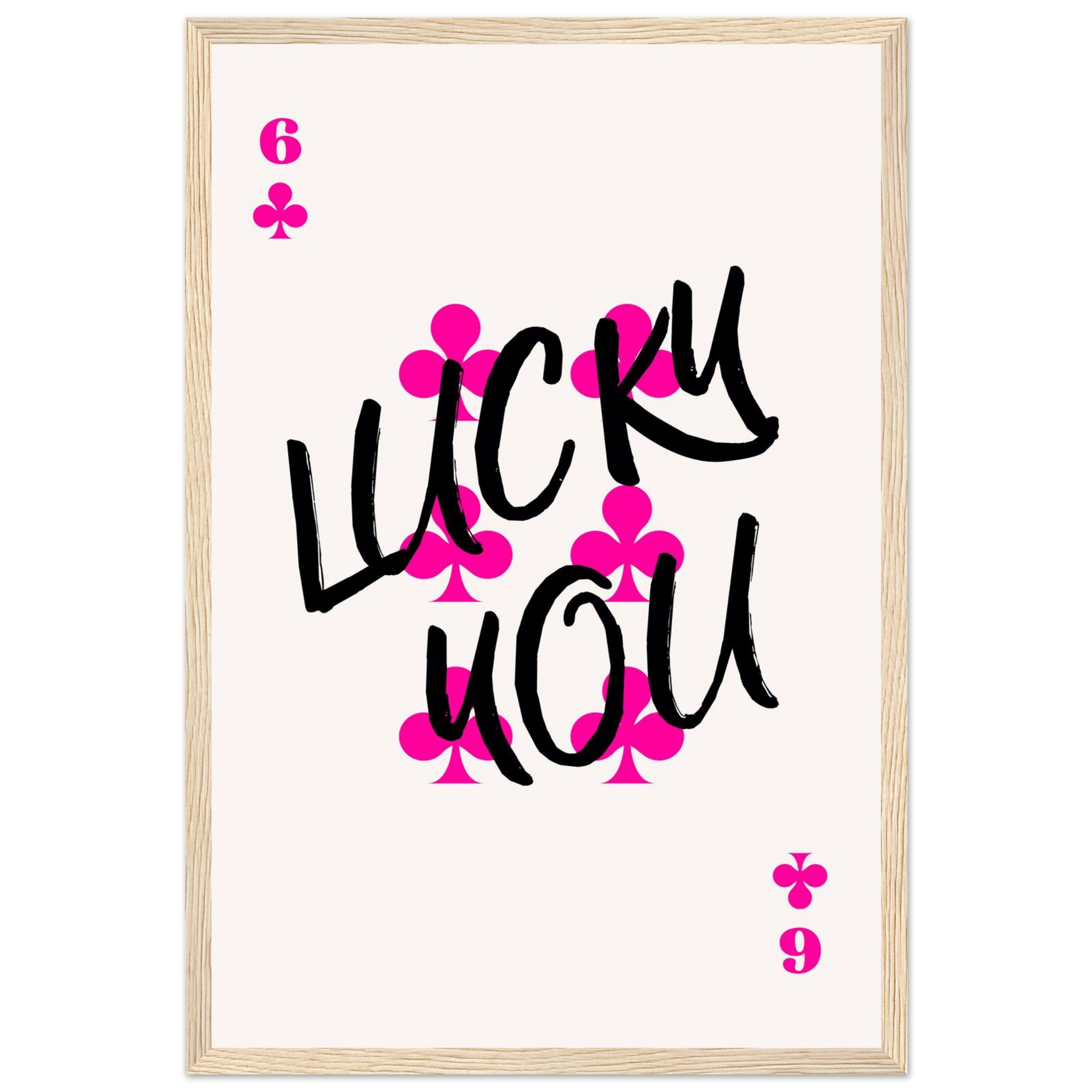 Be the first to review “Lucky You Poker Card Art Print | Vibrant Pink & Black Typography Poster with Wooden Frame”