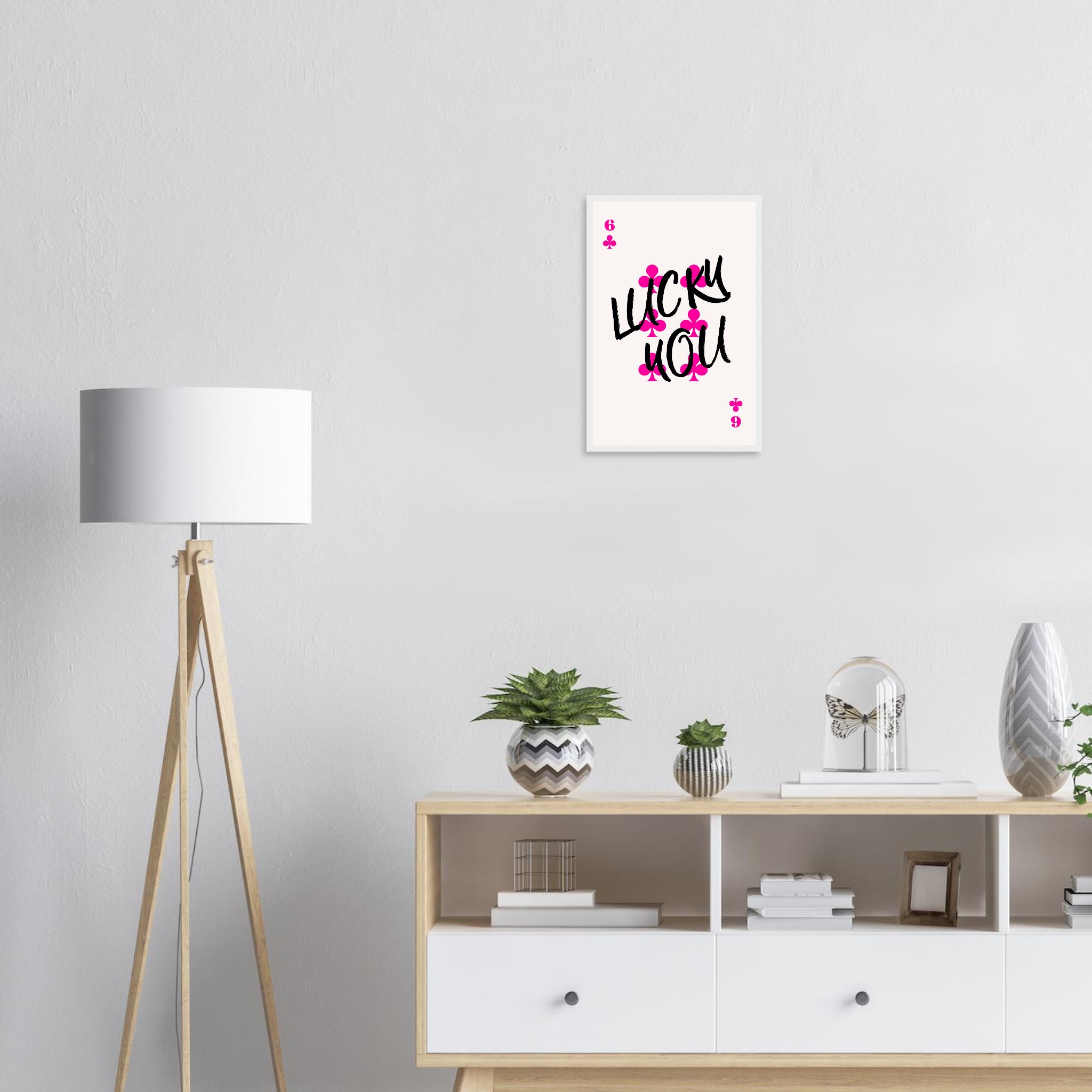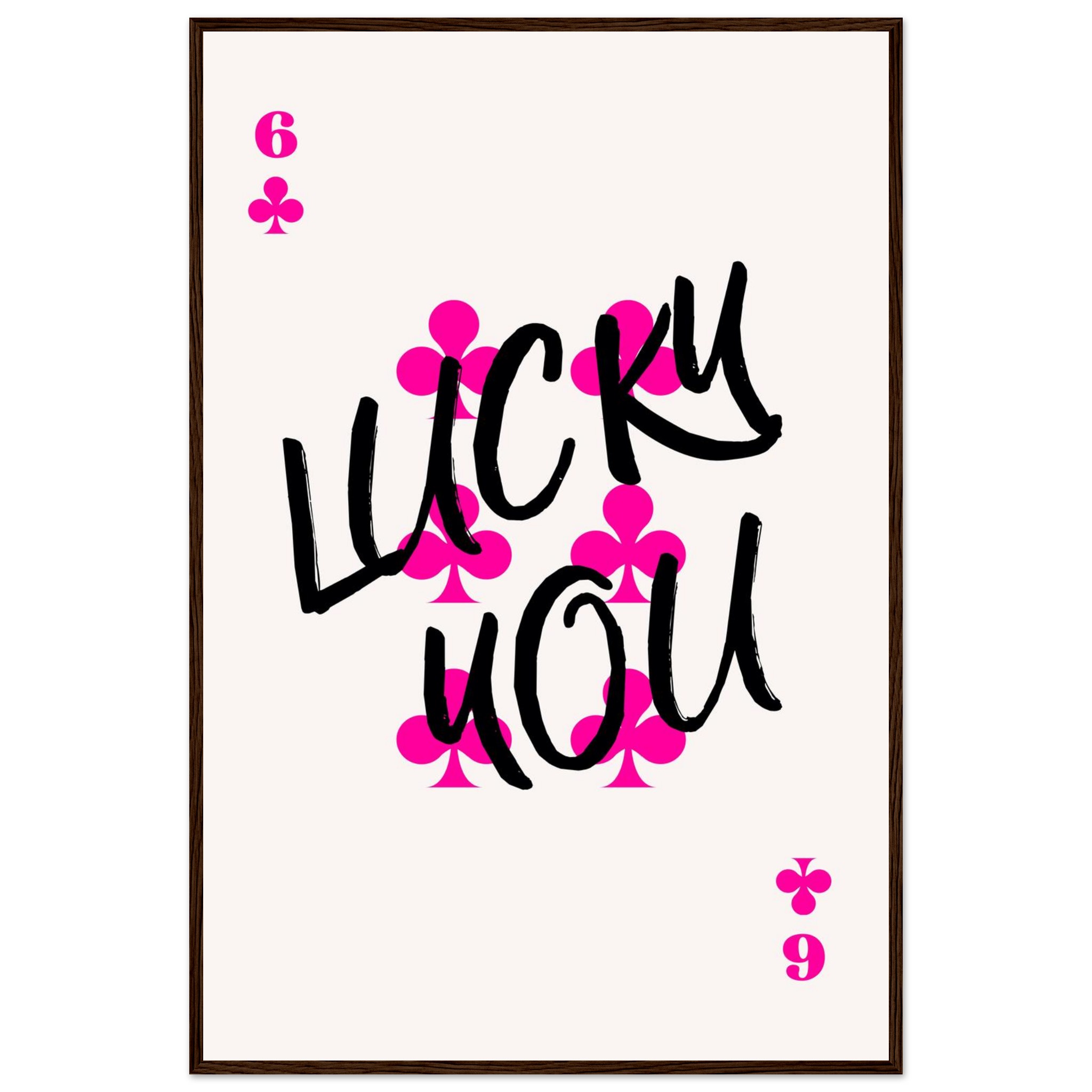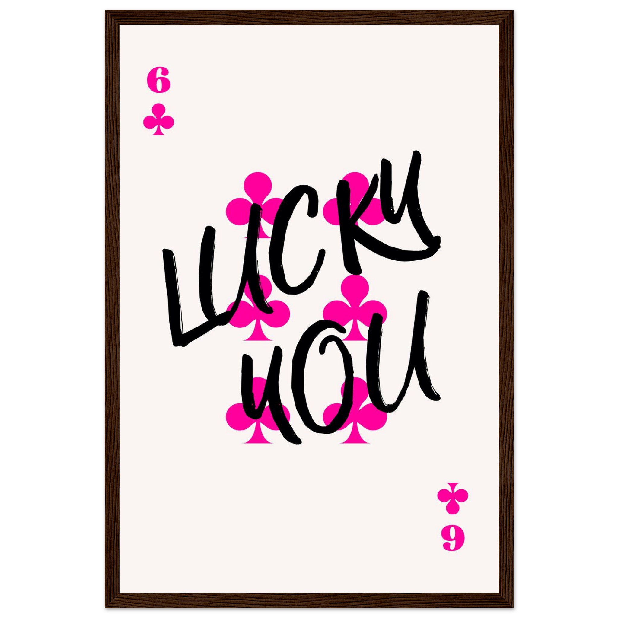 Be the first to review “Lucky You Poker Card Art Print | Vibrant Pink & Black Typography Poster with Wooden Frame”
