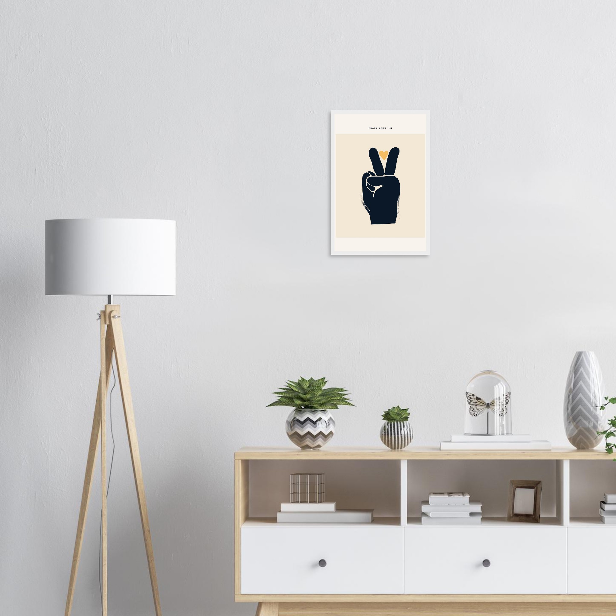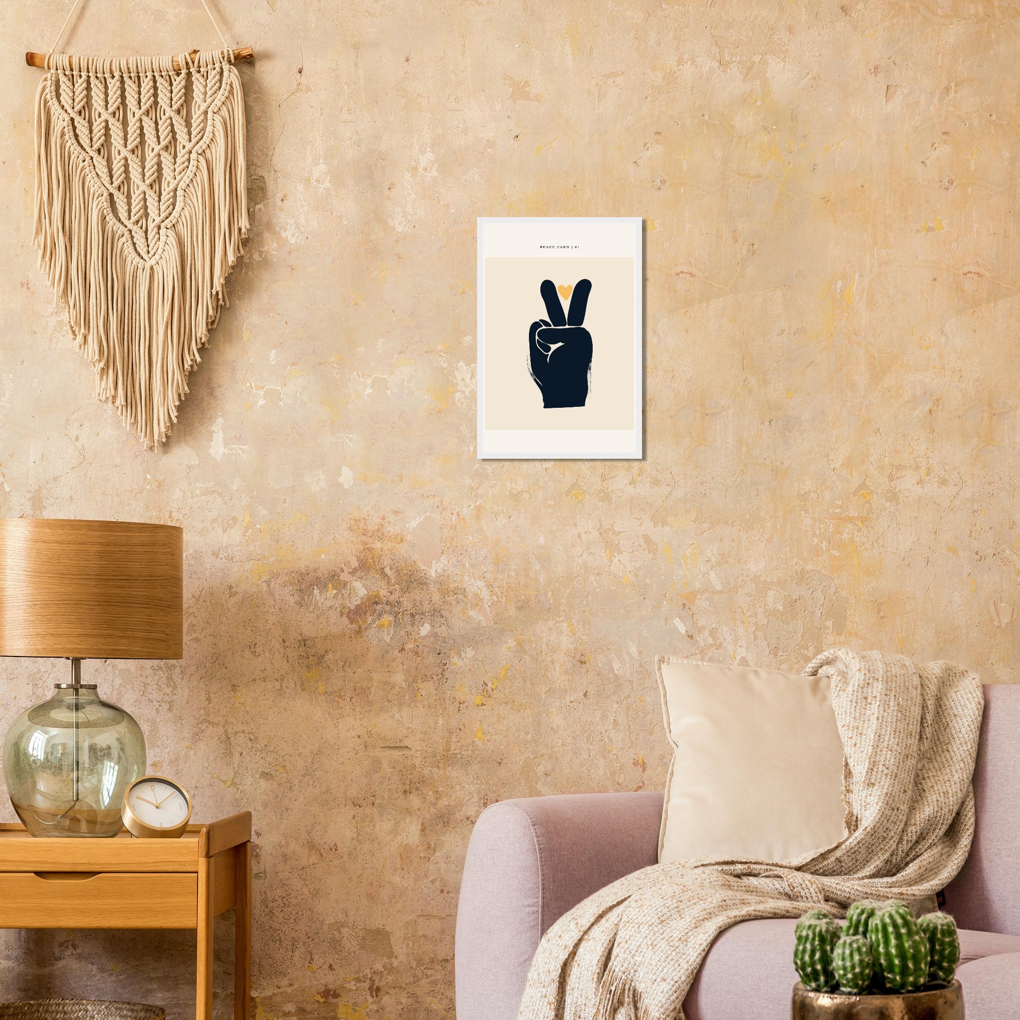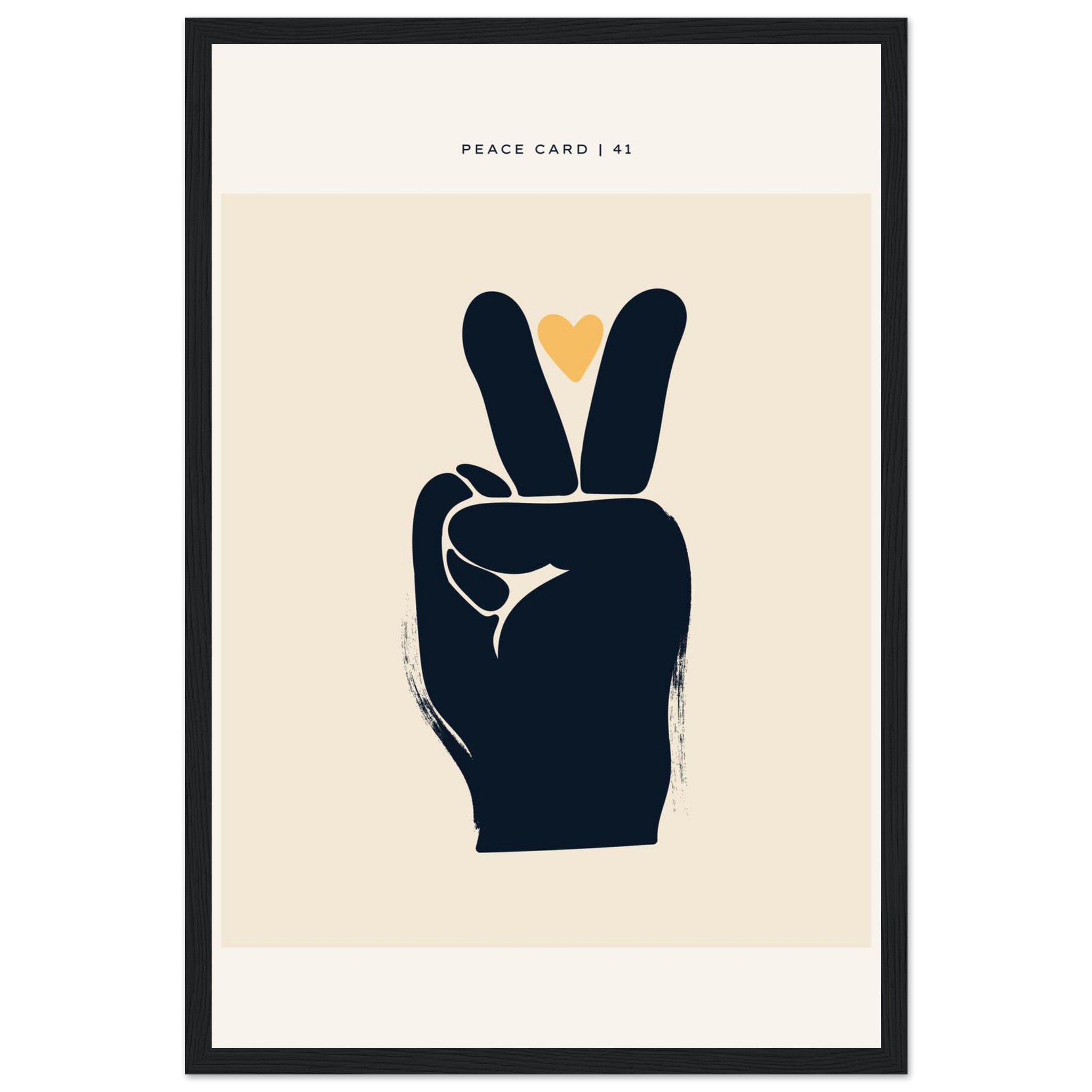 Infuse your space with a message of peace and love with this striking minimalist art print. Featuring a bold peace sign accented by a warm, golden heart, this piece adds a touch of modern serenity and positive vibes to any room. Its clean lines and warm, inviting palette make it a versatile addition to your home decor, perfect for creating a calm and inspiring atmosphere.