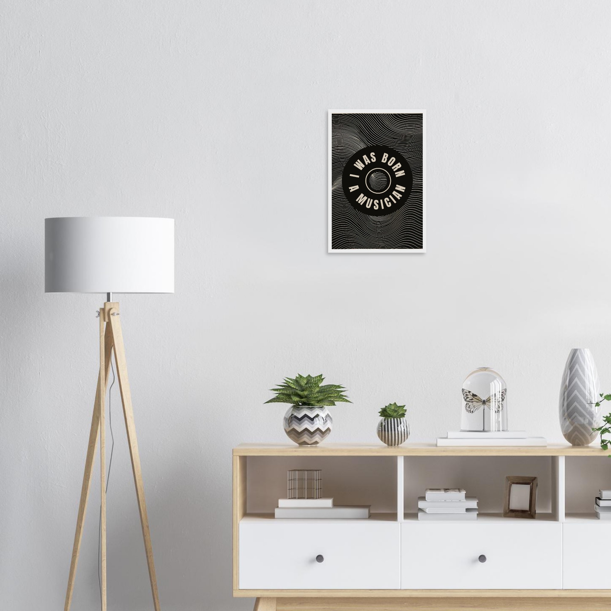 Unleash your inner rhythm with this striking framed poster, perfect for the musician or music lover in your life. Featuring bold typography declaring “I WAS BORN A MUSICIAN” encircled by mesmerizing, rhythmic waves, this piece captures the essence of sound and passion. Its high-contrast black and white design makes a powerful statement, adding a sophisticated and artistic touch to any room—from a home studio to a living space.