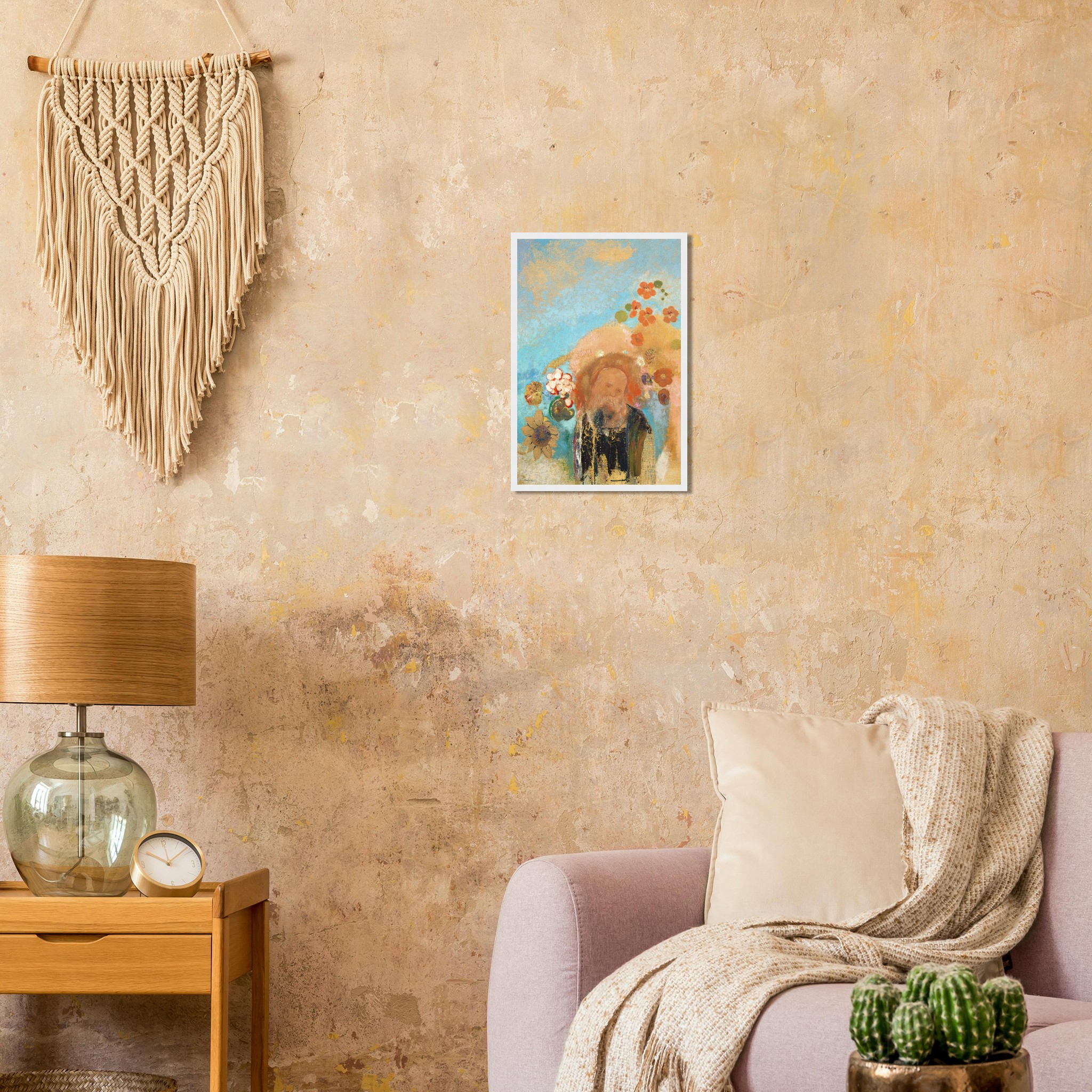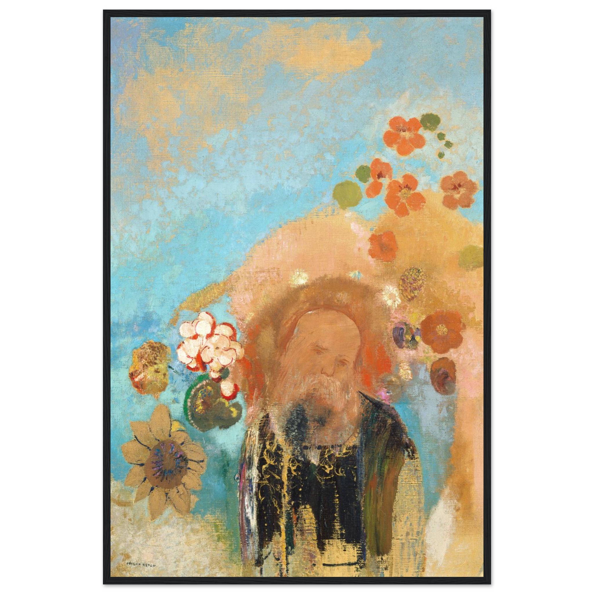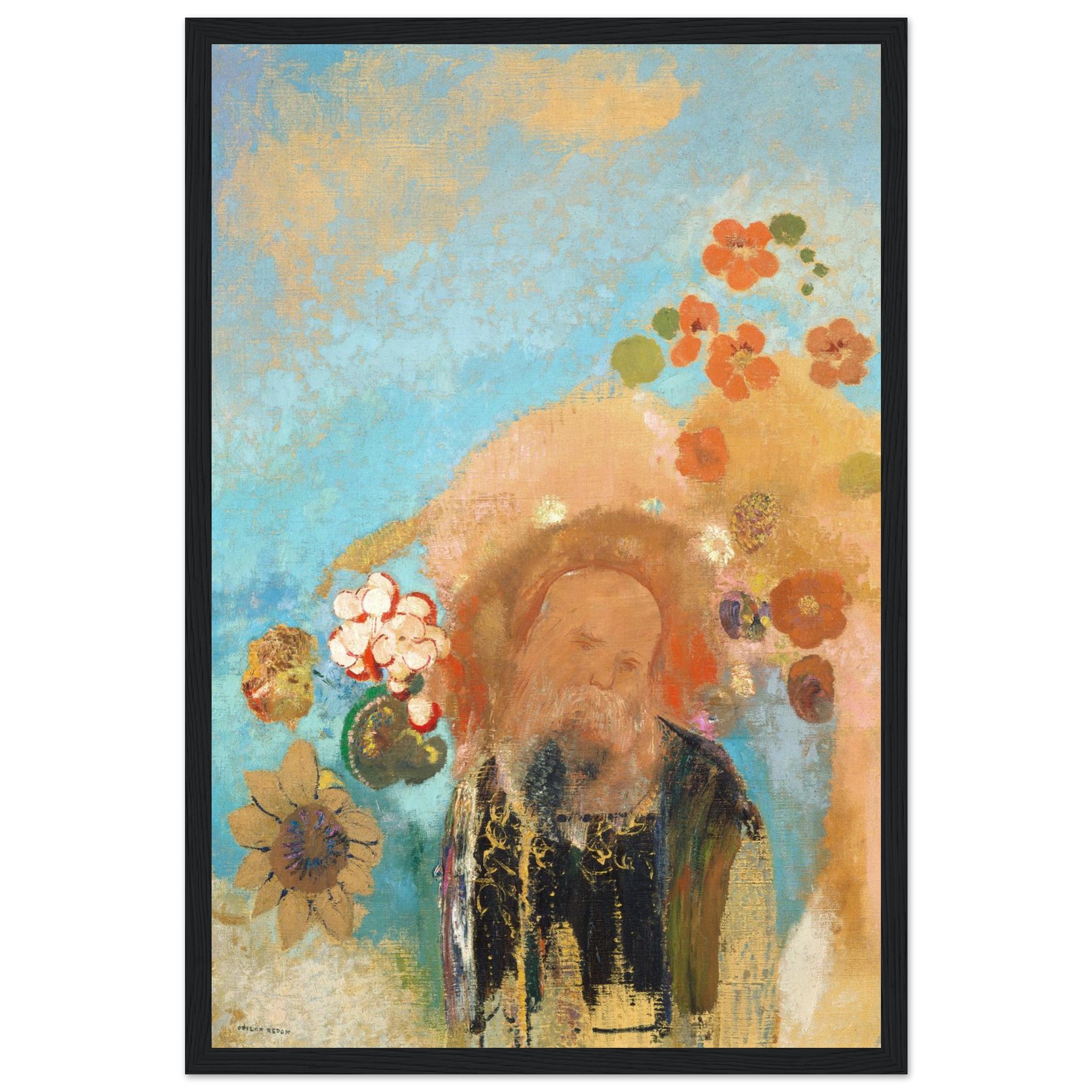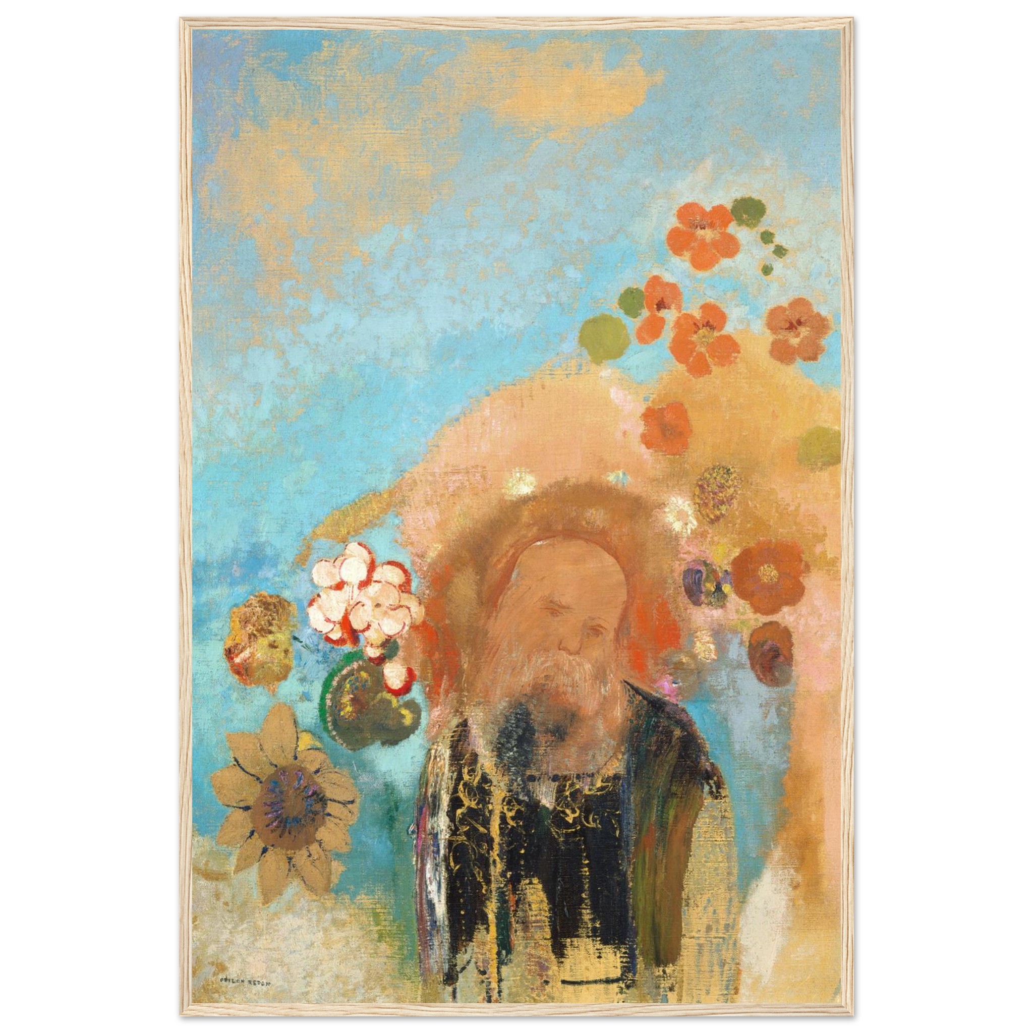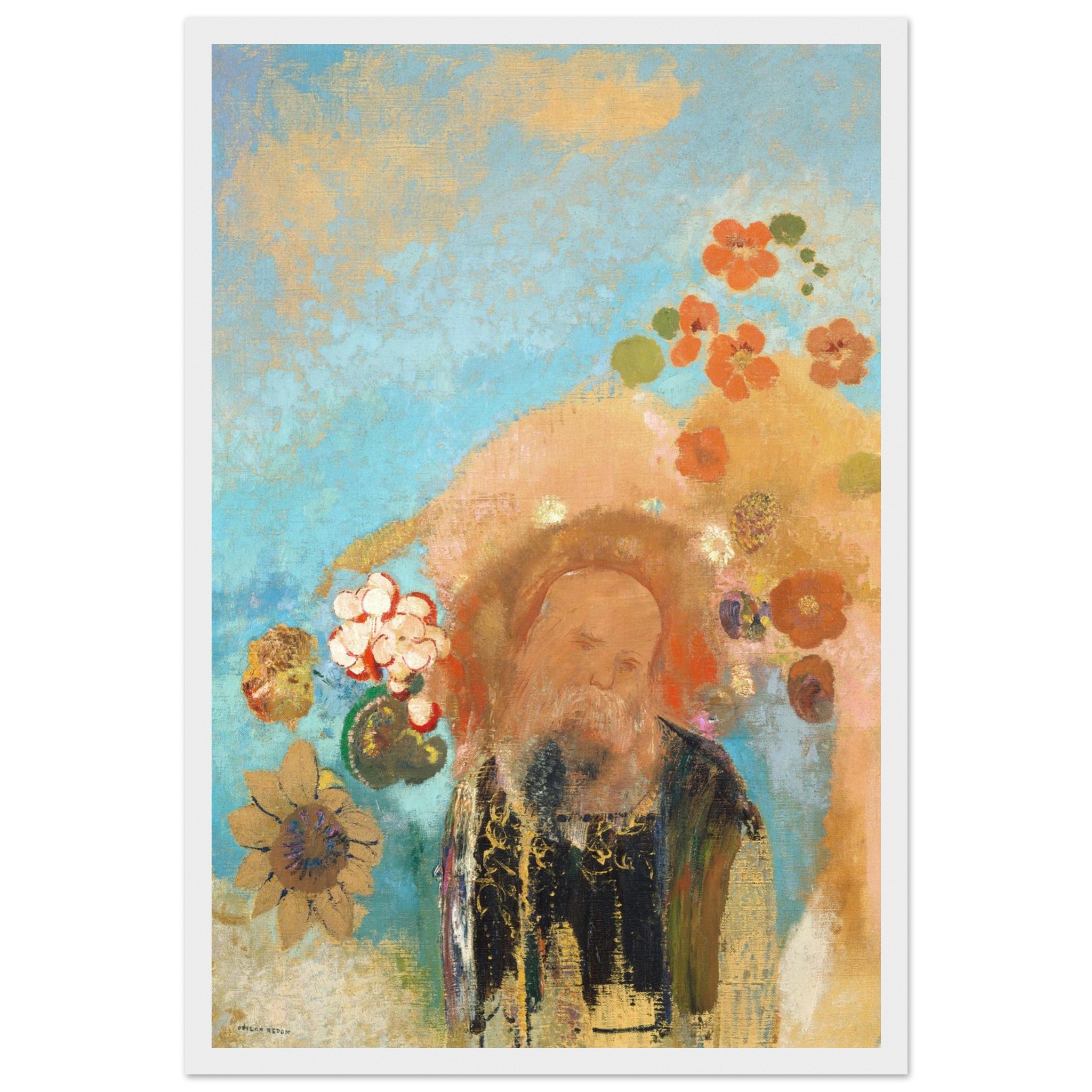 Immerse your space in the enchanting aura of ‘The Mystic’, an art piece where a serene sage emerges from a dreamscape of vibrant teal, sun-kissed gold, and soft coral blooms. This evocative print captures a mood of introspective tranquility, bringing a touch of timeless wisdom and bohemian charm to any room. Crafted for discerning art lovers, this poster is designed to be a captivating focal point in your home or office.