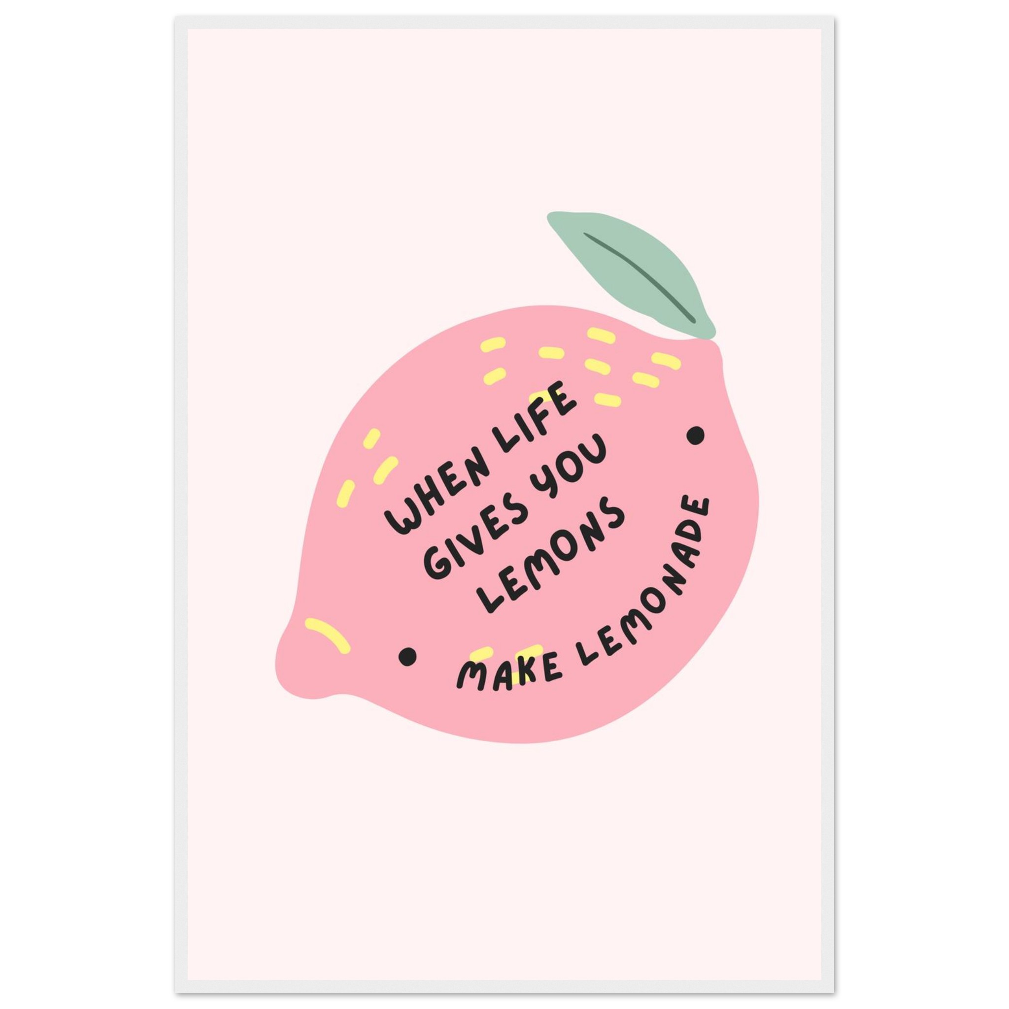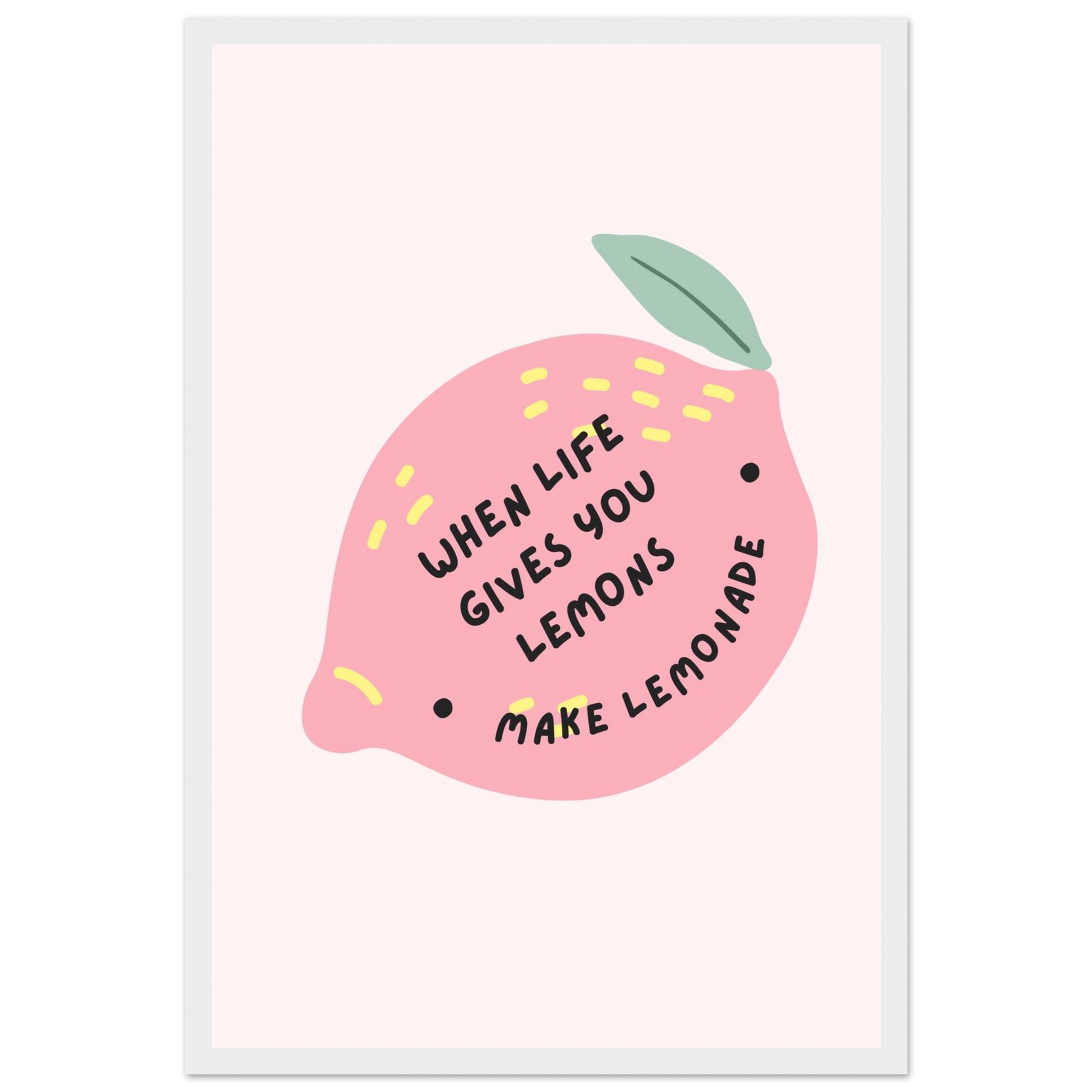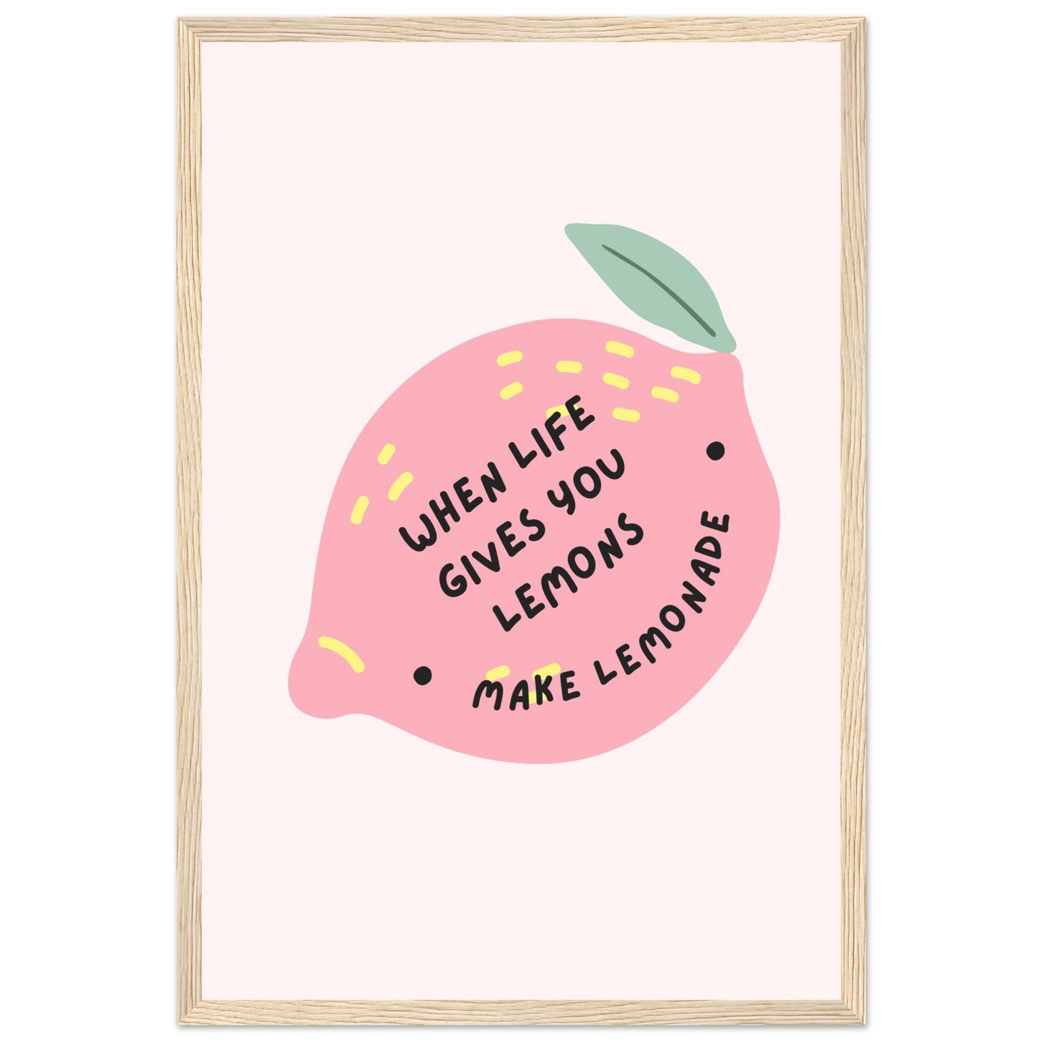 Brighten your space and your spirits with our ‘When Life Gives You Lemons Make Lemonade’ framed art print. This playful and inspiring piece features a charming pink lemon illustration with sunny yellow accents, perfectly capturing a mood of optimism and creativity. It’s the ideal addition to a kitchen, studio, or any room needing a pop of color and a dose of positivity.
