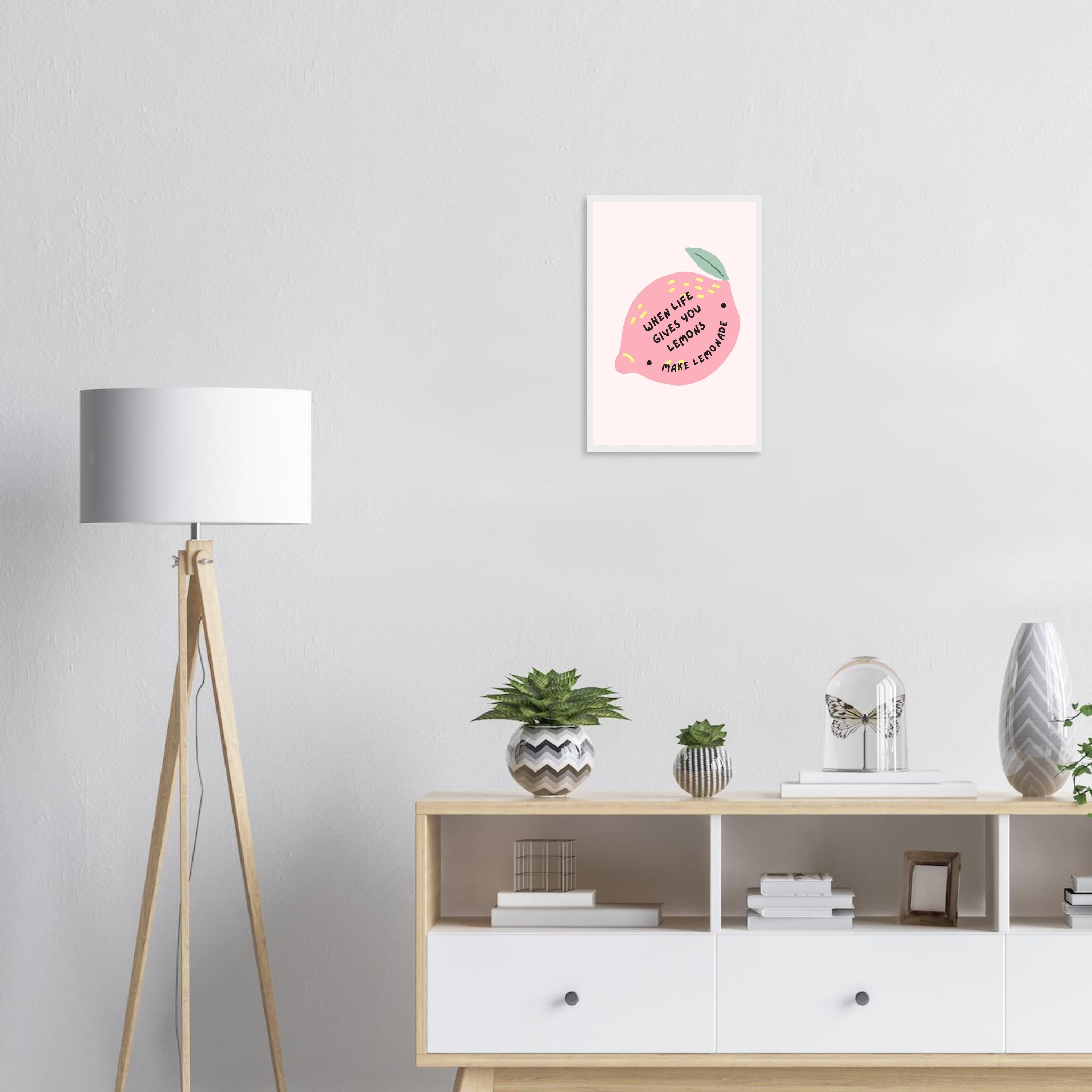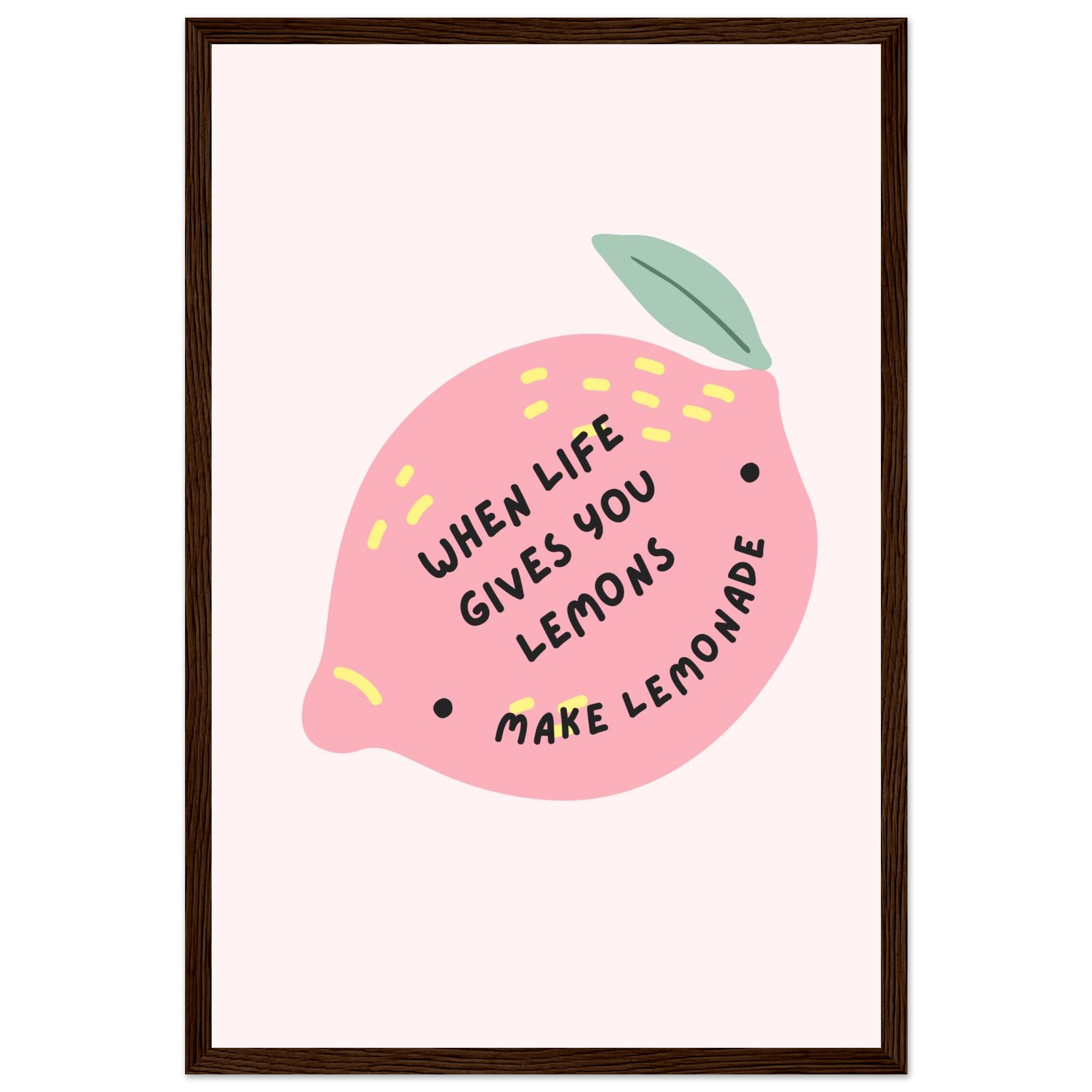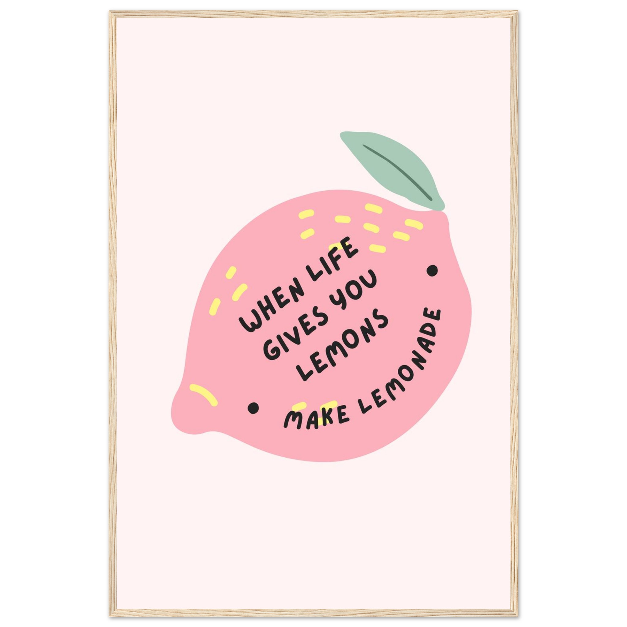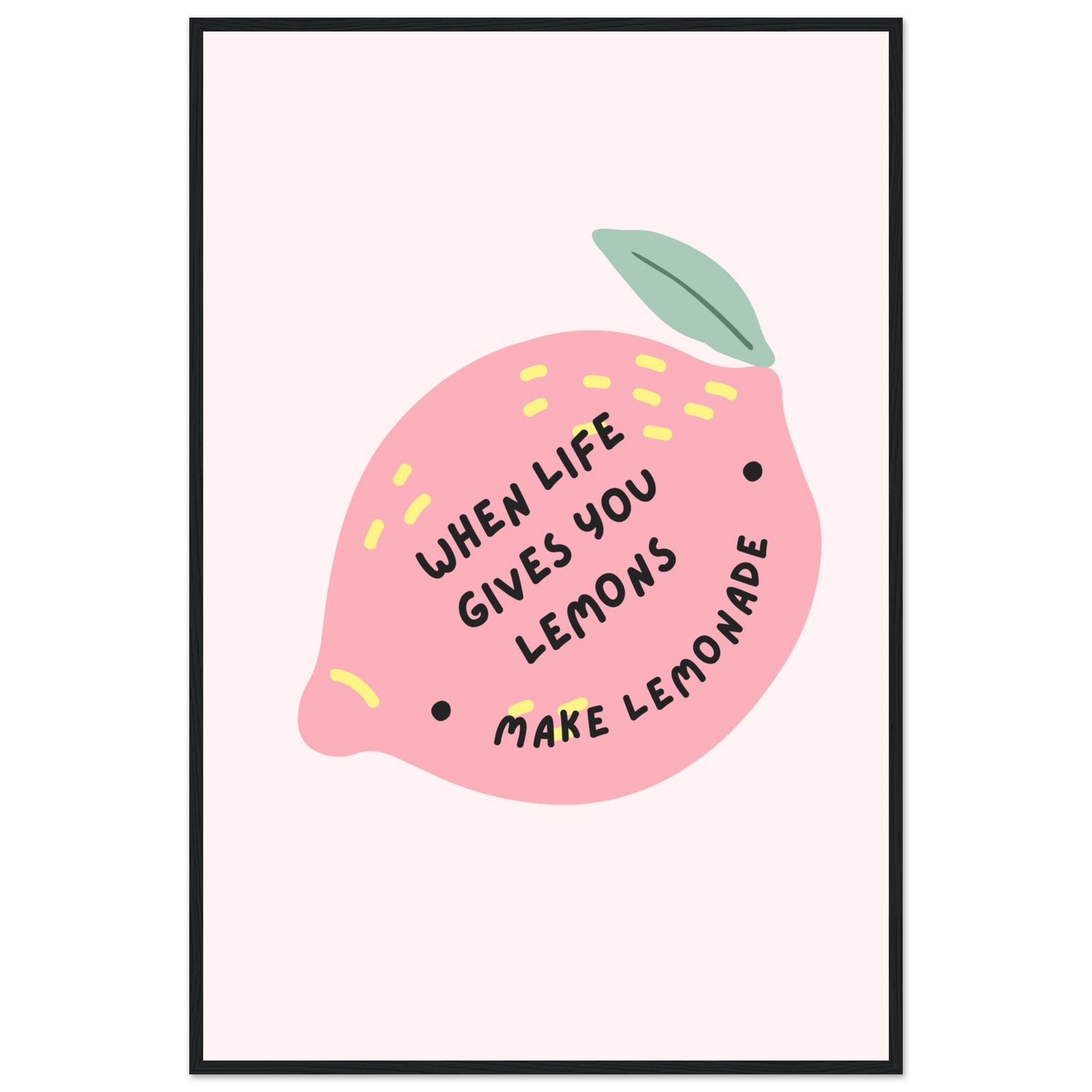Brighten your space and your spirits with our ‘When Life Gives You Lemons Make Lemonade’ framed art print. This playful and inspiring piece features a charming pink lemon illustration with sunny yellow accents, perfectly capturing a mood of optimism and creativity. It’s the ideal addition to a kitchen, studio, or any room needing a pop of color and a dose of positivity.