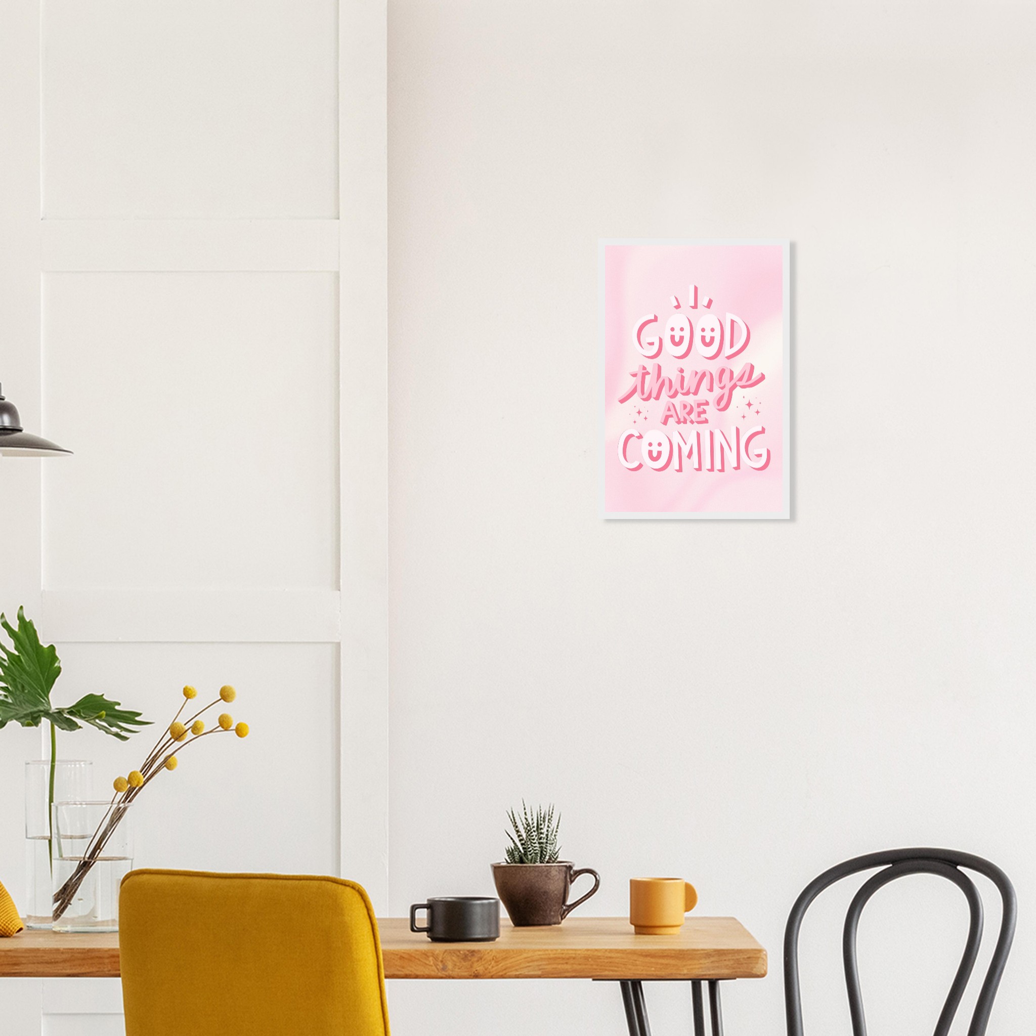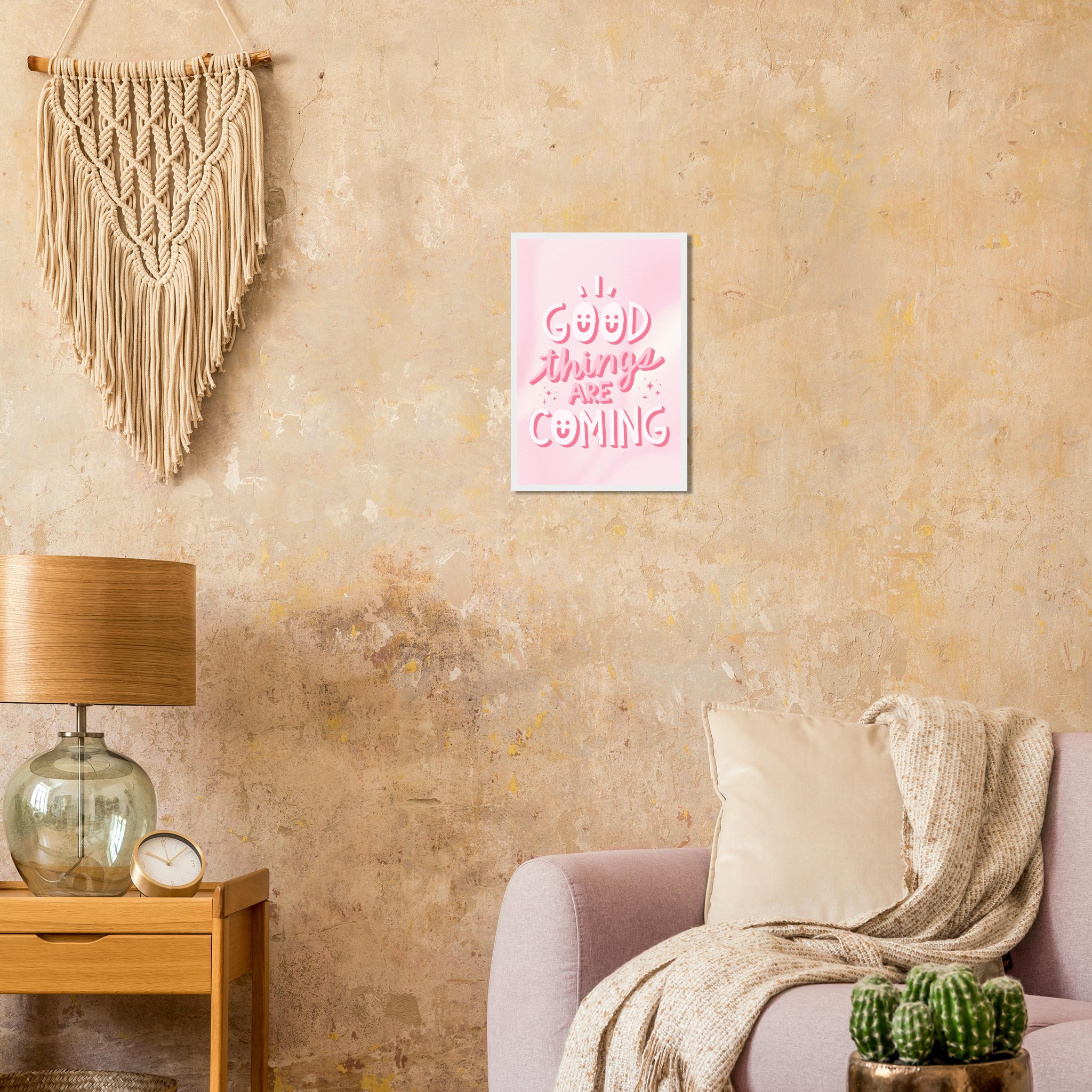Positive Vibes ‘Good Things Are Coming’ Framed Poster – Uplifting Pink Gradient Wall Art