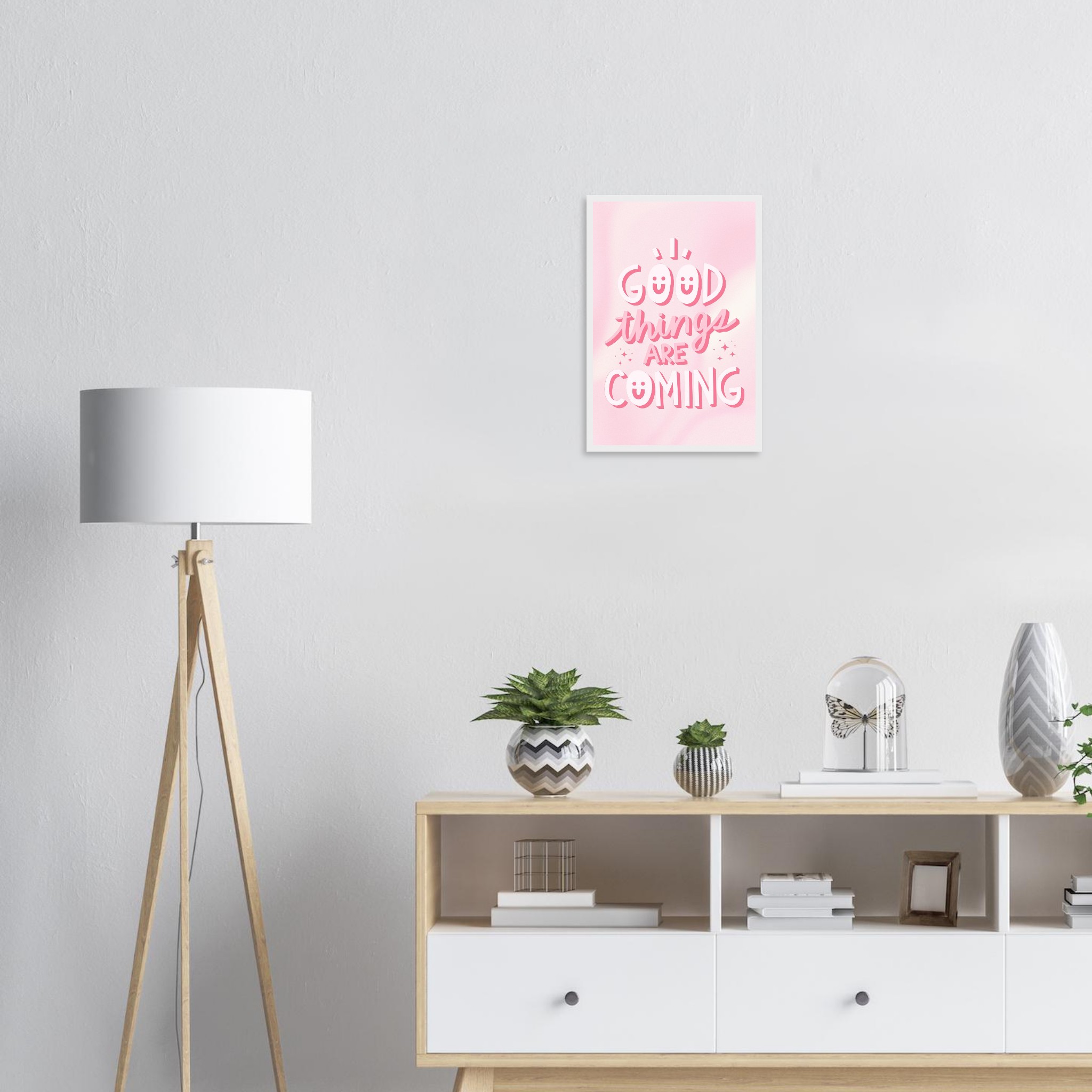 Infuse your space with a touch of optimistic charm with our ‘Good Things Are Coming’ framed poster. Featuring a delightful pink gradient and playful 3D-style lettering with a subtle smiley face motif, this piece serves as a beautiful daily reminder of hope and positivity. Perfect for brightening up any room, it’s designed to bring joy and a sense of calm to your home or office.