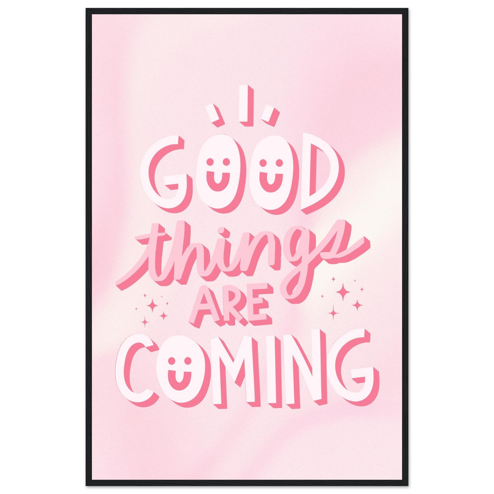 Positive Vibes 'Good Things Are Coming' Framed Poster - Uplifting Pink Gradient Wall Art