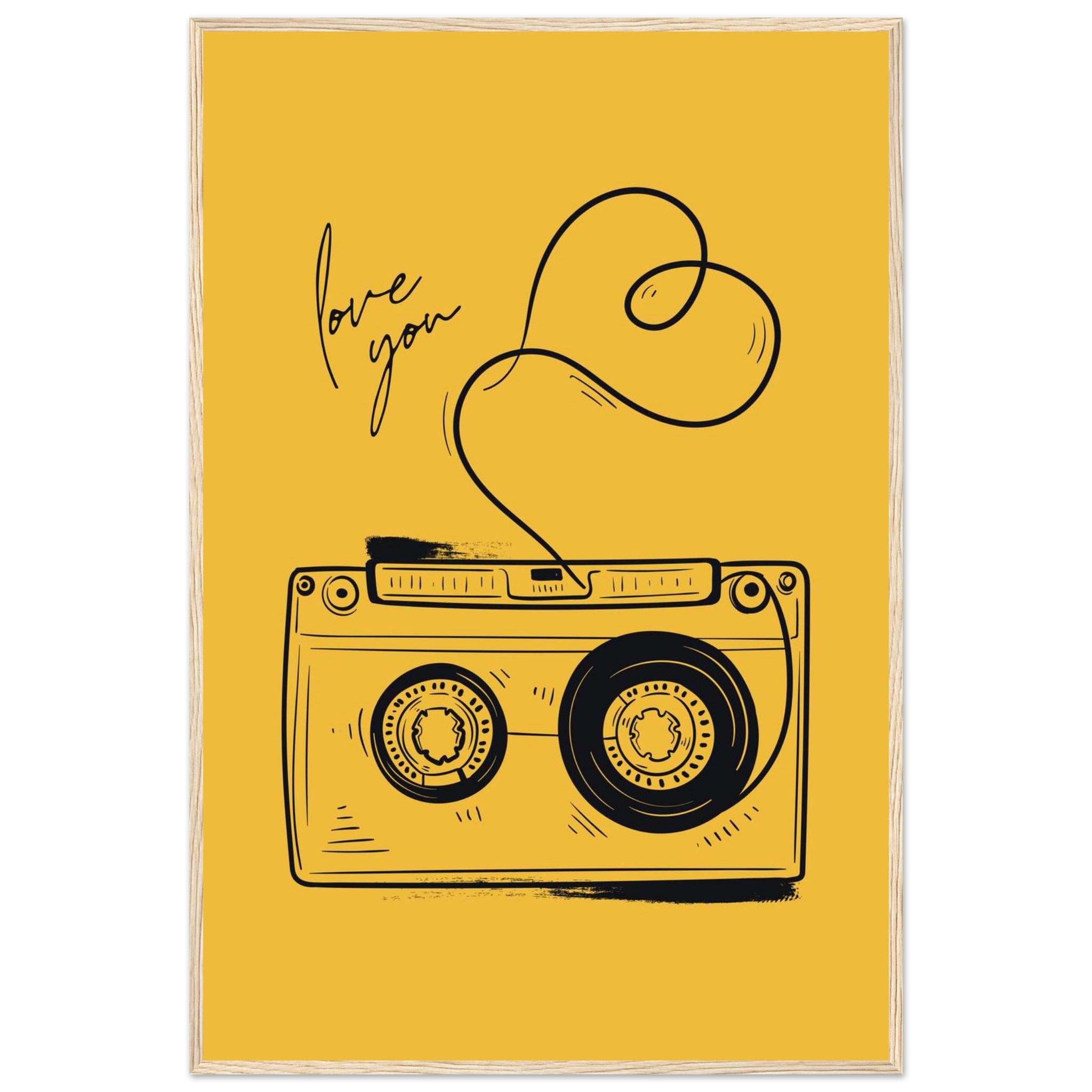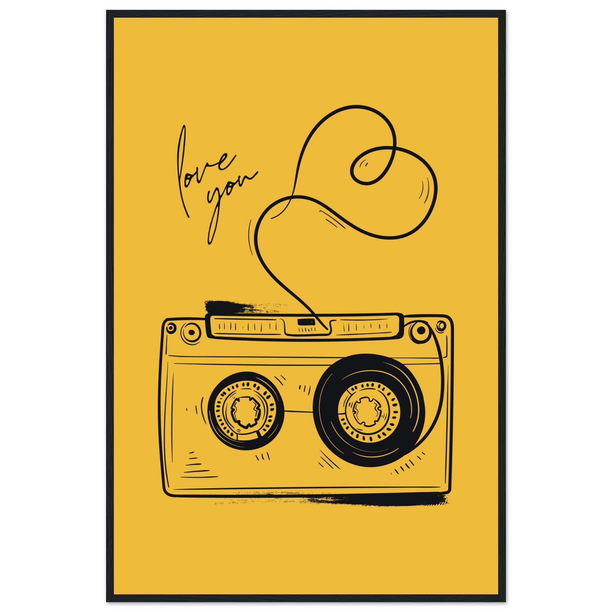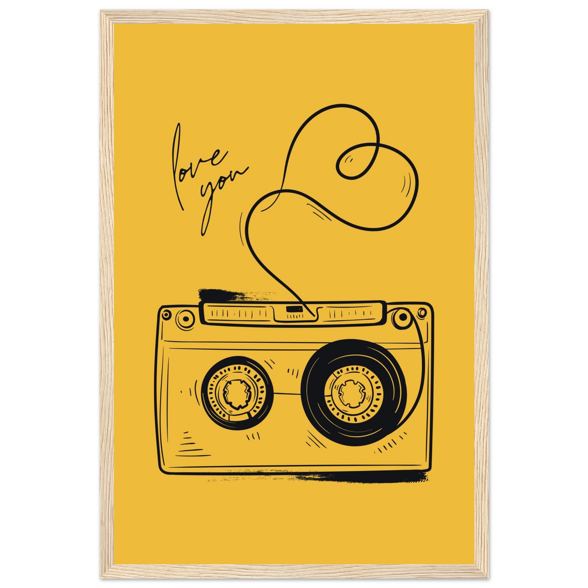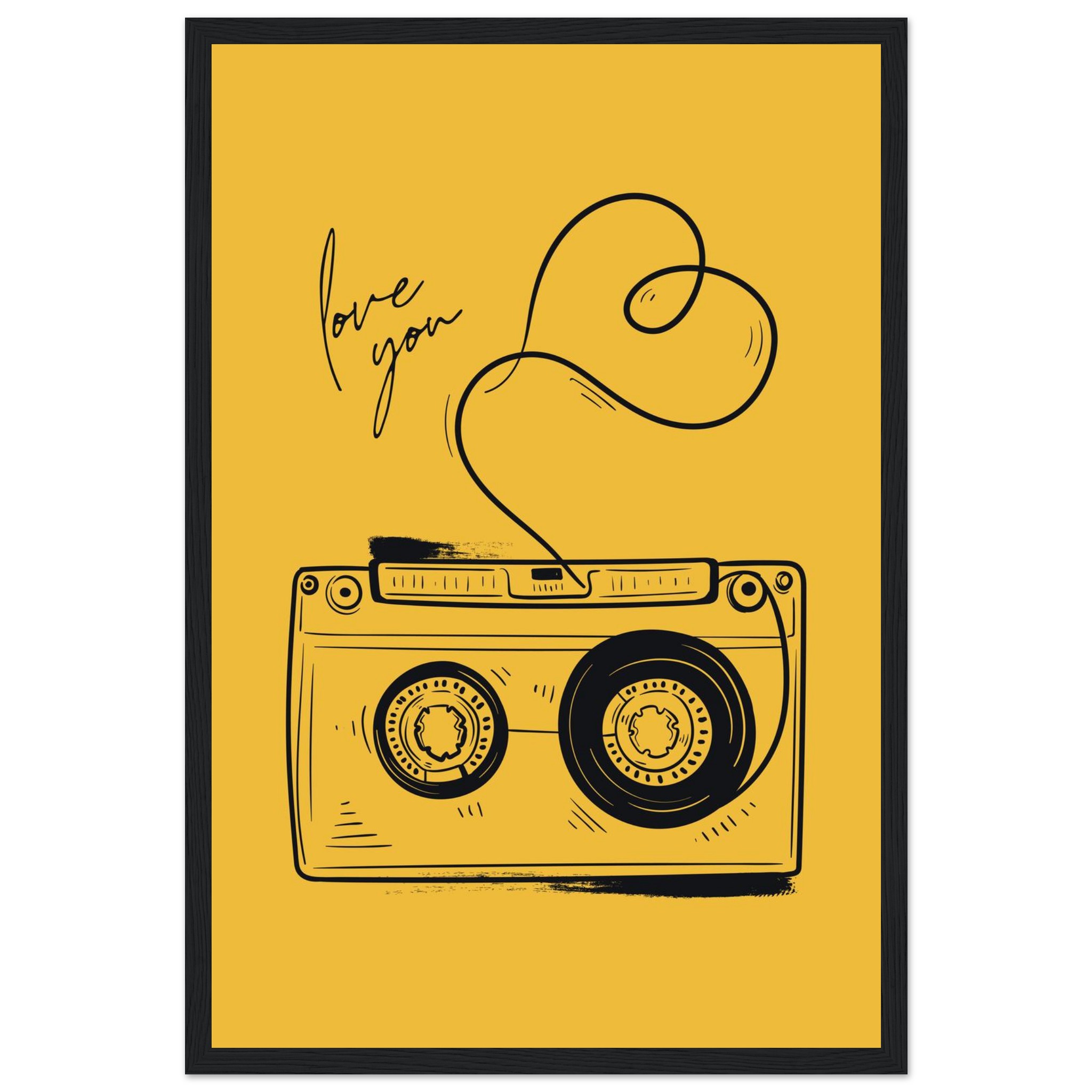 Retro Cassette Tape ‘Love You’ Wooden Framed Poster – Vintage Romance on Matte Paper