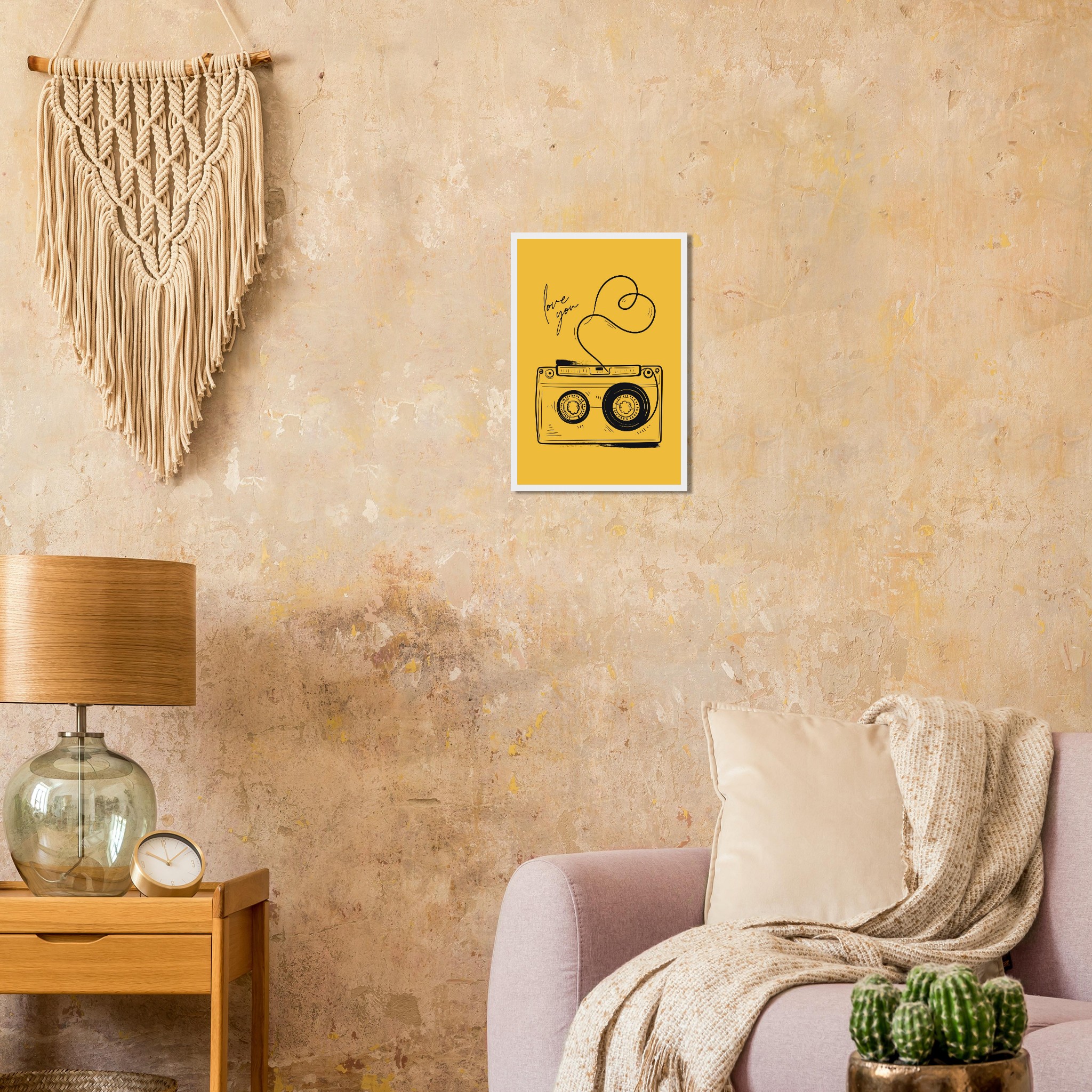Rewind to romance with our exclusive ‘Love You’ Cassette Tape Framed Poster. This charming piece, set against a warm yellow backdrop, evokes nostalgic feelings of mixtapes and heartfelt messages. It’s the perfect way to express affection or add a touch of retro charm to your space, blending vintage cool with enduring love.