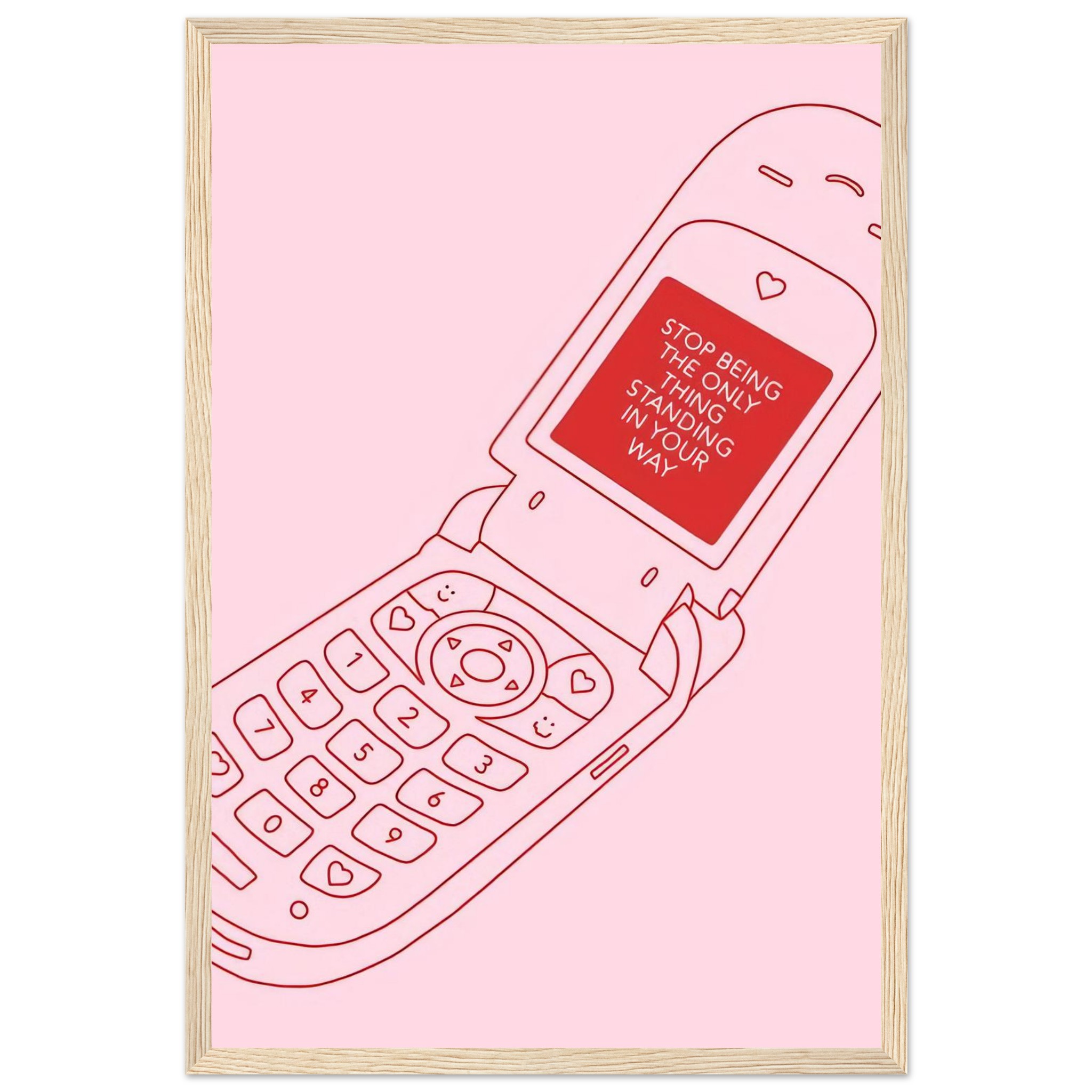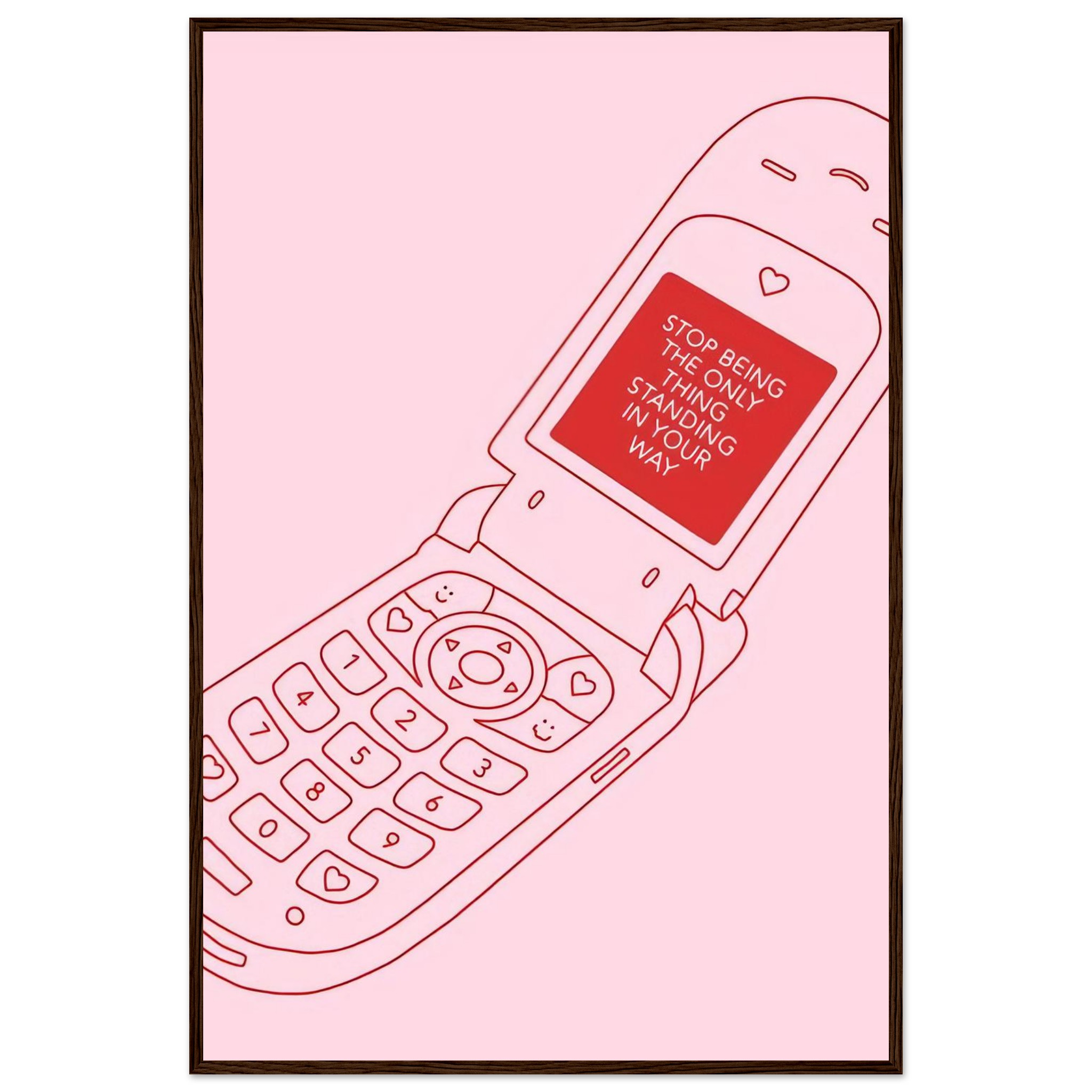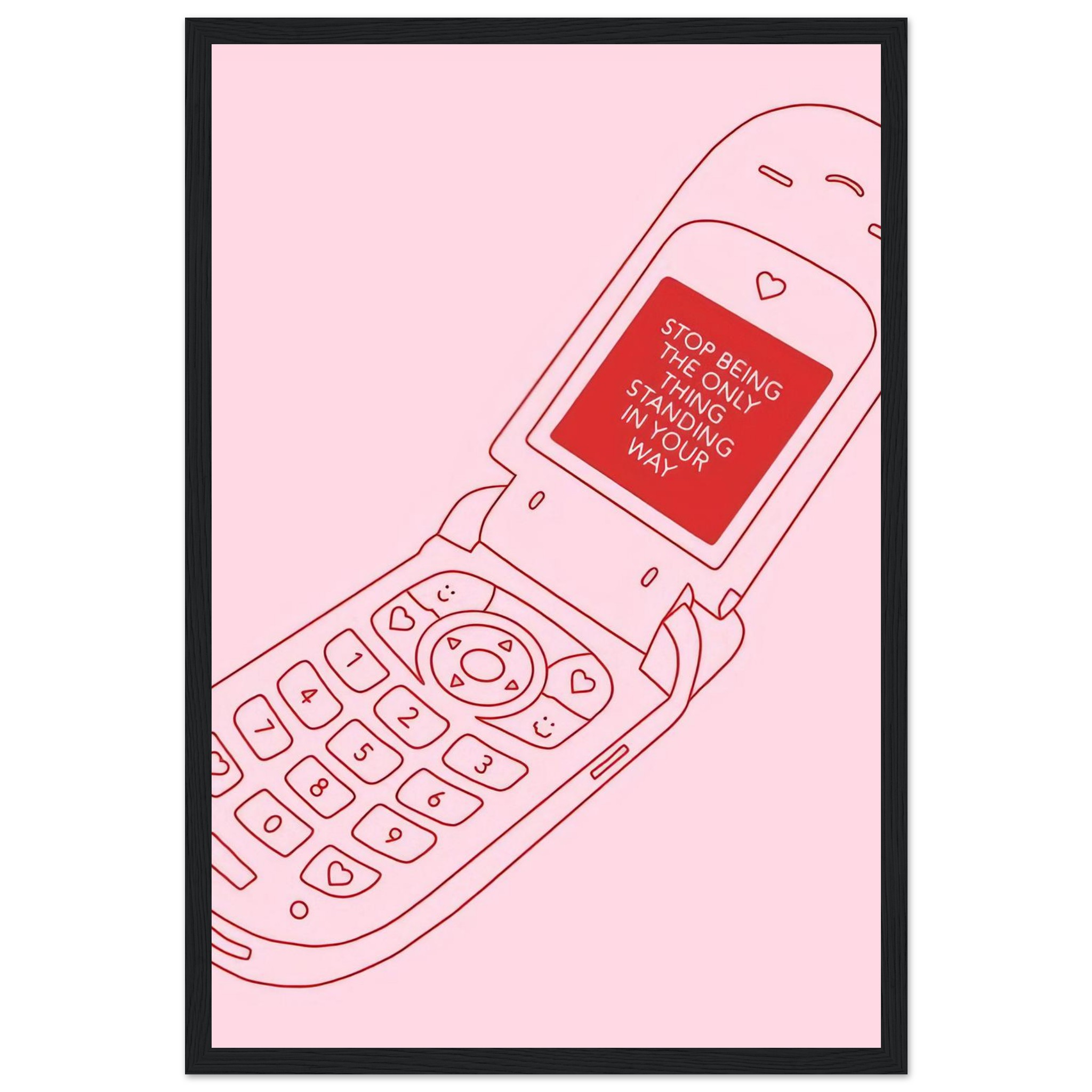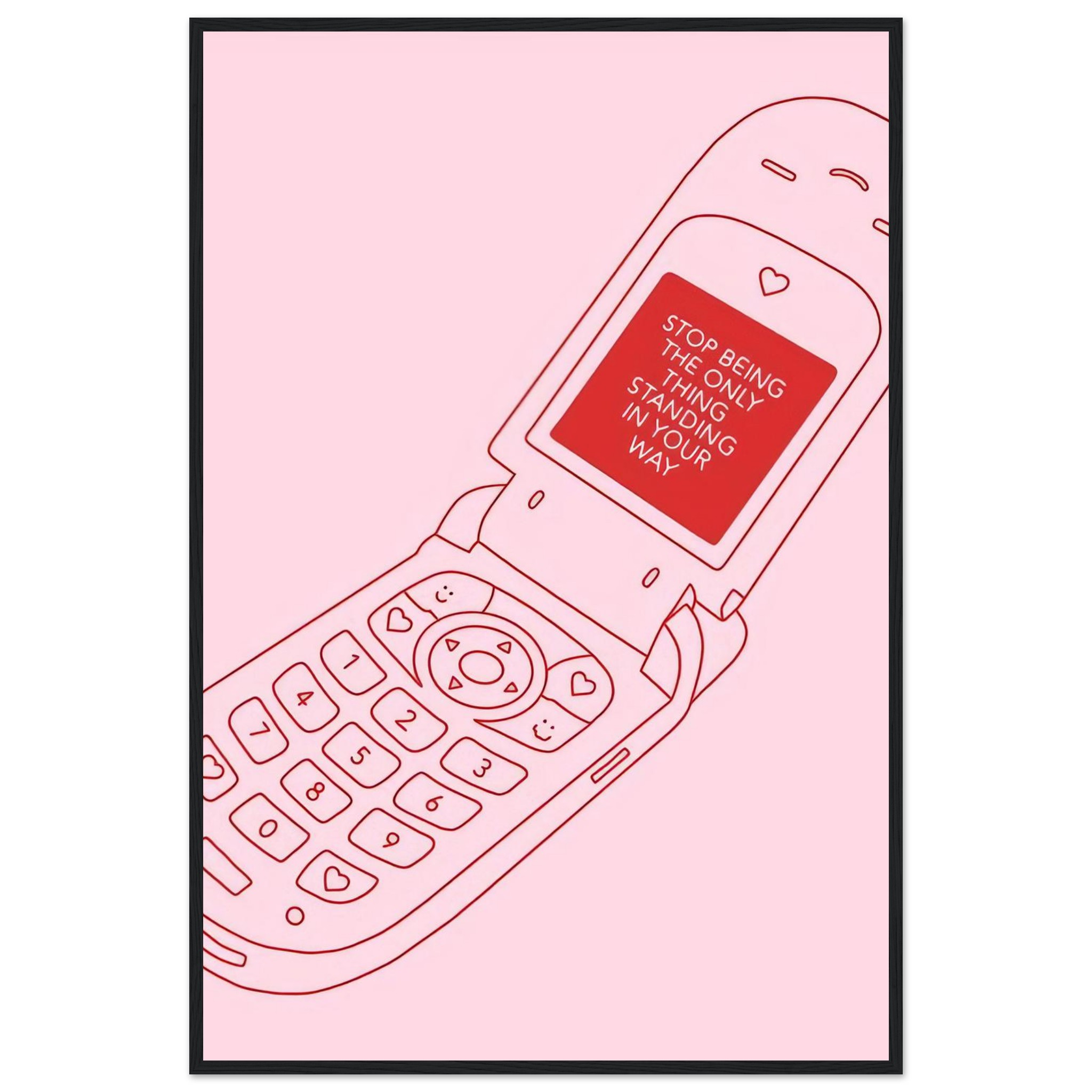 Capture a blast from the past with a powerful message! Our ‘Stop Being The Only Thing Standing In Your Way’ framed poster, featuring a charming retro flip phone design in a vibrant pink and red palette, serves as a daily dose of motivation. This piece of art brings a nostalgic, playful vibe to any room, reminding you to break free and chase your dreams.