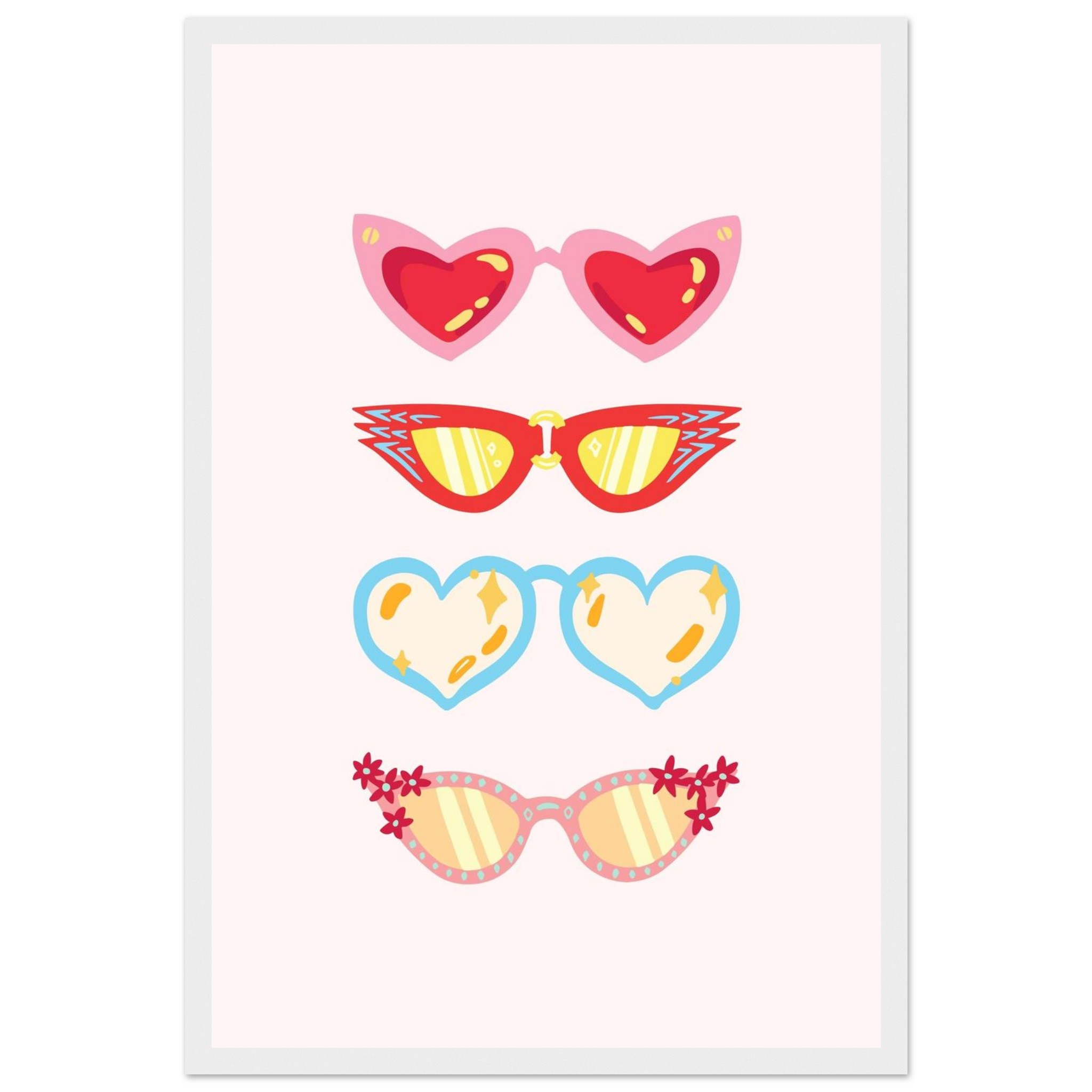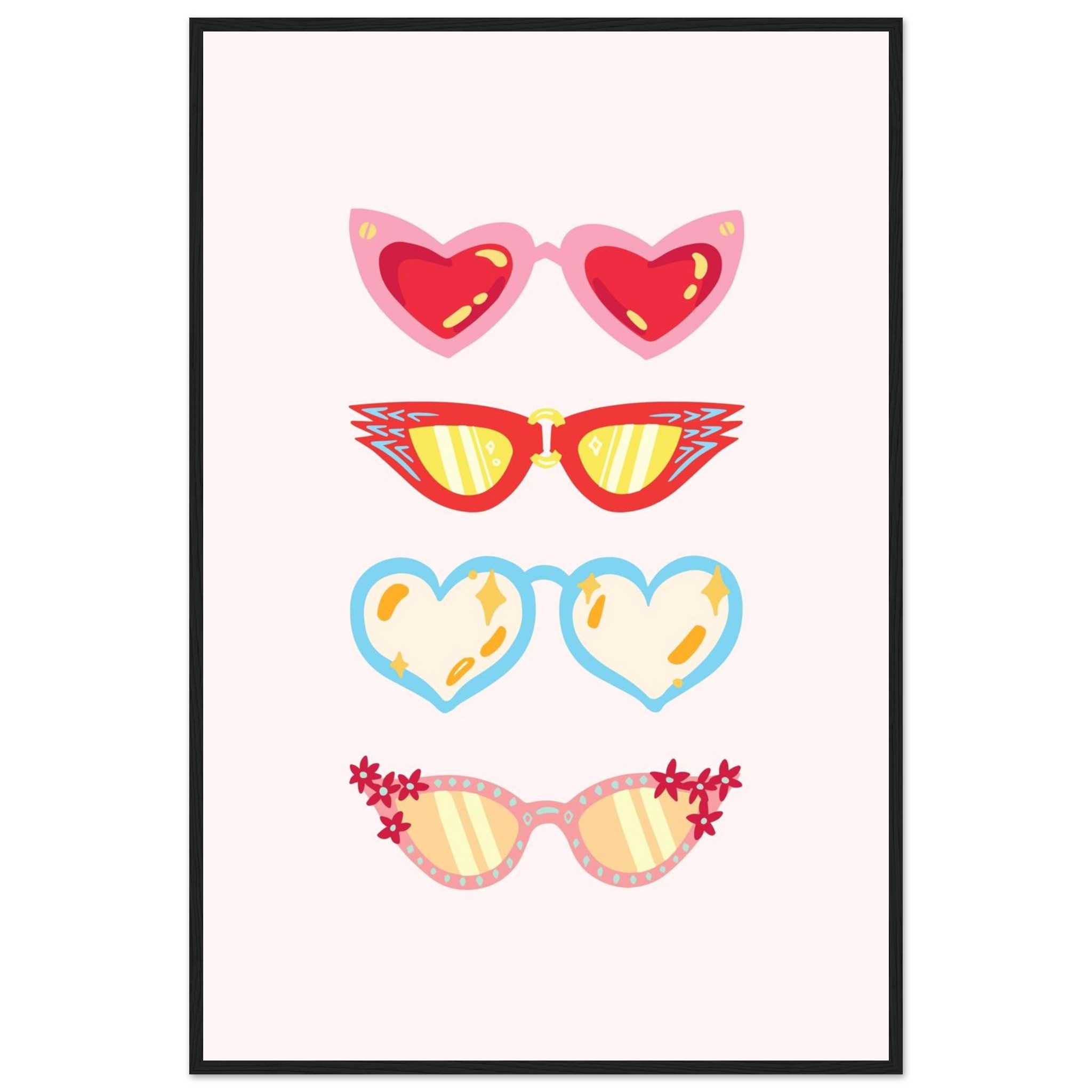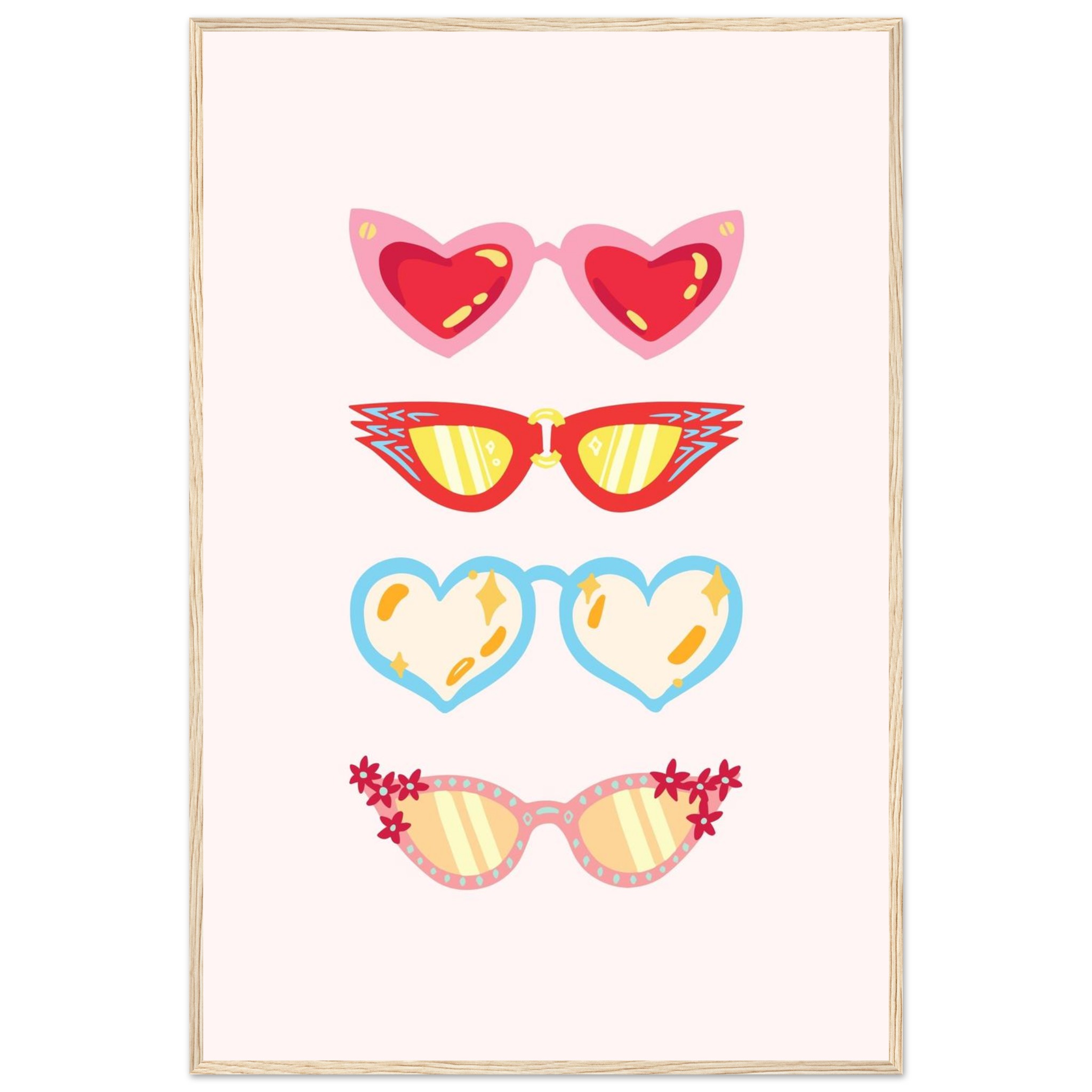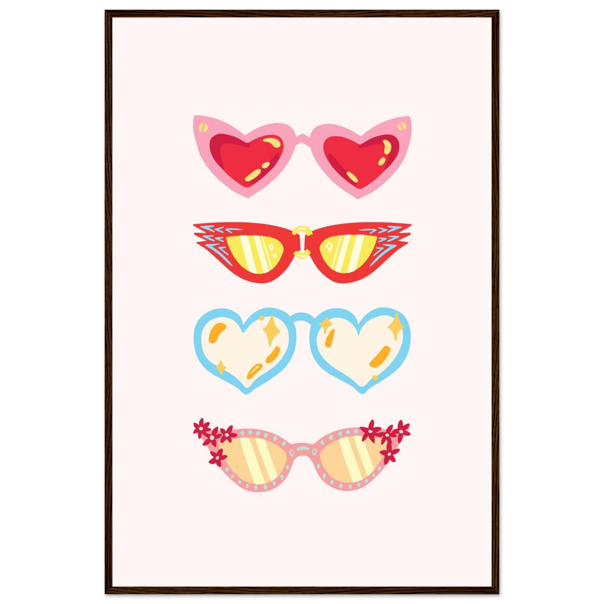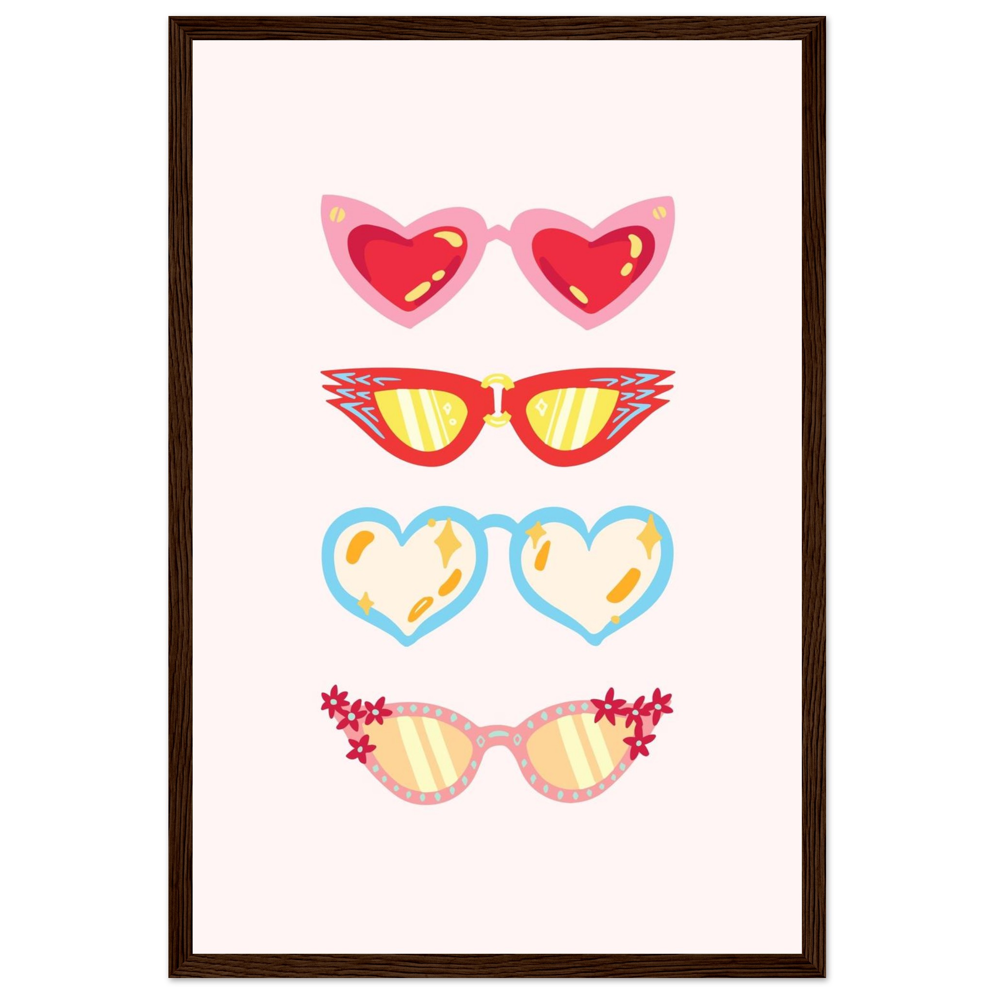 Retro Summer Shades: Playful Matte Paper Wooden Framed Poster in Multiple Styles