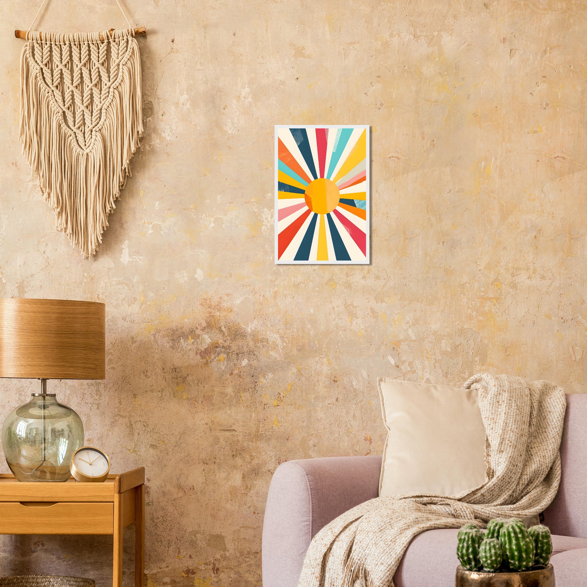 Retro Sunburst Matte Paper Wooden Framed Poster – Vibrant Mid-Century Modern Art