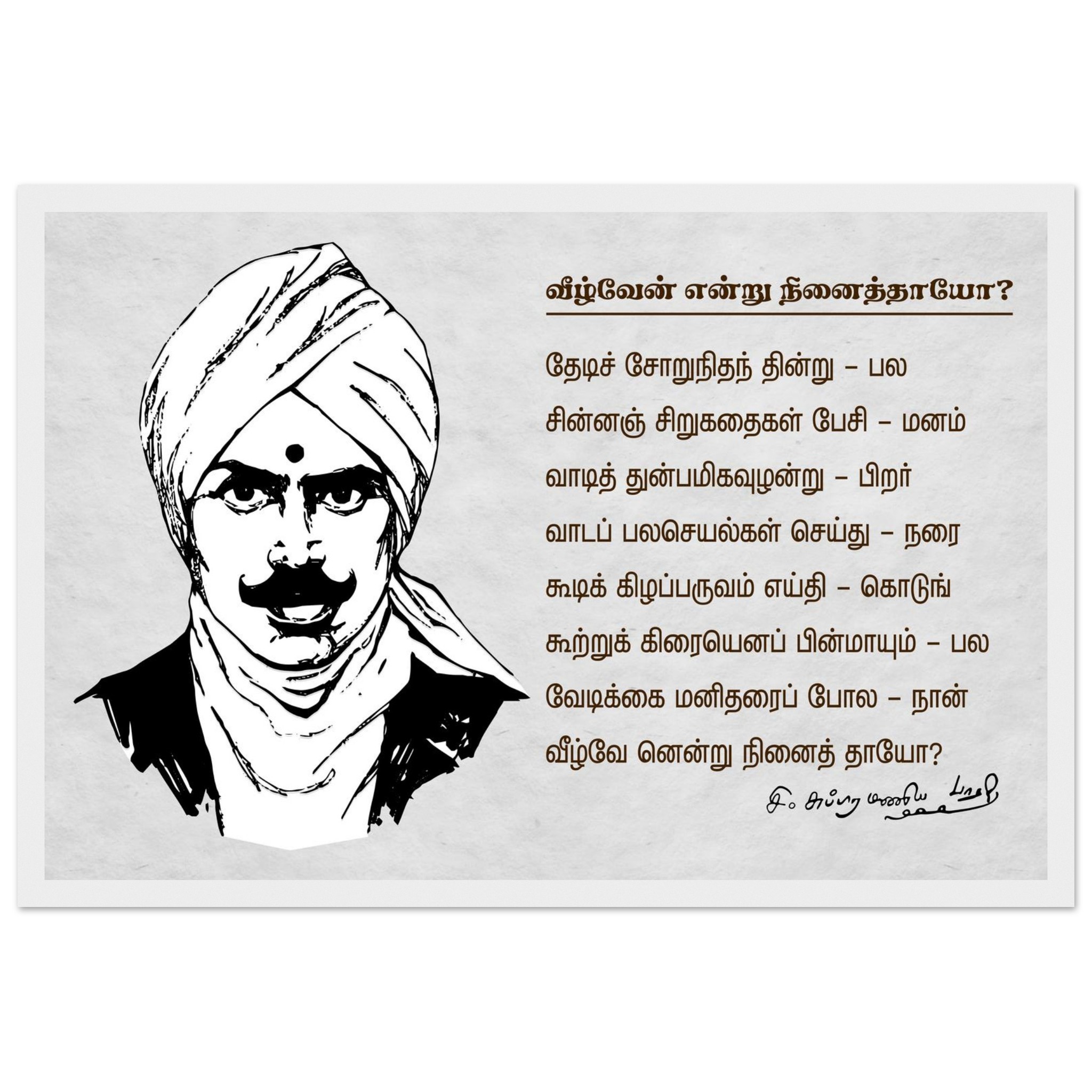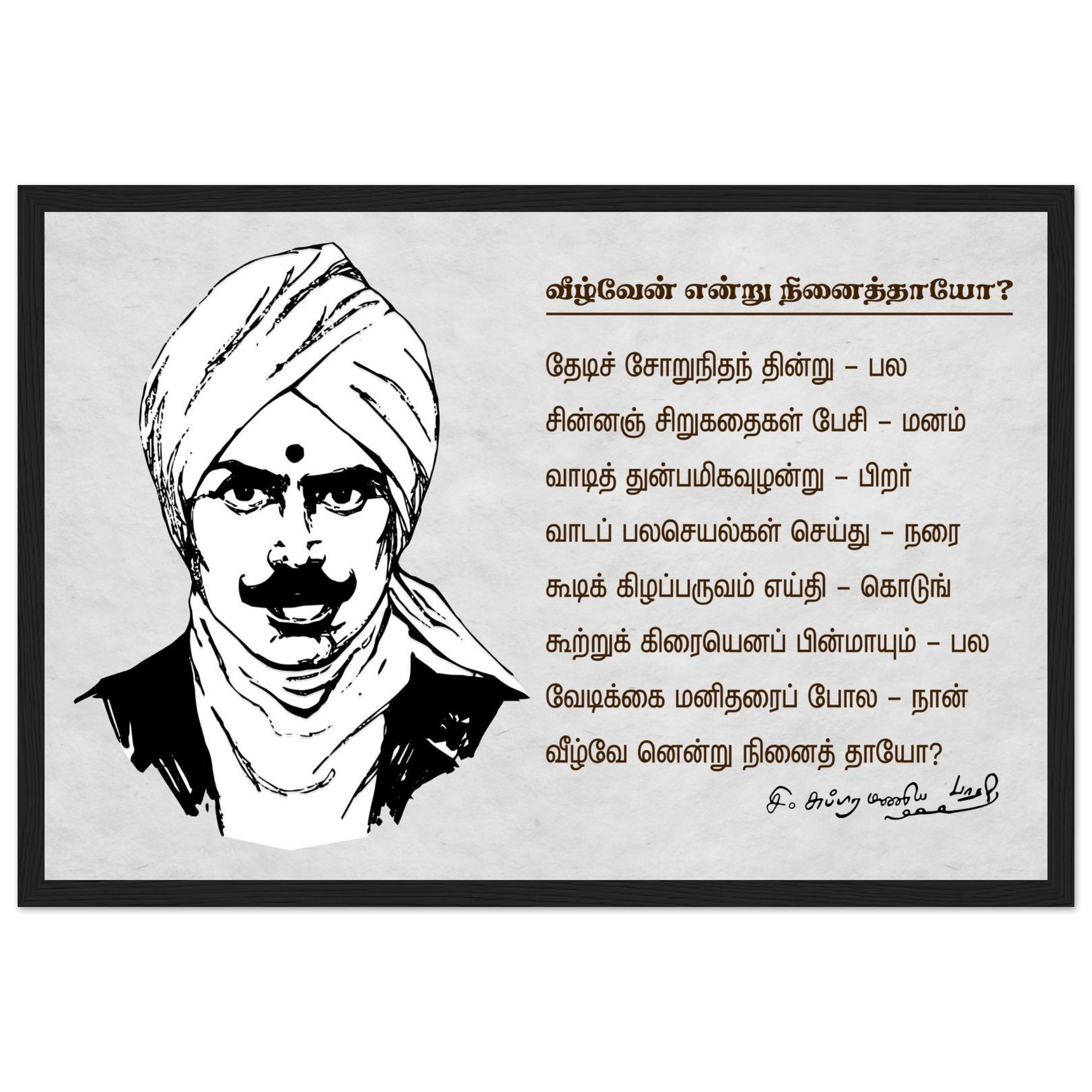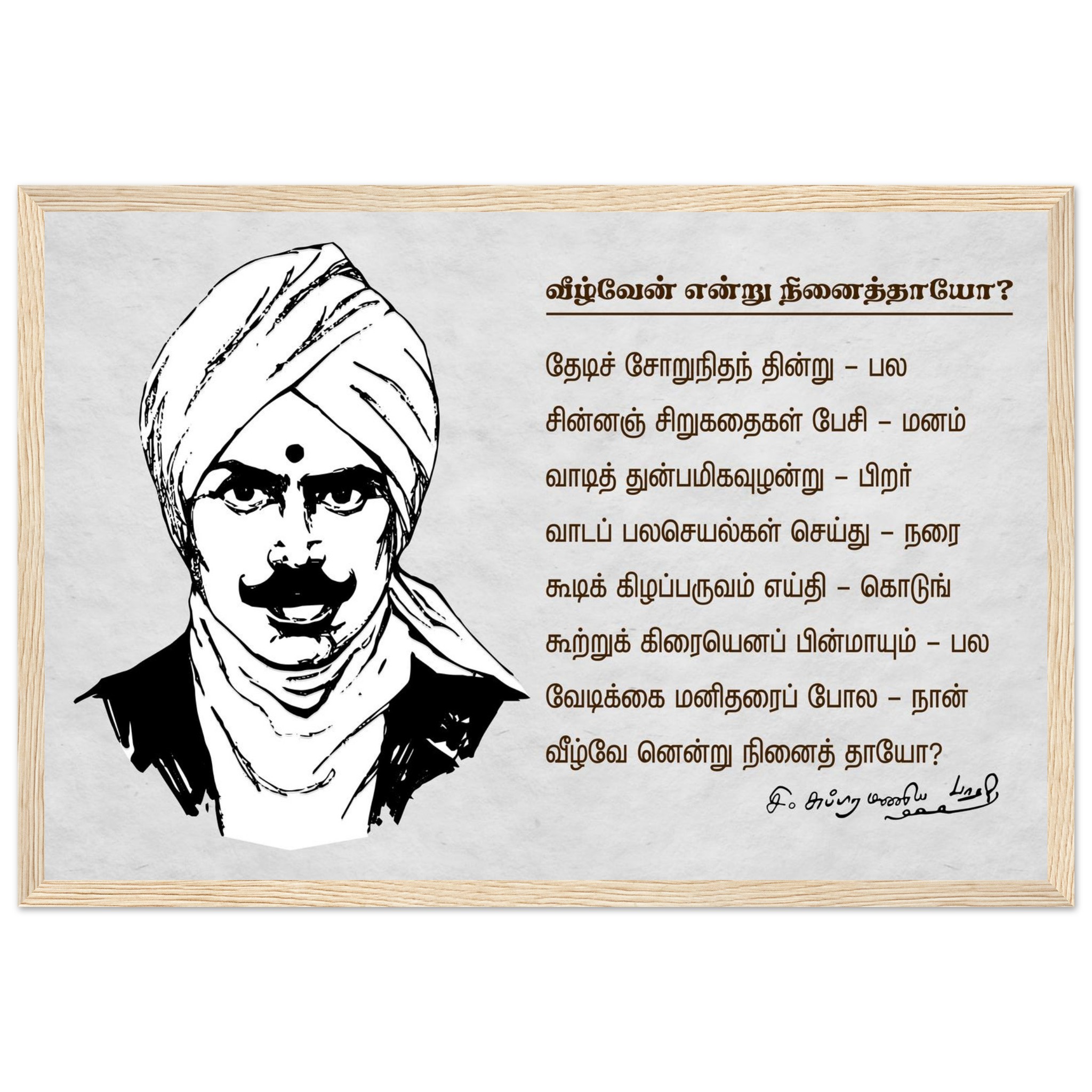 Subramania Bharati Tamil Classic Matte Paper Wooden Framed Poster 30×45 cm / 12×18″ Inch