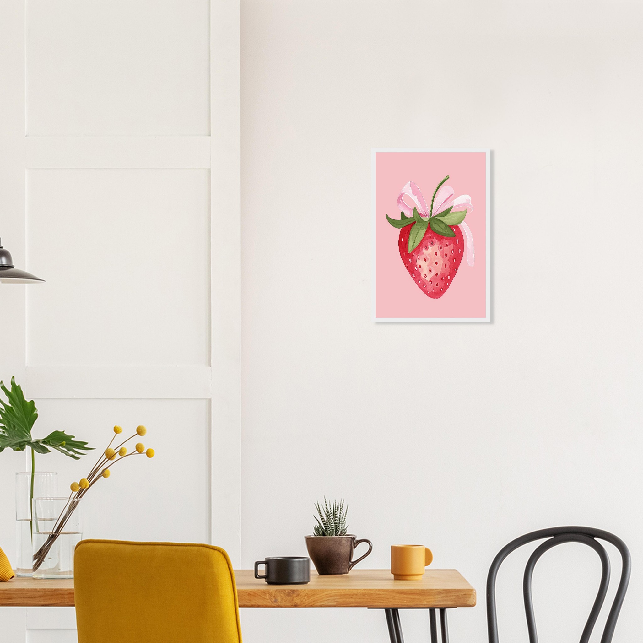 Add a delightful touch of sweetness and charm to your space with this captivating watercolor framed poster, featuring a vibrant strawberry adorned with a delicate pink bow. Its soft hues and playful design evoke a sense of nostalgic charm, perfect for brightening any room or gifting to someone special. Our premium framed posters are designed not just to display art, but to bring joy and lasting beauty into your home.