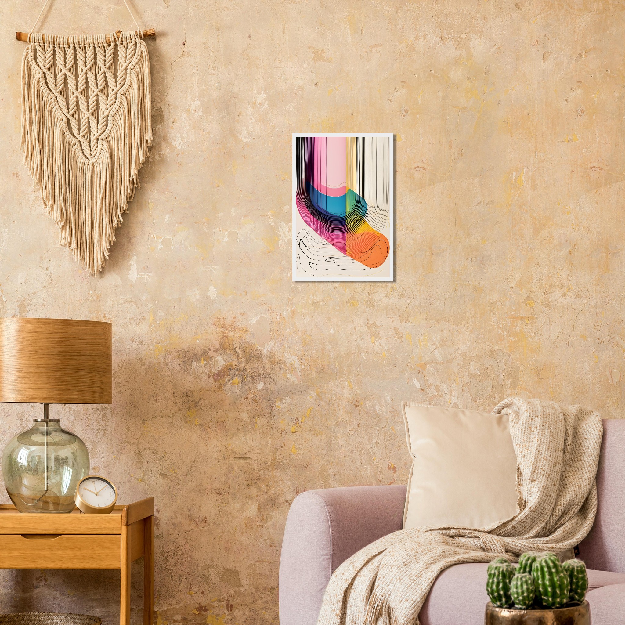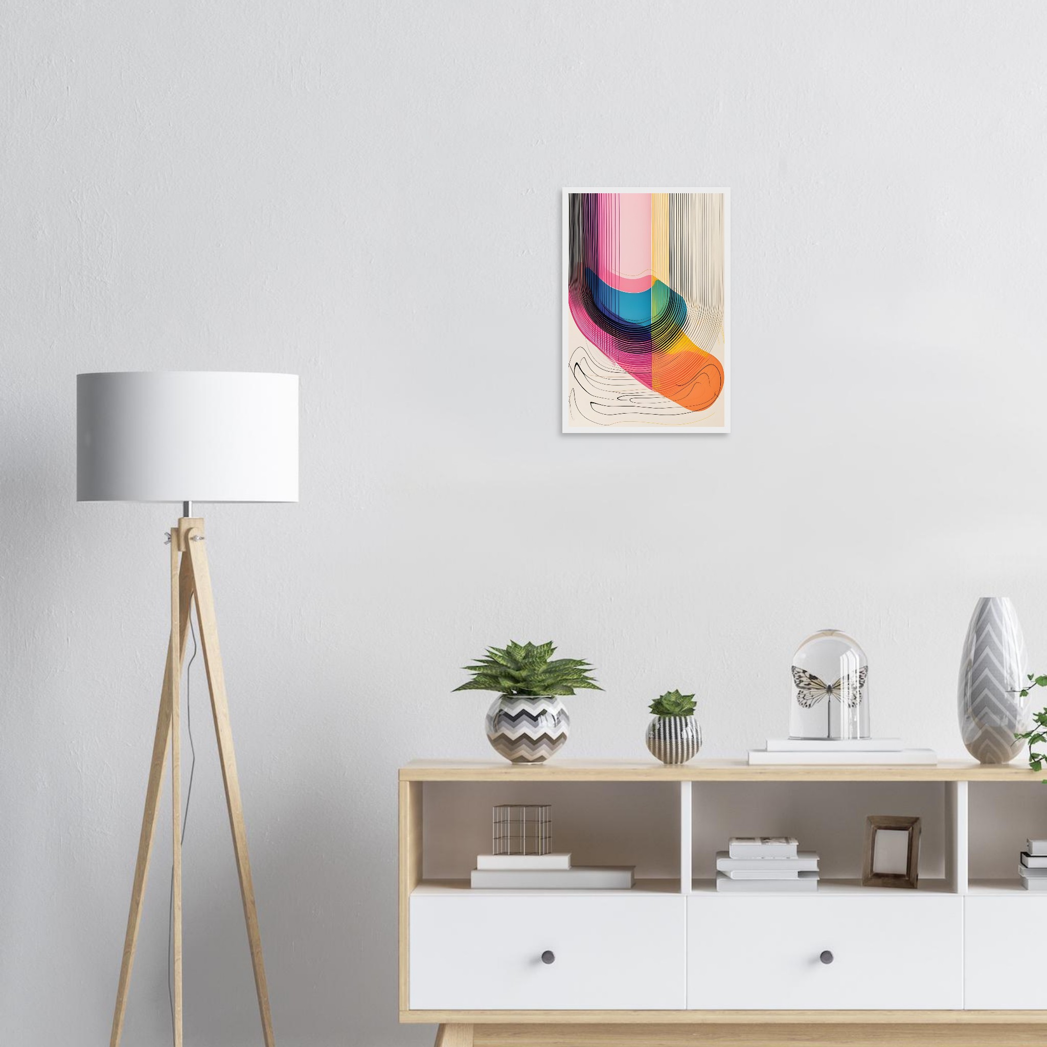 Infuse your living space with a burst of contemporary energy! This framed poster features a captivating abstract design, blending dynamic lines with a vibrant color palette of fuchsia, sky blue, sunny yellow, and warm orange. It’s the perfect statement piece to add a modern, artistic touch to any room, sparking conversation and inspiring creativity.