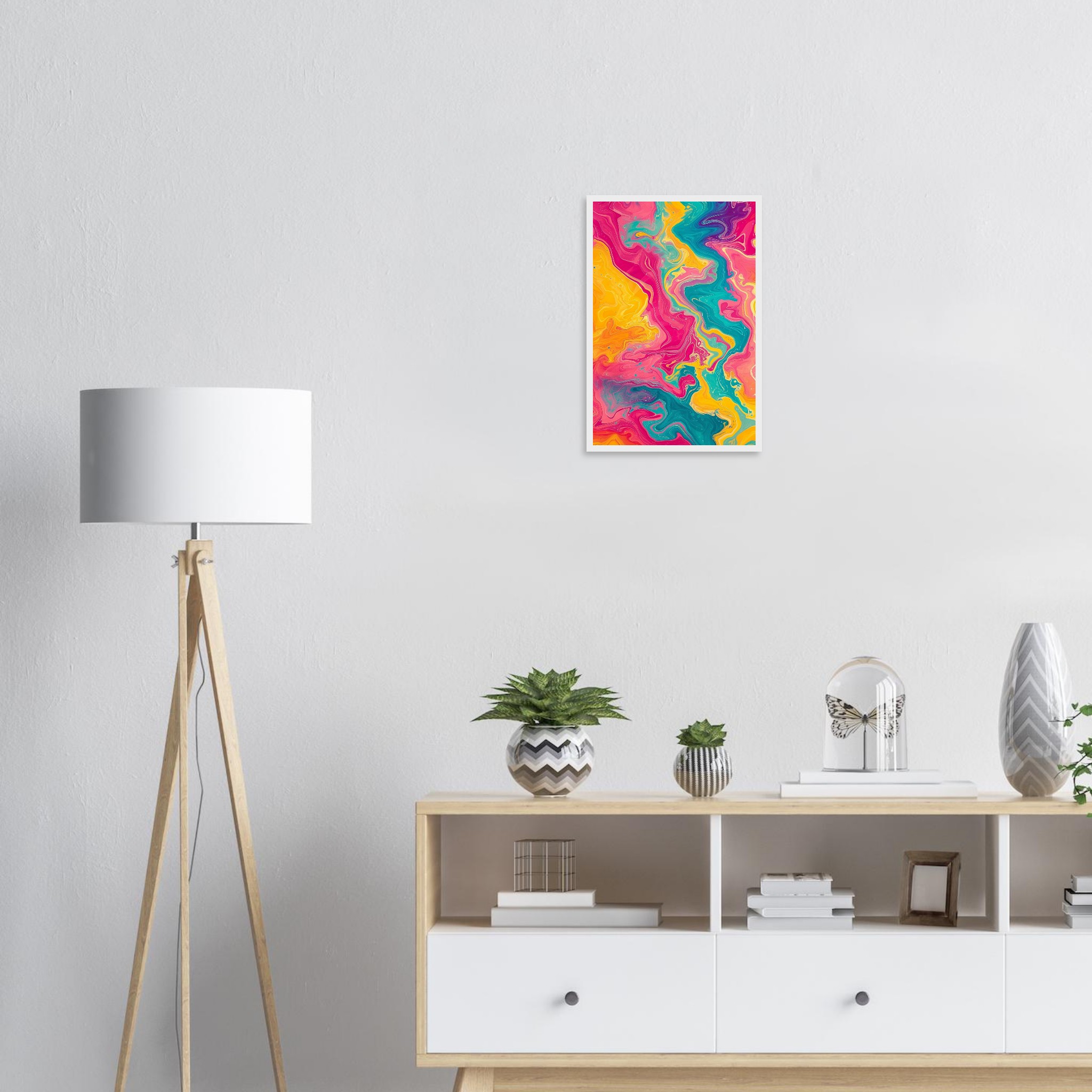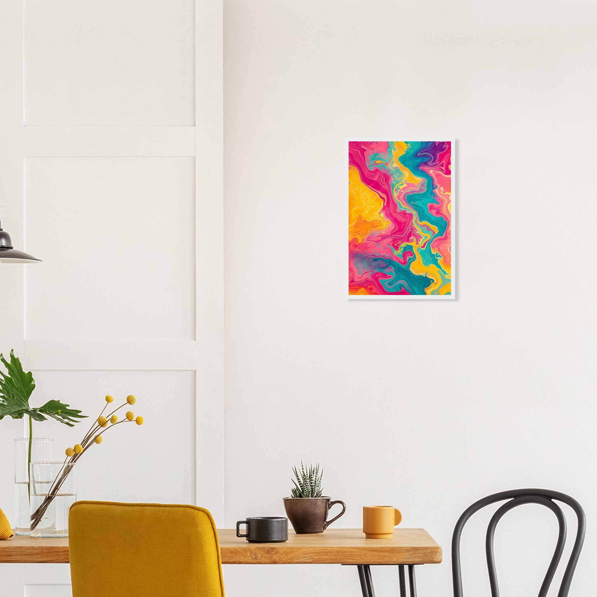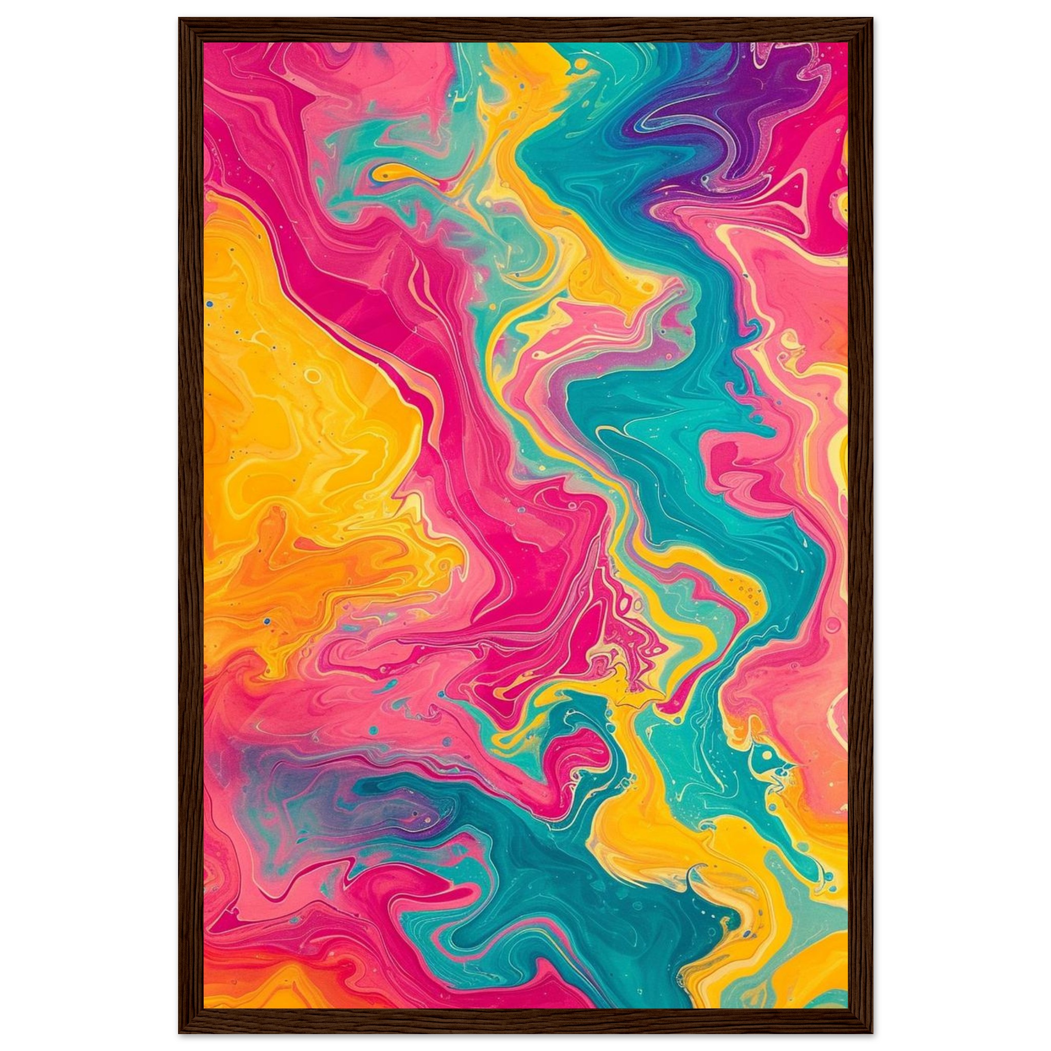 Vibrant Abstract Swirls Matte Paper Wooden Framed Poster – Pop Art Liquid Movement Print