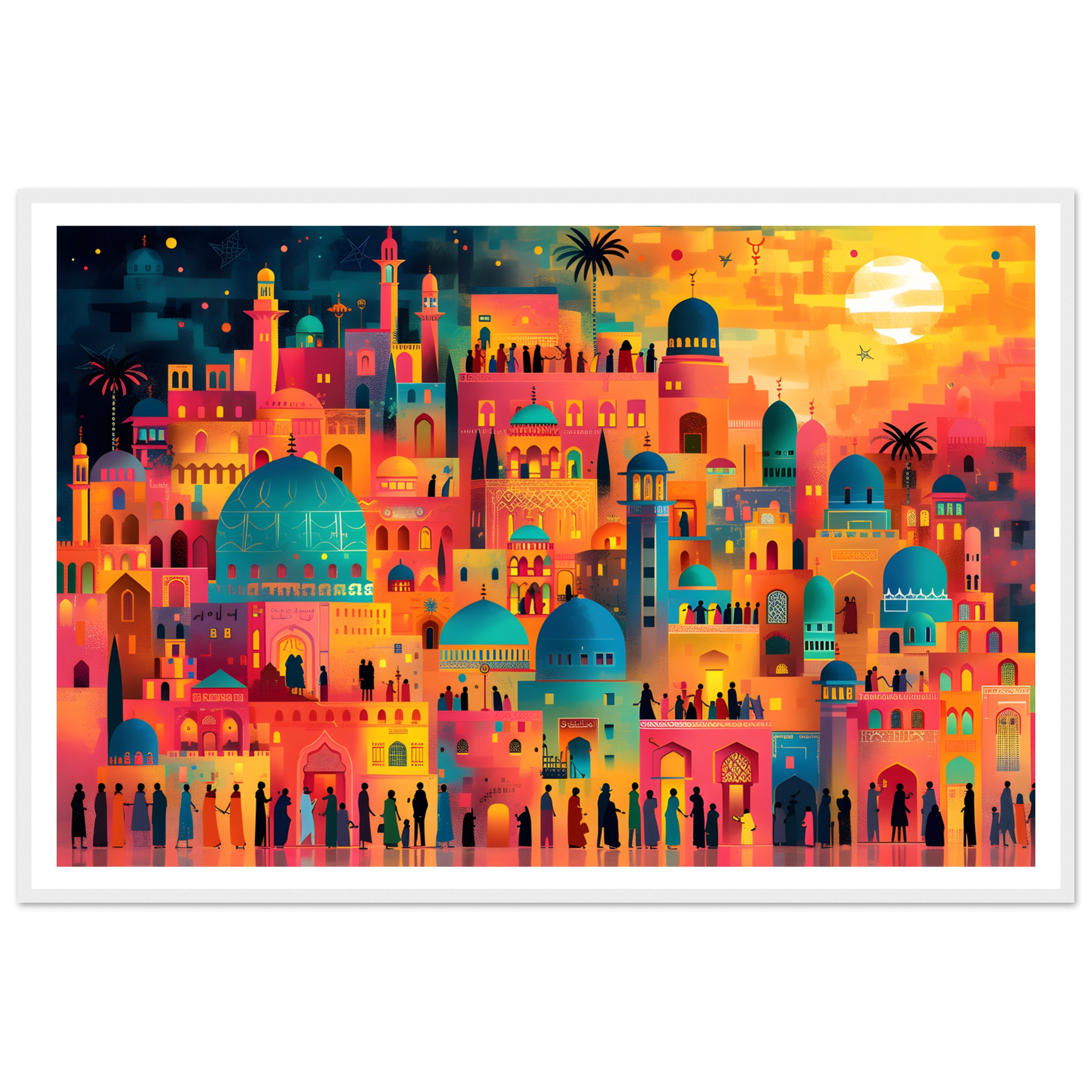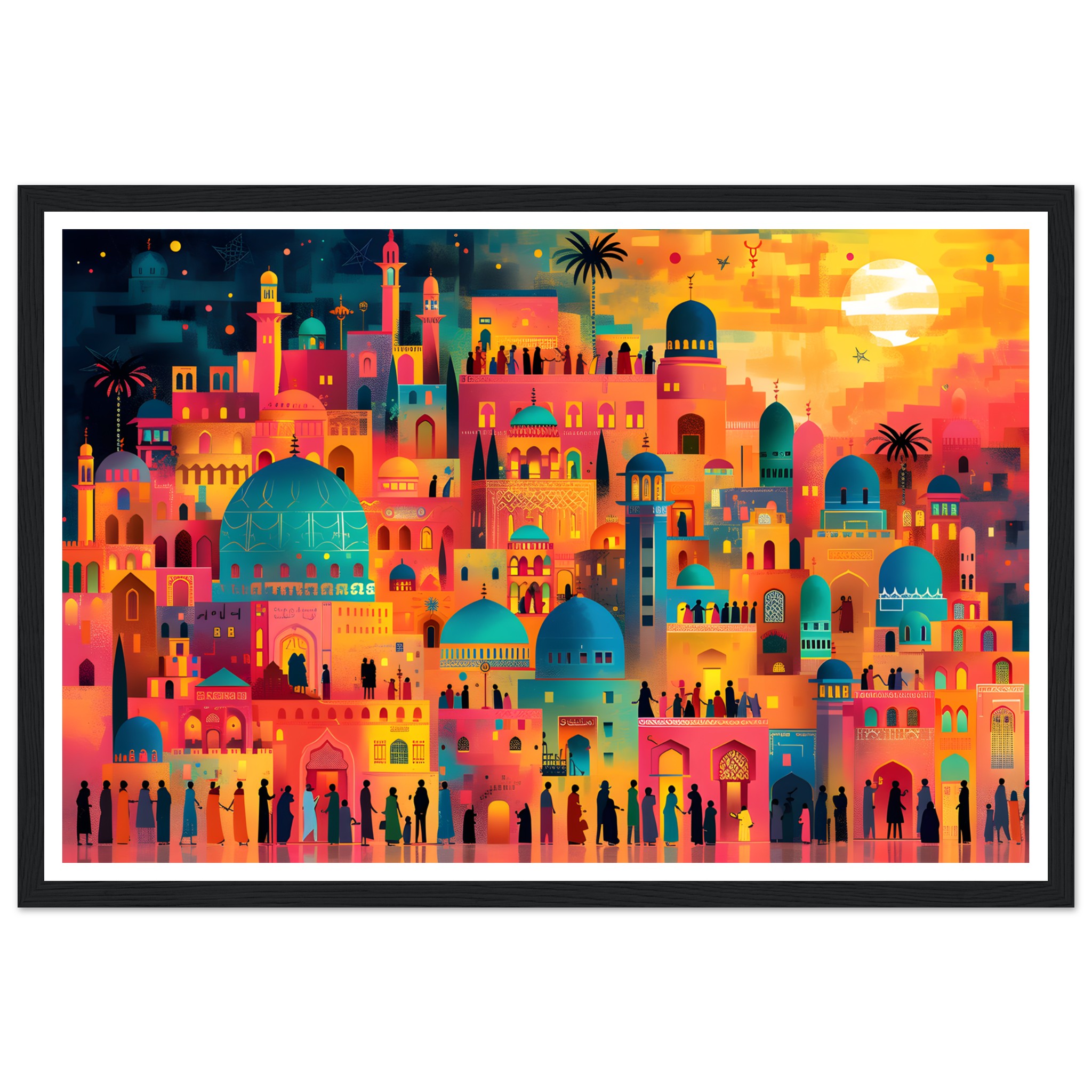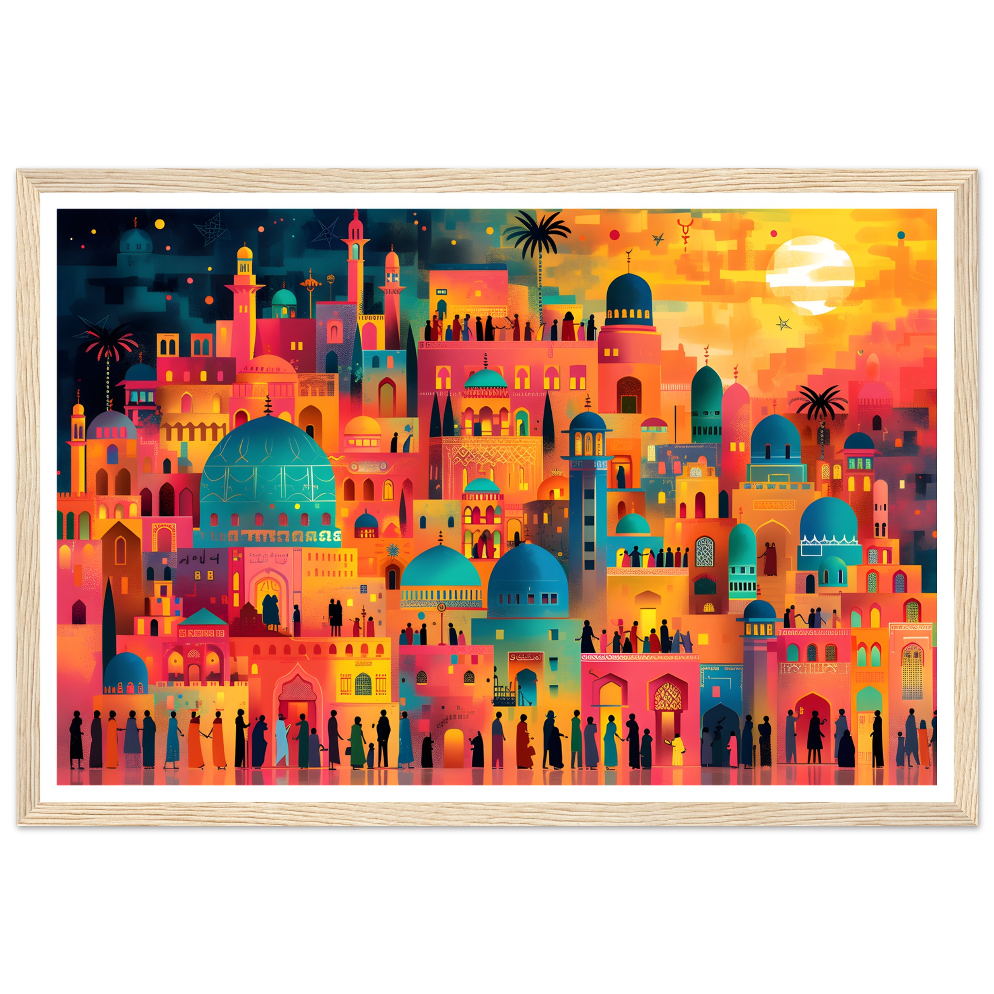 Vibrant Arabian Nights Cityscape: Classic Matte Paper Wooden Framed Poster, in your choice of size and frame finish
