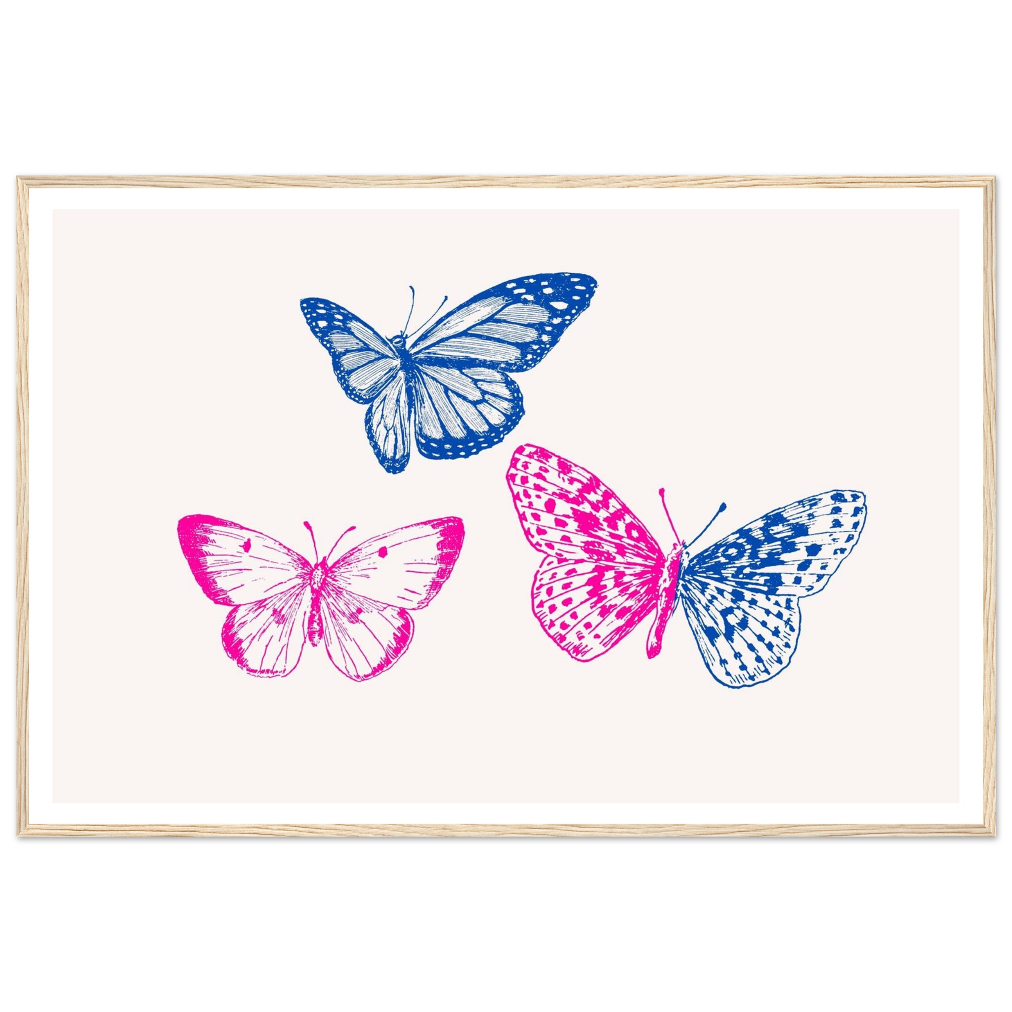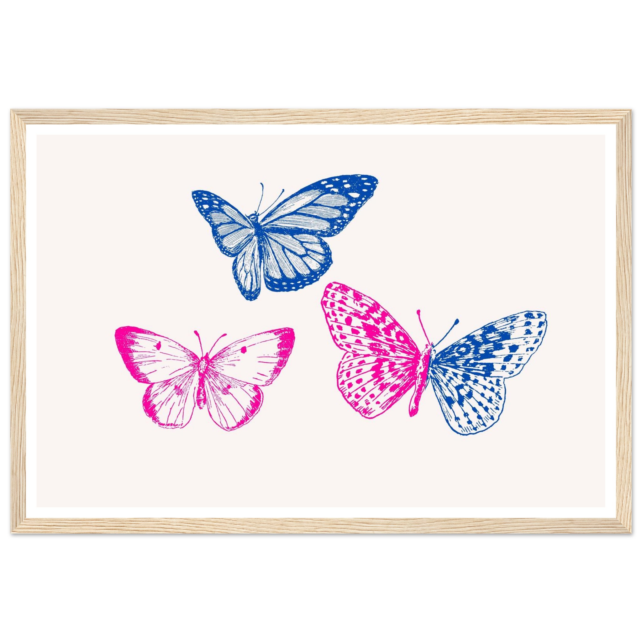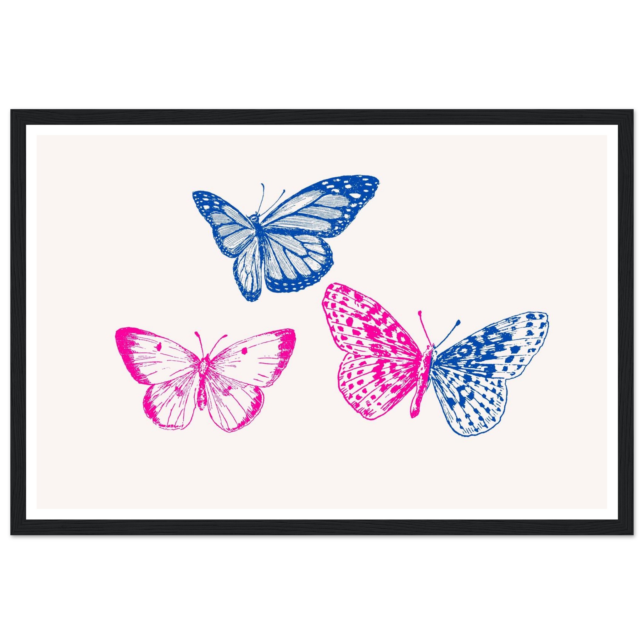 Bring a touch of whimsical elegance to your space with our Vibrant Butterfly Art framed poster. Featuring striking illustrations of butterflies in a lively palette of electric blue and hot pink, this piece captures the delicate beauty and vibrant energy of nature. It’s perfect for adding a pop of color and personality to any room, from a chic living area to an inspiring creative space.