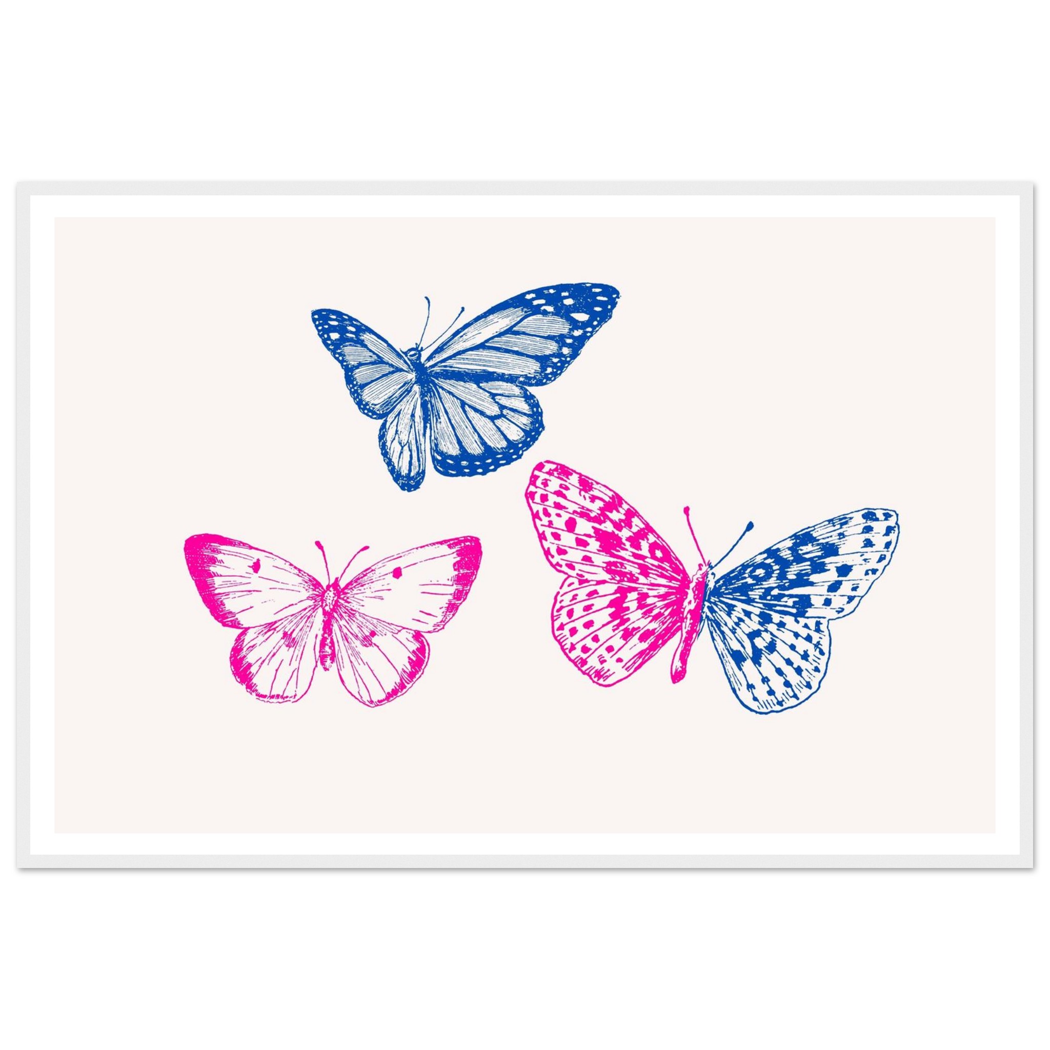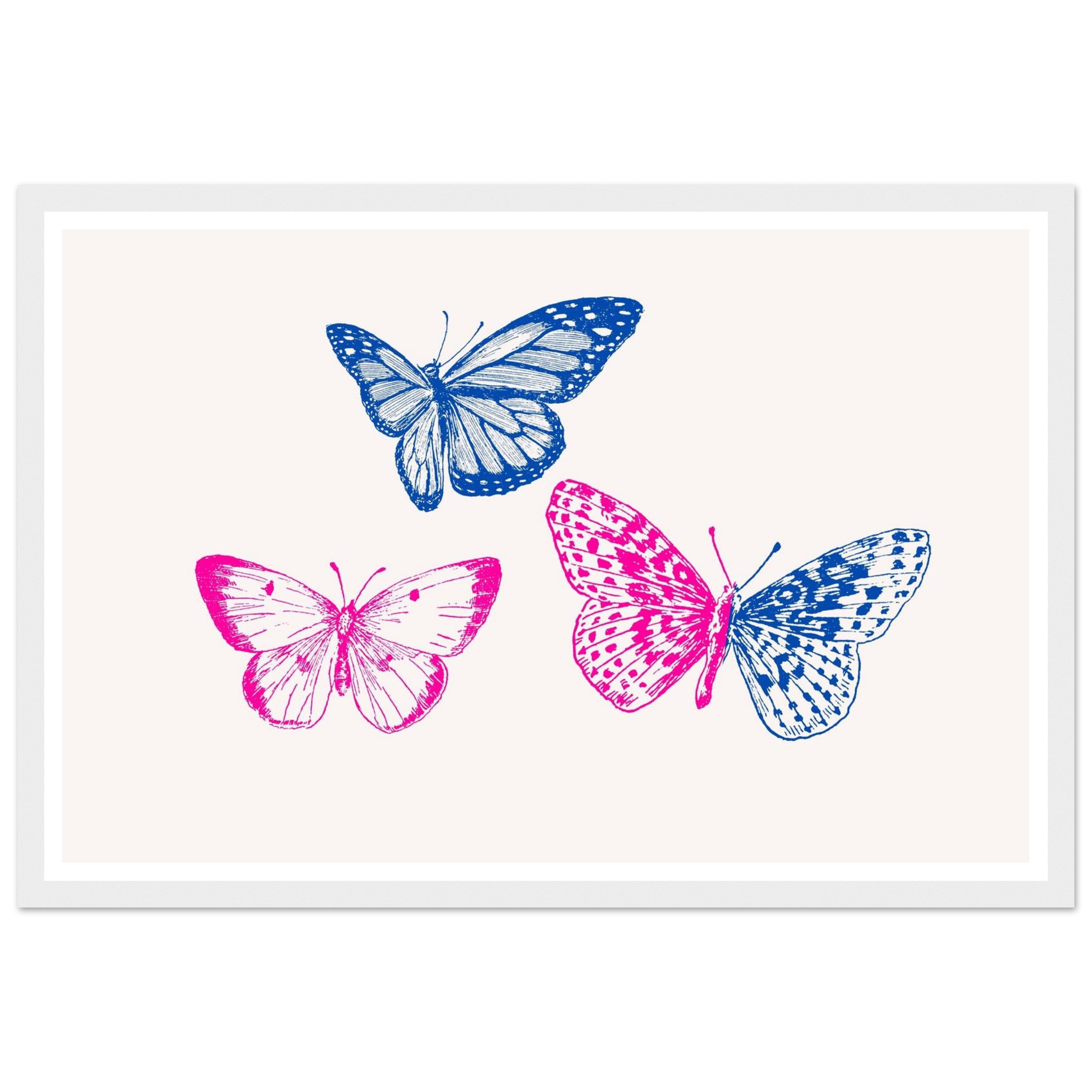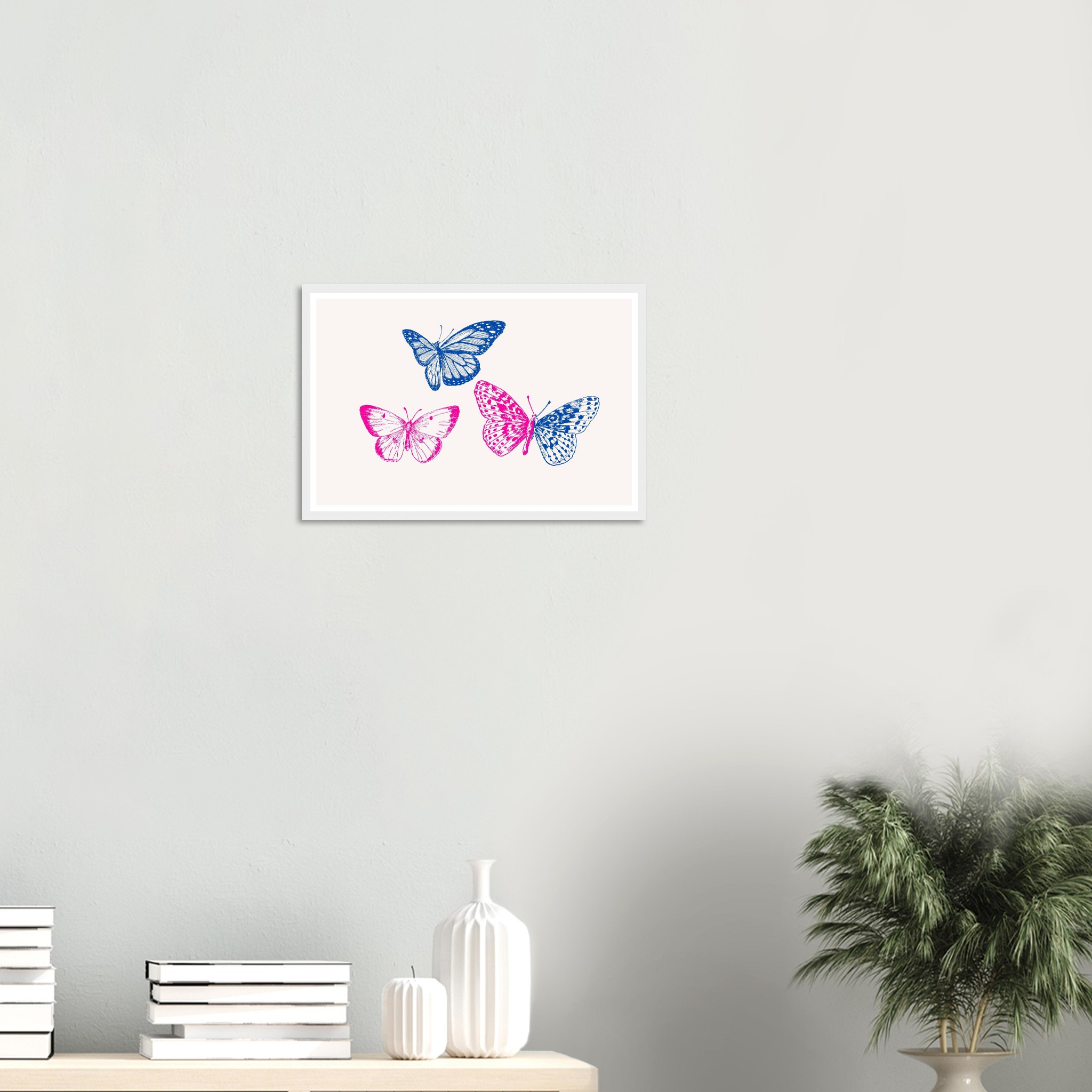 Vibrant Butterfly Art: Classic Matte Paper Framed Poster in Blue & Pink Hues