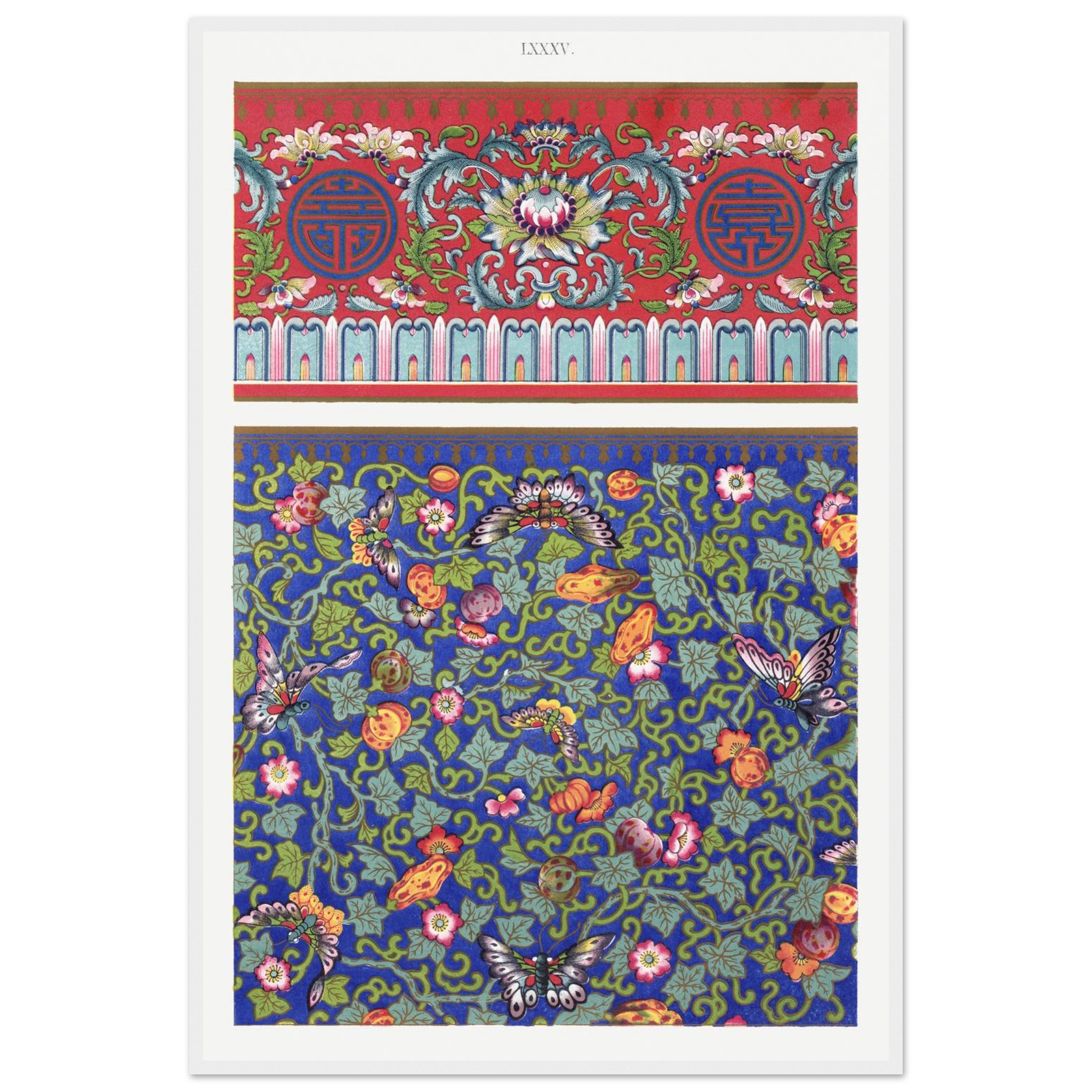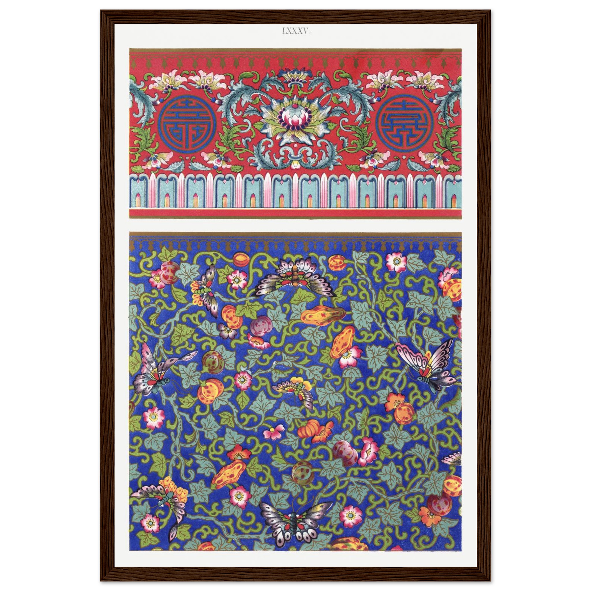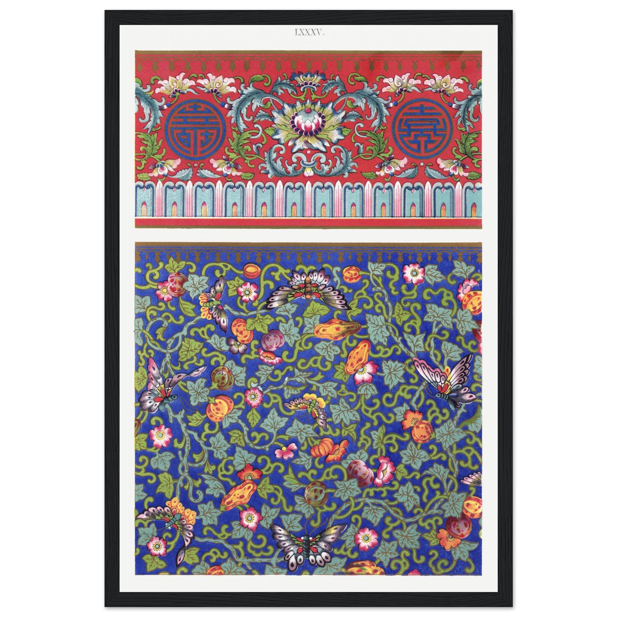 Bring an opulent touch of East Asian charm into your home with our exquisite Chinoiserie-inspired framed poster. Featuring vivid patterns of flourishing botanicals, delicate butterflies, and traditional motifs set against rich red and deep blue backdrops, this artwork captures the intricate beauty of classic design. Each detail is rendered with stunning clarity, perfect for adding a touch of timeless elegance and a pop of color to any room.