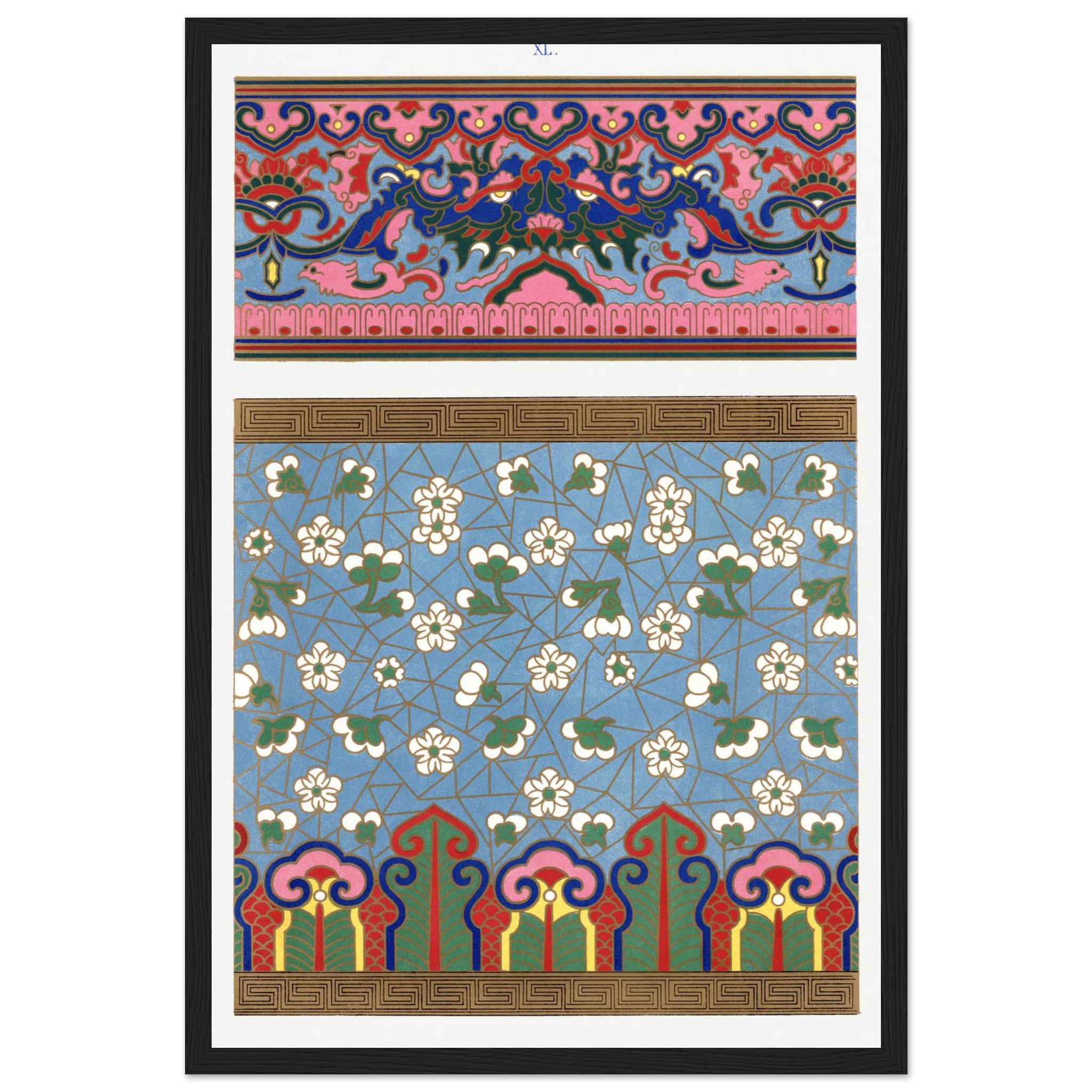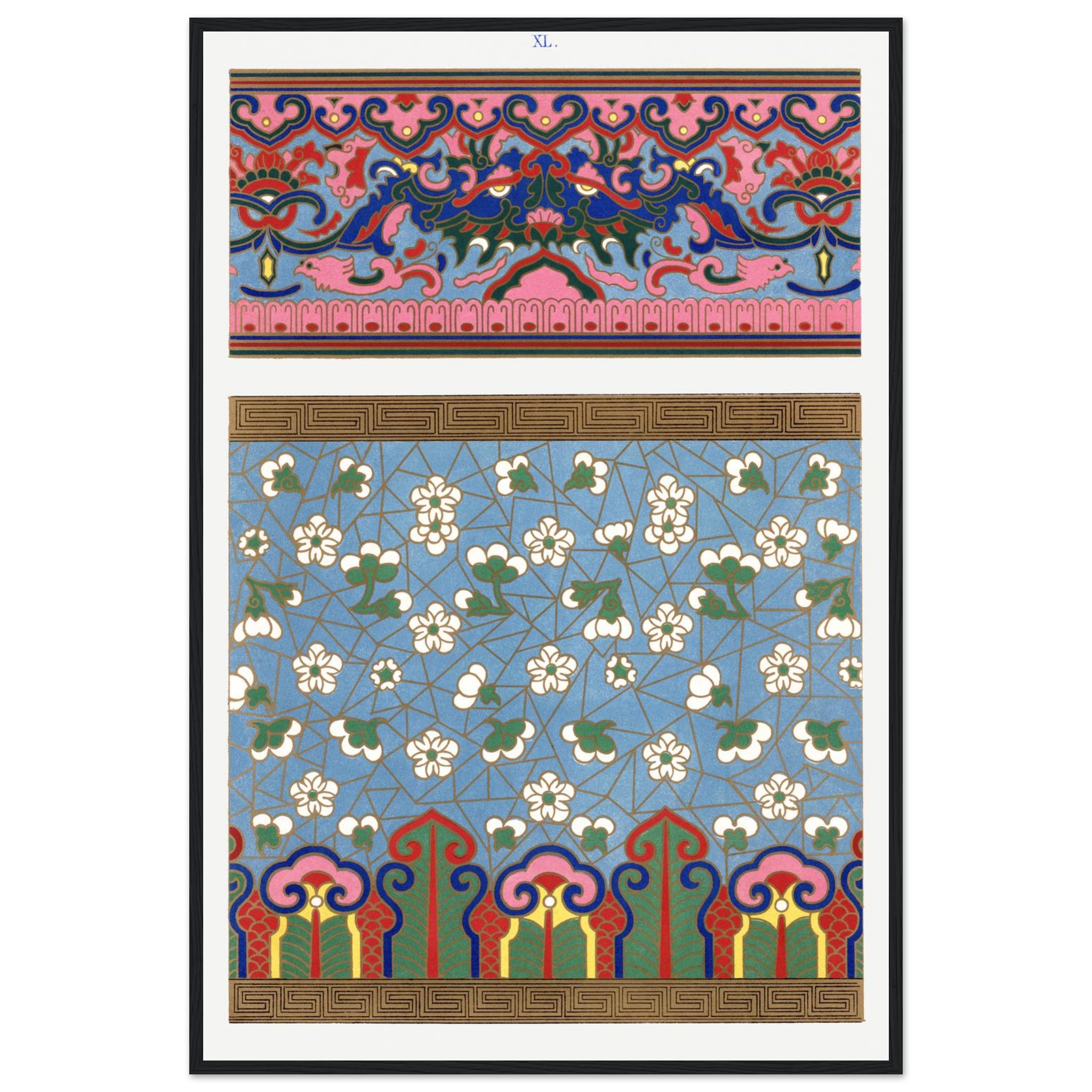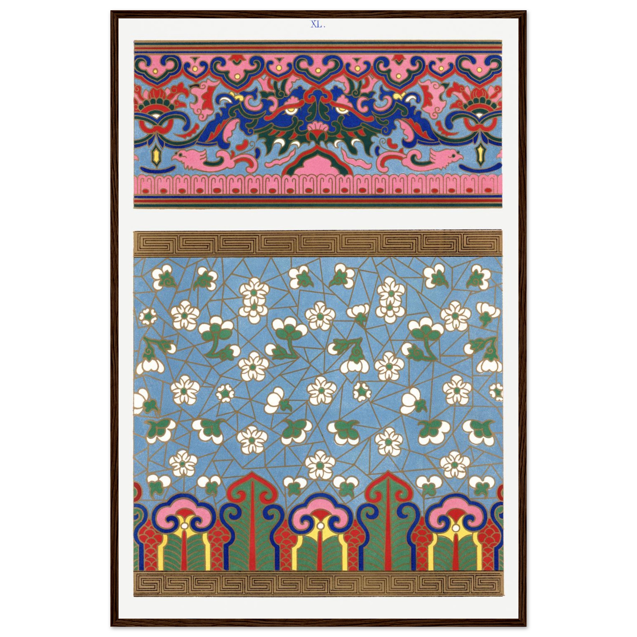 Vibrant East Asian Floral & Dragon Motif Framed Art Print | Classic Matte Paper Poster