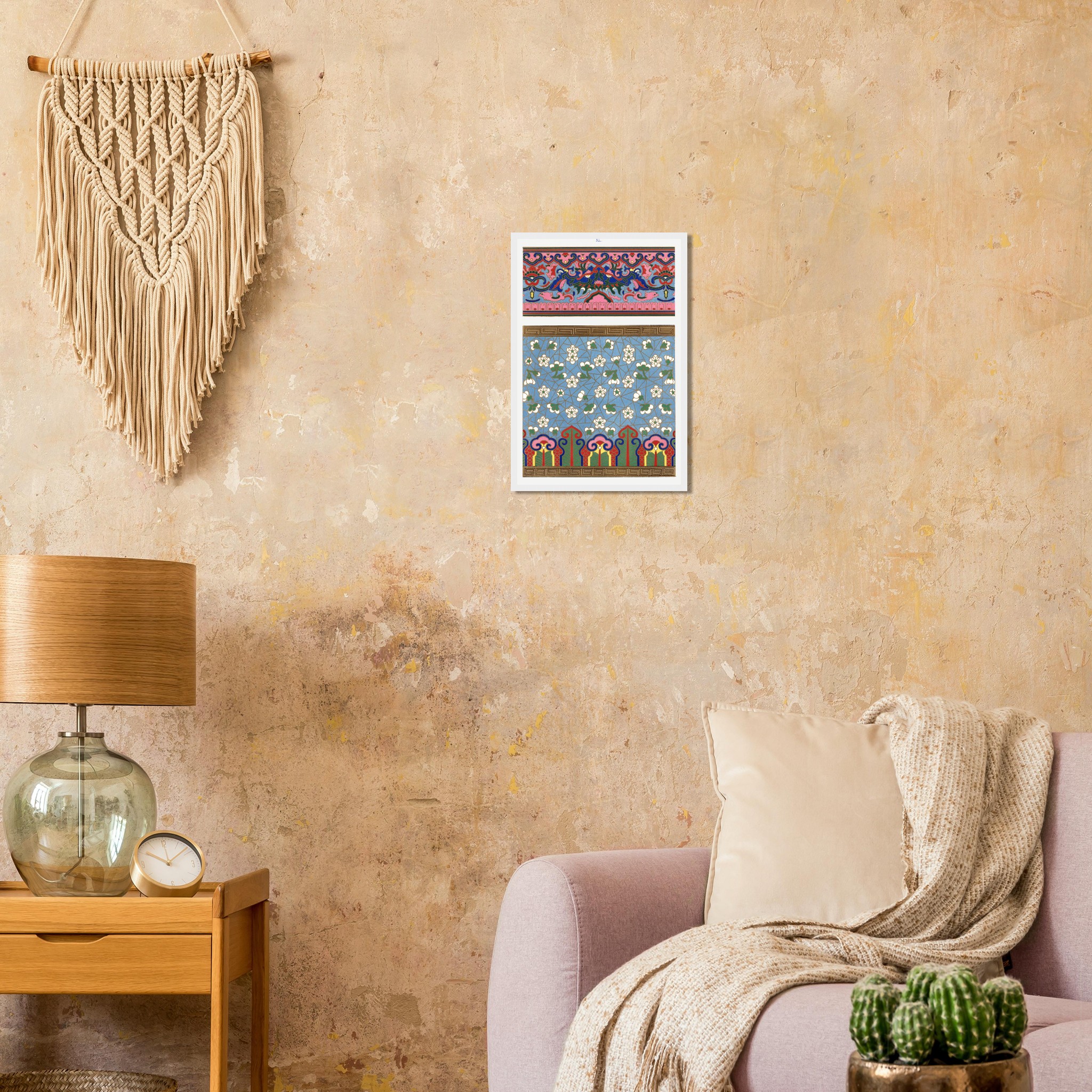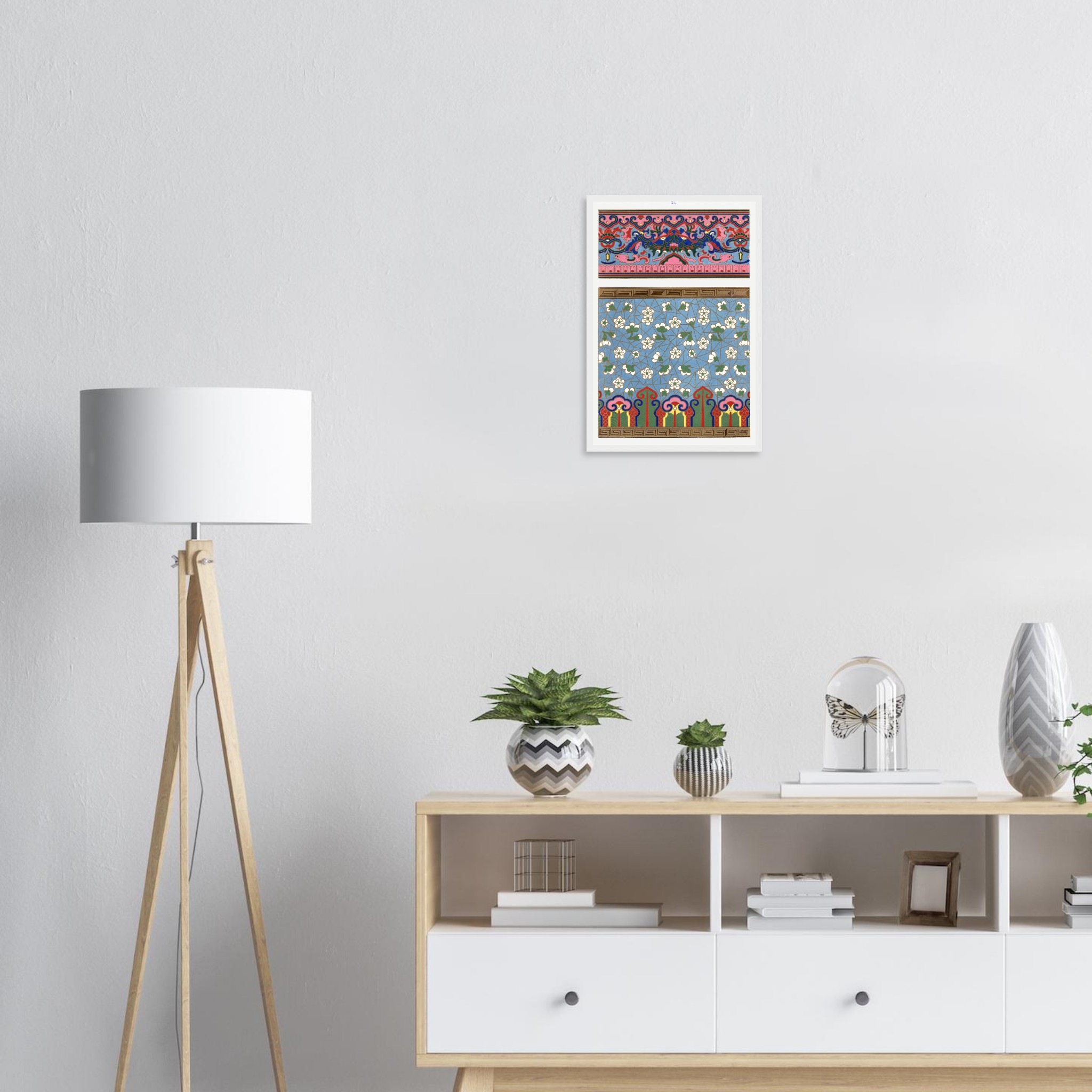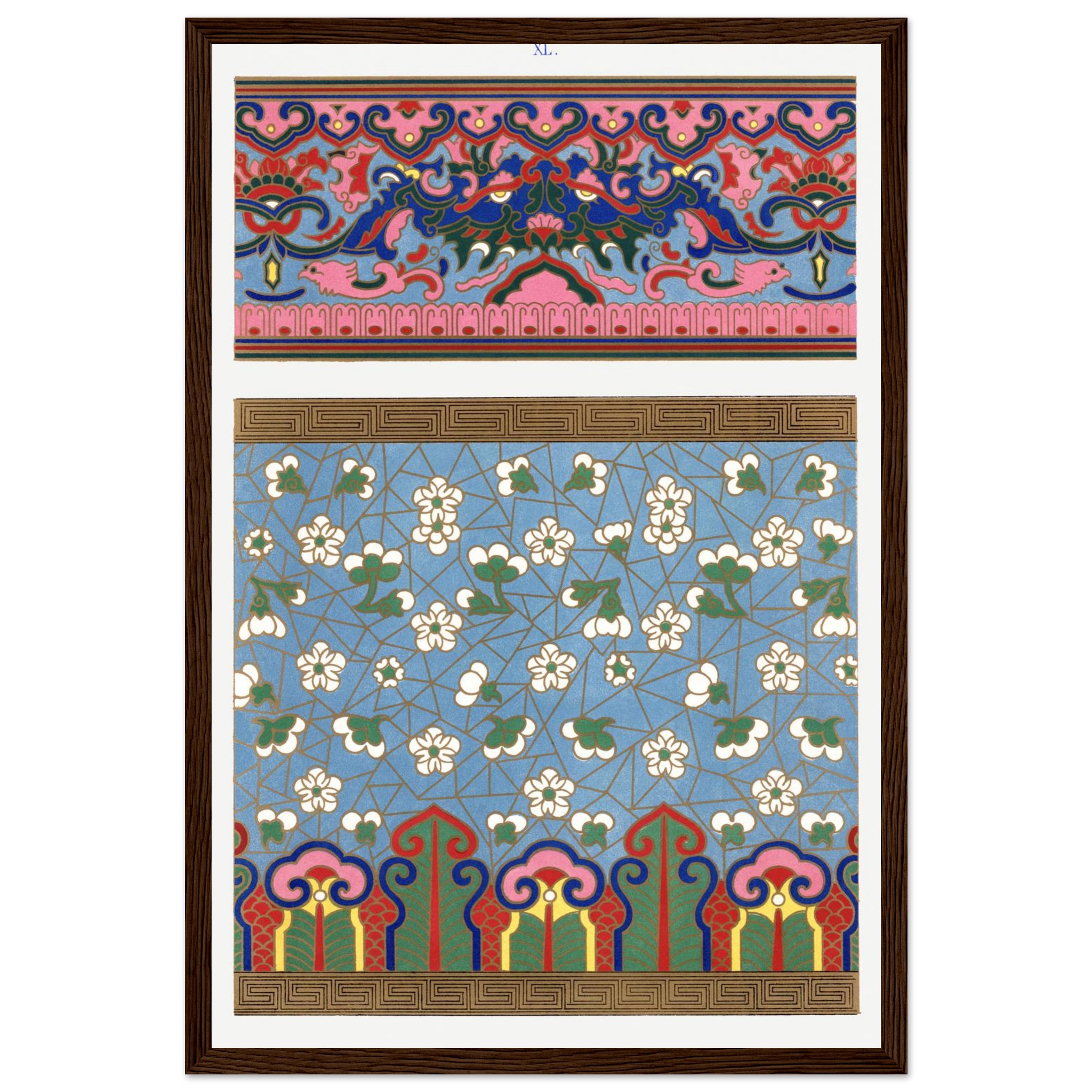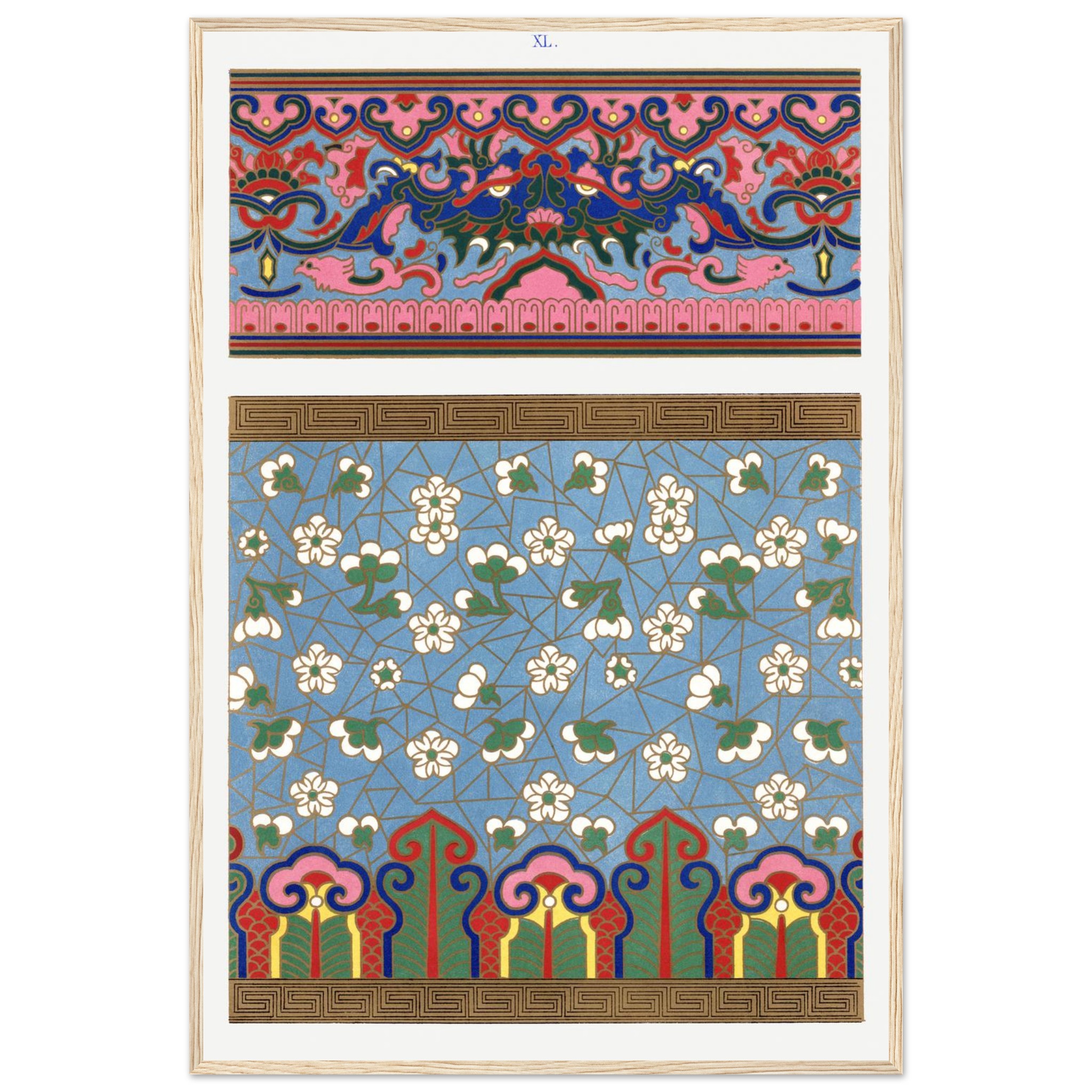 Vibrant East Asian Floral & Dragon Motif Framed Art Print | Classic Matte Paper Poster