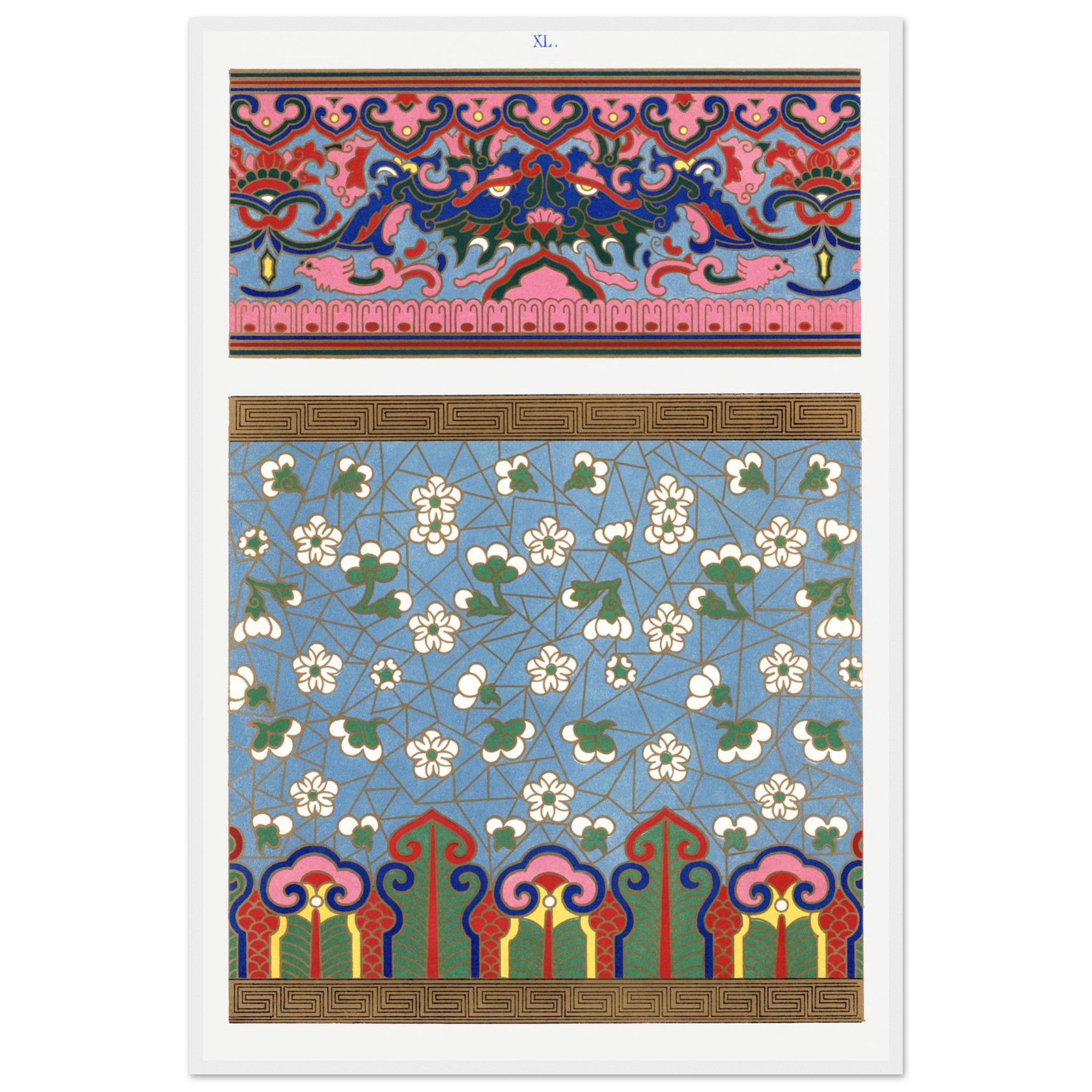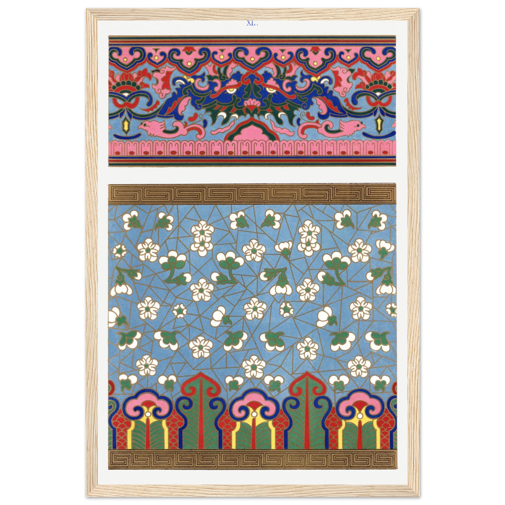 Bring an opulent touch of East Asian heritage into your space with this stunning framed art print, featuring intricate floral patterns and stylized dragon motifs. The rich blues, vibrant pinks, and deep greens, accented with gold, create a captivating visual story perfect for adding depth and elegance to any room. This ready-to-hang piece instantly elevates your decor, offering both cultural richness and timeless aesthetic appeal.