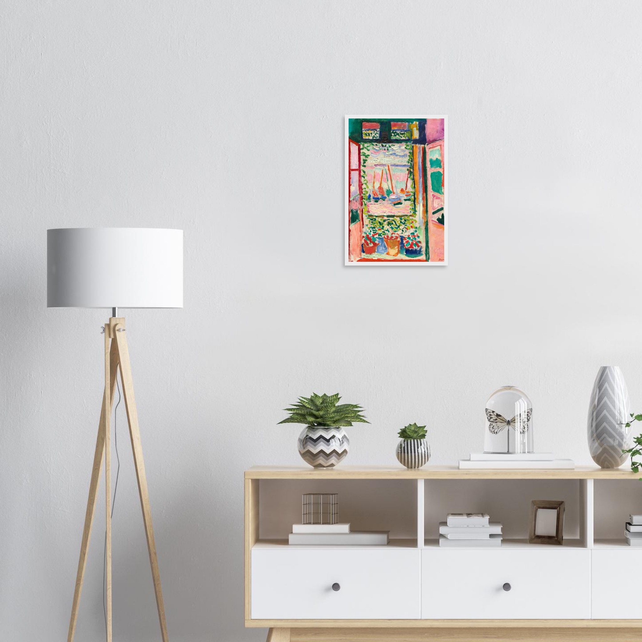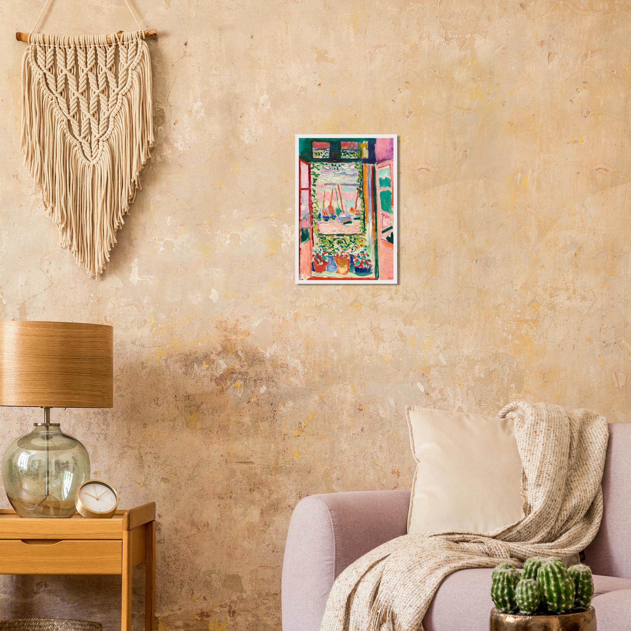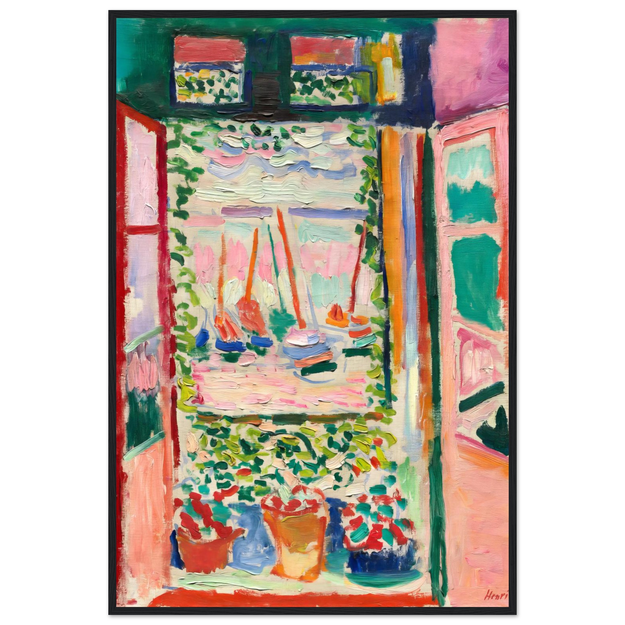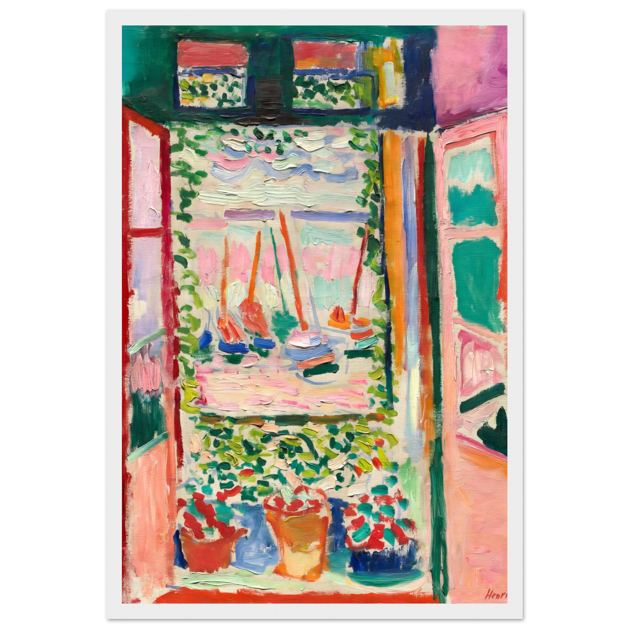 Immerse yourself in the joyful abandon of Fauvist color with our stunning framed poster, capturing the essence of a serene seascape through a sunlit window. The lively brushstrokes and bold palette of pinks, greens, and reds instantly transform any space into a vibrant art sanctuary, bringing a touch of expressive beauty to your home or office.